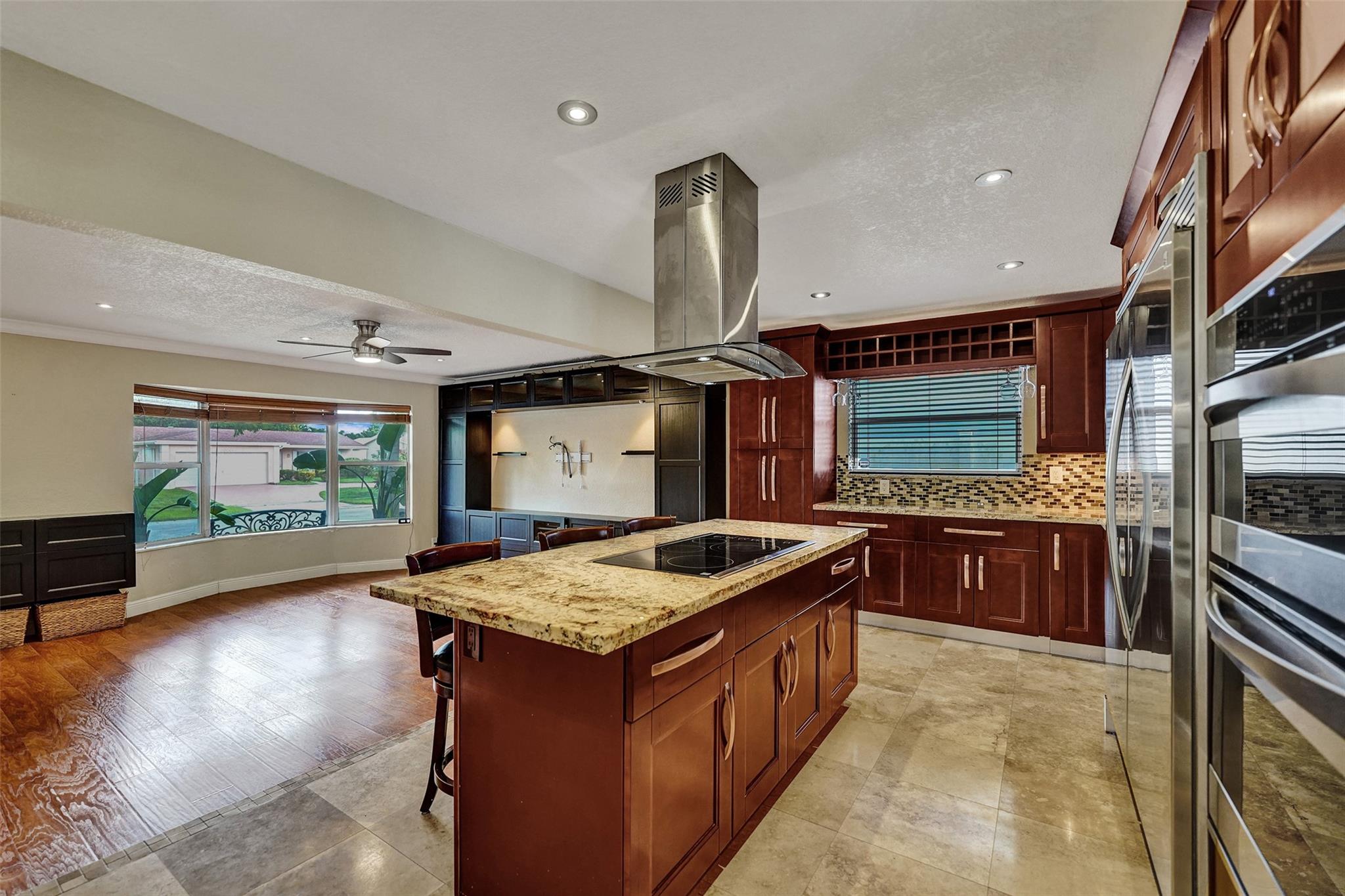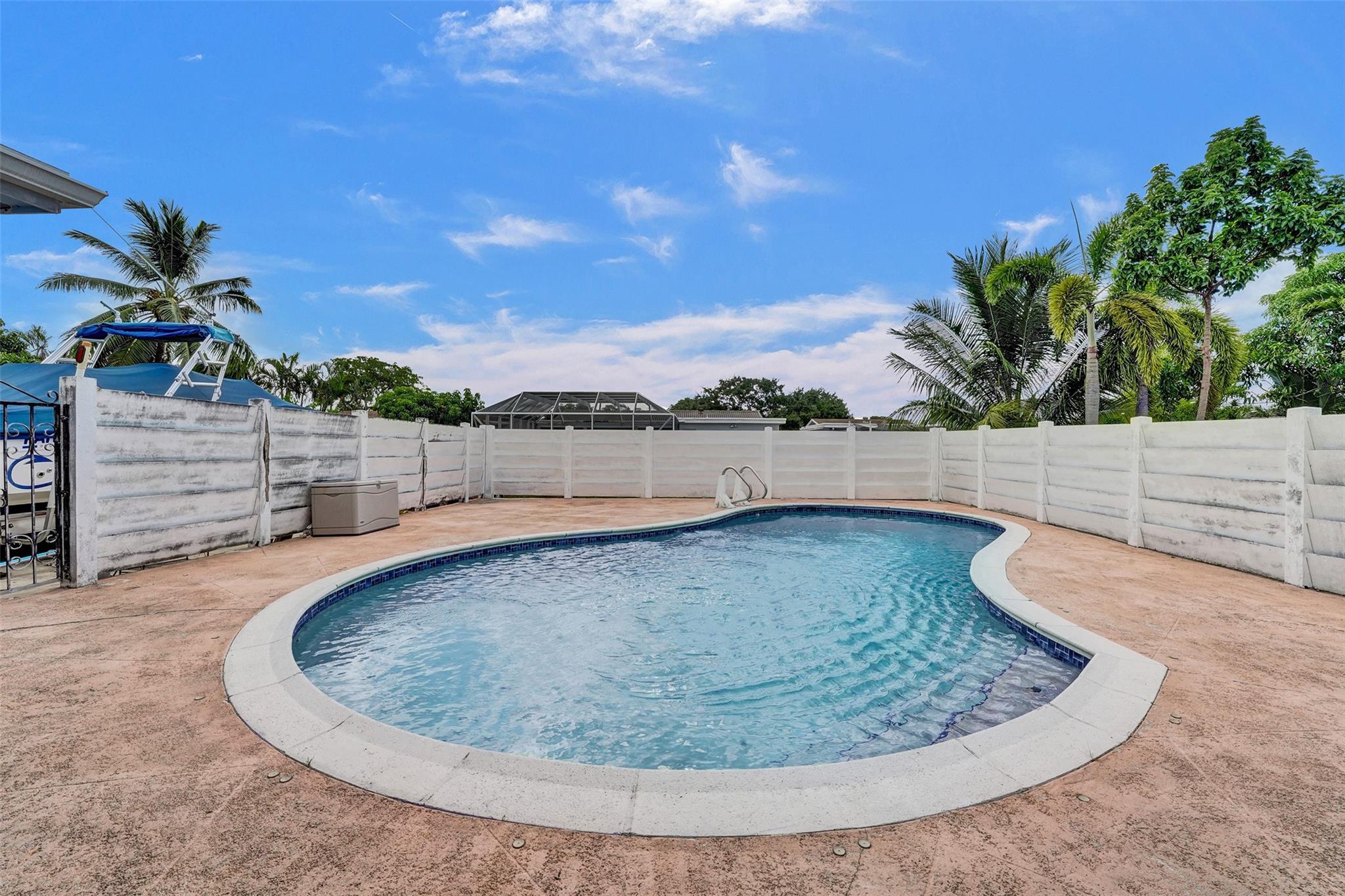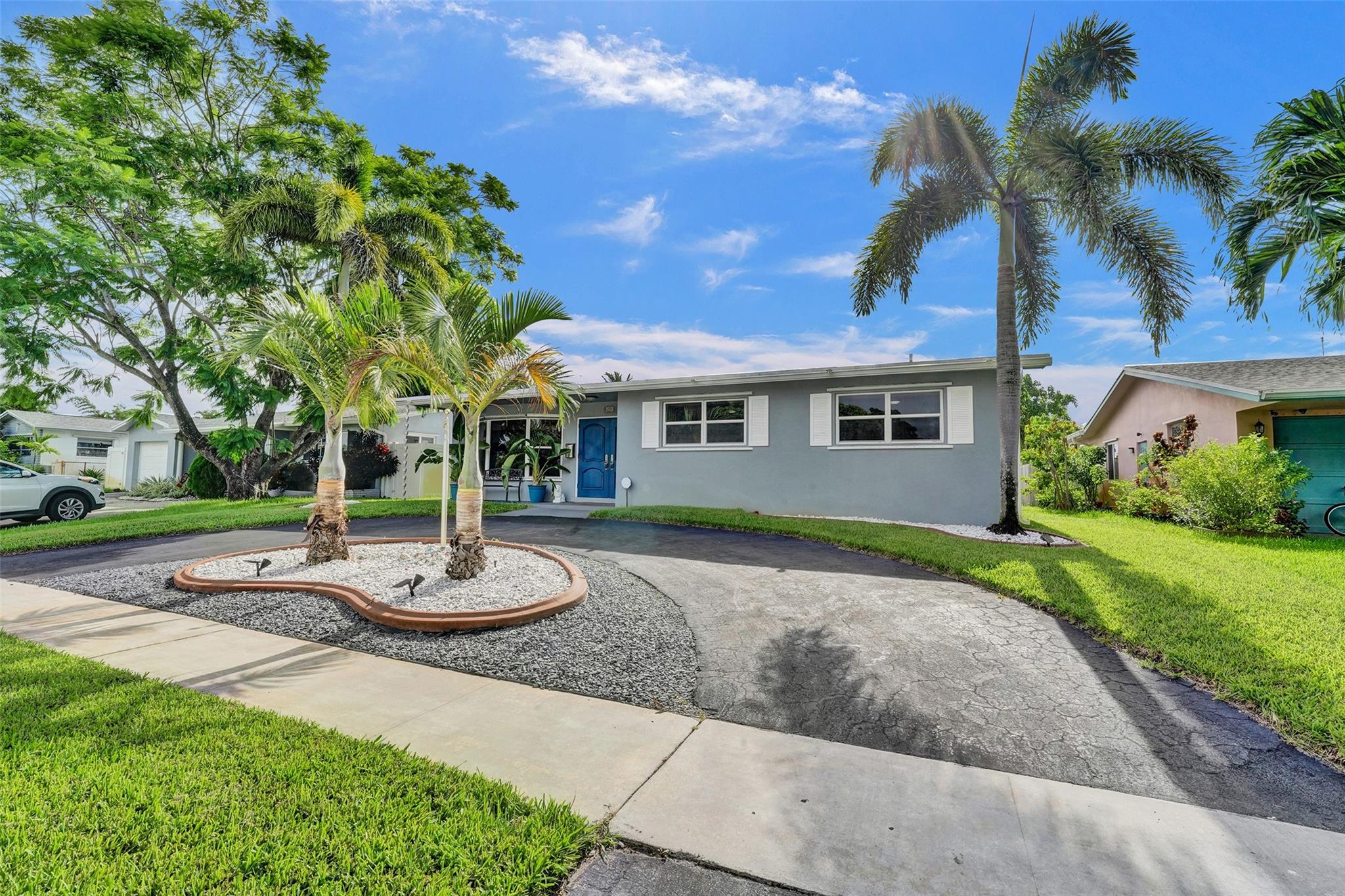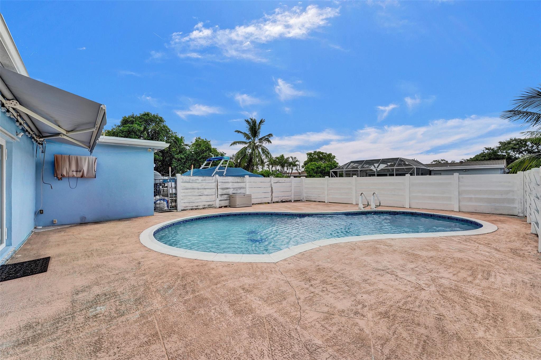 Hollywood pool home. This three bedroom, two bath home is updated and ready to be moved in. The kitchen has updated stainless steel appliances. Cook top sits on a center island with room for seating. The roof and A/C are Approximately three years old and are still under warranty. Pool is great for entertaining and is surrounded by a wall and fence. The bedrooms are large with a walk in closet in the master bedroom. Two driveways for this house, a circle one up front with great curb appeal and one in the rear of the house that leads to the attached garage. The house has hurricane shutters and French doors that lead to the pool. House has city water and sewer, however the sprinklers use well water. This house is close to hospitals, highways and shopping.