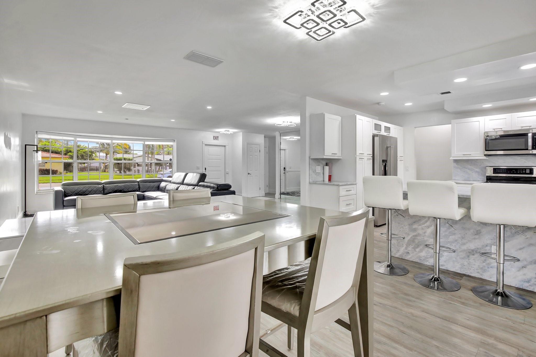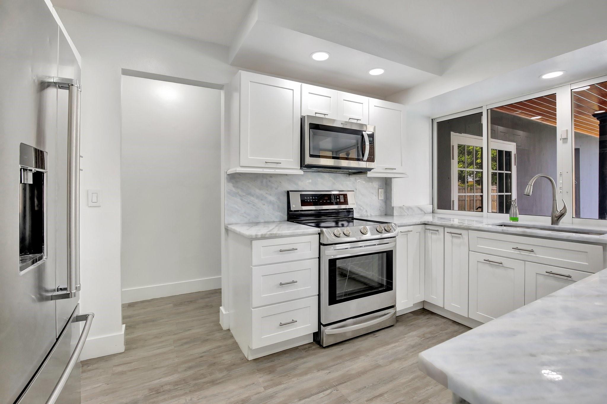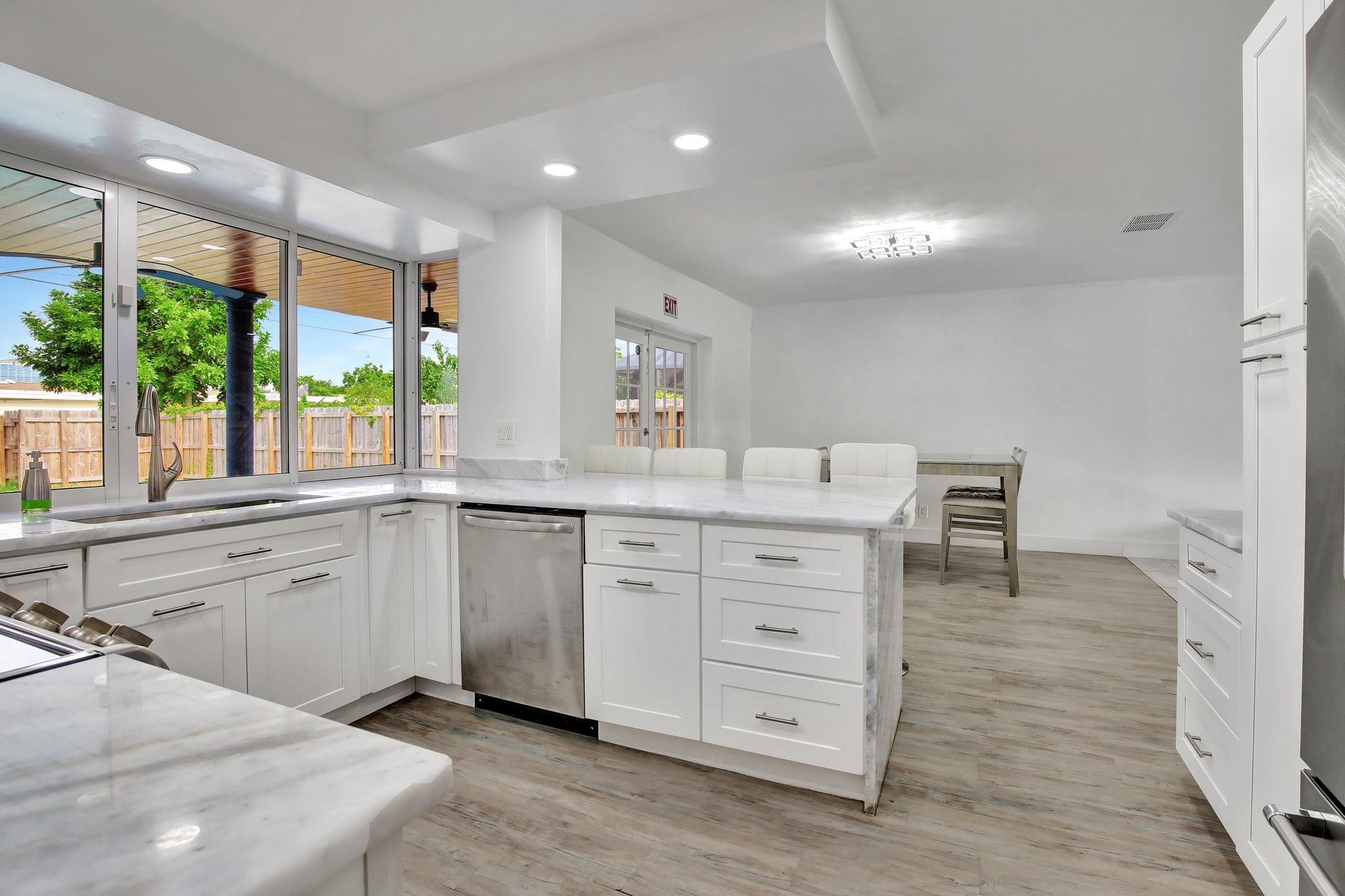 Move-In Ready with Short-Term Rental Potential! This beautiful 3-bedroom, 2-bathroom single-family pool home in desirable Hollywood Hills blends comfort and convenience. The kitchen features stainless steel appliances, marble countertops, and elegant wood cabinetry, with a passthrough window for easy entertaining. Stylish light fixtures and a modern bathroom create a relaxing atmosphere.