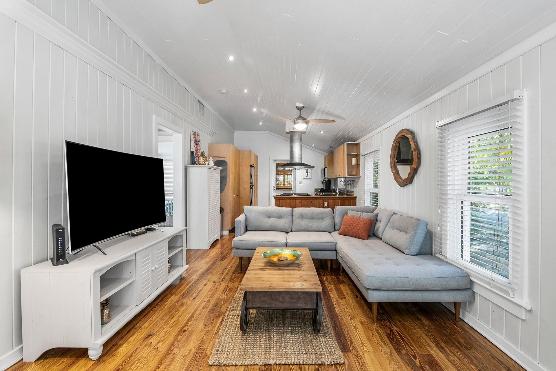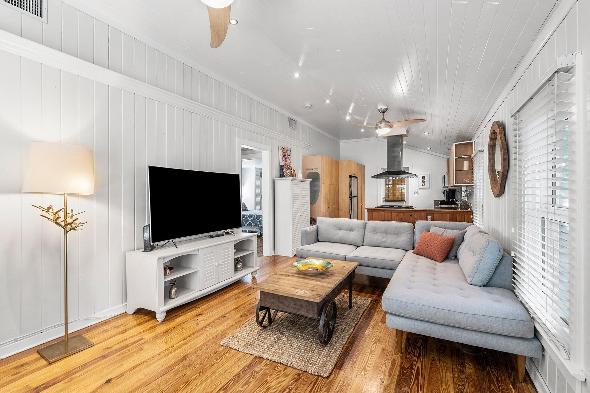 This classic Key West style home tucked away in the historic neighborhood of Sailboat Bend exudes character like no other. Sitting on a corner lot and featuring 2 bedrooms and 1 bath, an updated gourmet kitchen with granite countertops, gas range + island hood, hardwood and tile flooring and a living room space with vaulted tongue + groove ceilings. Perfect for entertaining and surrounded with lush lanscaping and pavers, this property includes a spacious backyard with a stunning free-form pool. Complete with impact windows and updated plumbing and electrical.