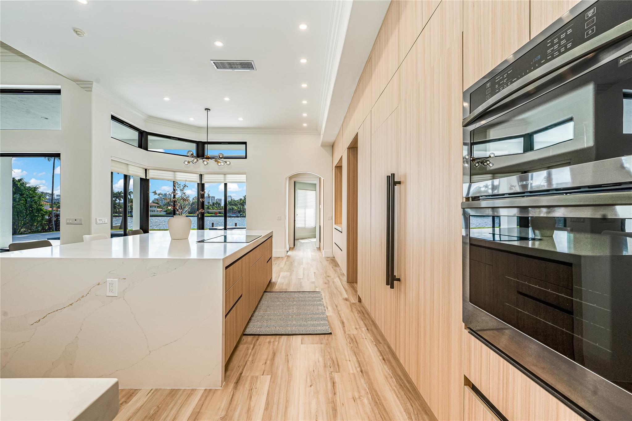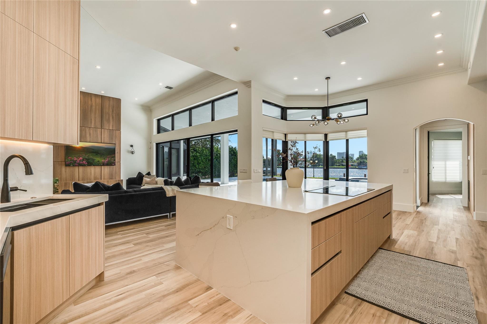 Awesome waterfront location on over half an acre! Breathtaking views! Watch the dolphins swim by while you’re drinking your morning coffee! 100′ of Waterfront w/quick ocean access and NO Fixed bridges. Extensive upgrades and renovations throughout! Roof, hurricane doors & windows, & all appliances are brand new! Step in the front door and immediately see the spectacular view of exclusive Southlake! Open concept. Modern, sleek, contemporary style with vaulted high ceilings. 5 bedrooms, 3 full baths, 2 half baths. Fabulous Primary Suite w/ beautiful sitting area, magnificent contemporary closet, and separate tub & shower. Gorgeous Chef’s kitchen with beautiful oversized island and pantry. Stunning living room w/ classic fireplace. Bright, open, fashionable dining room. Full House Generator!