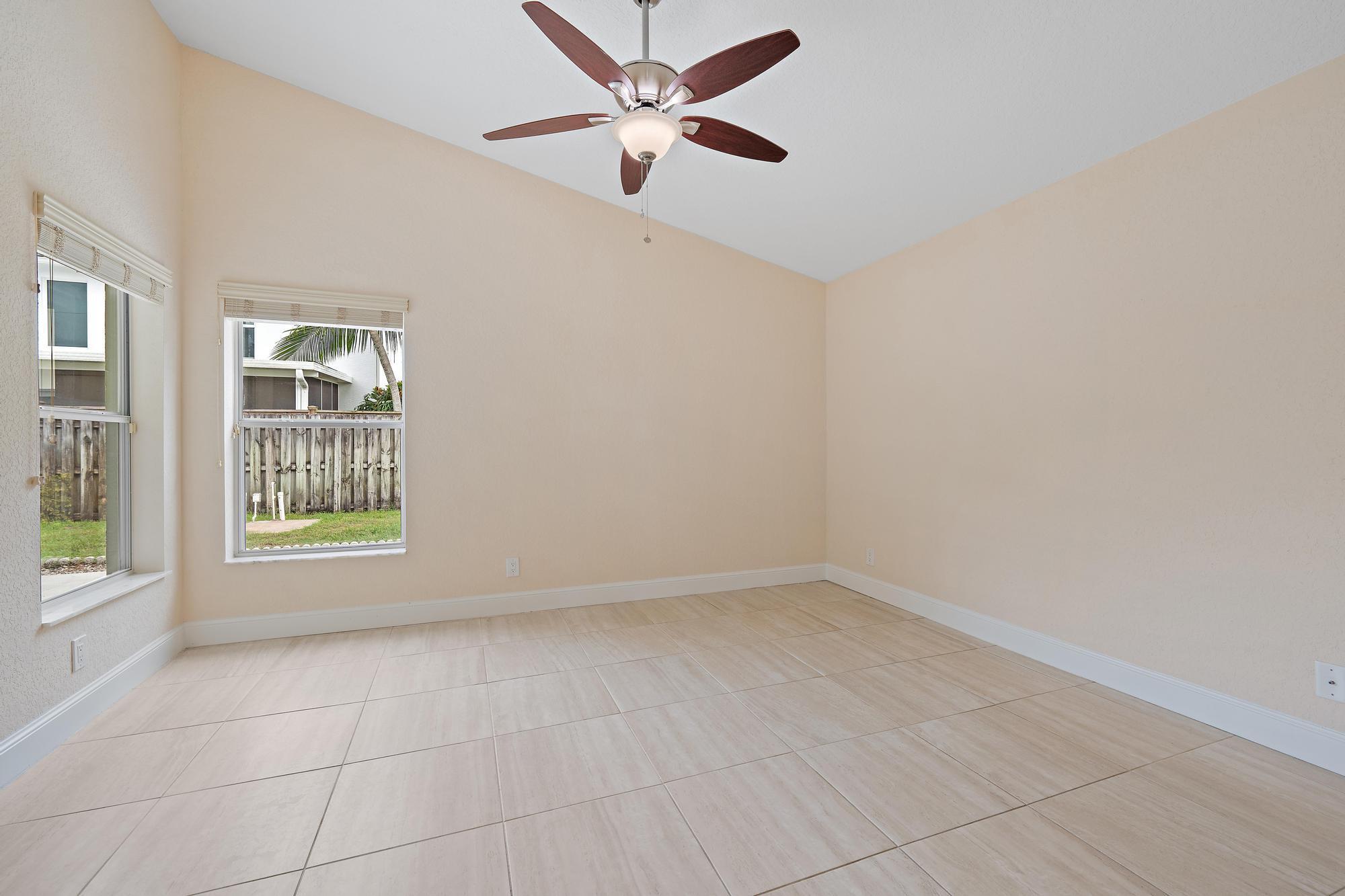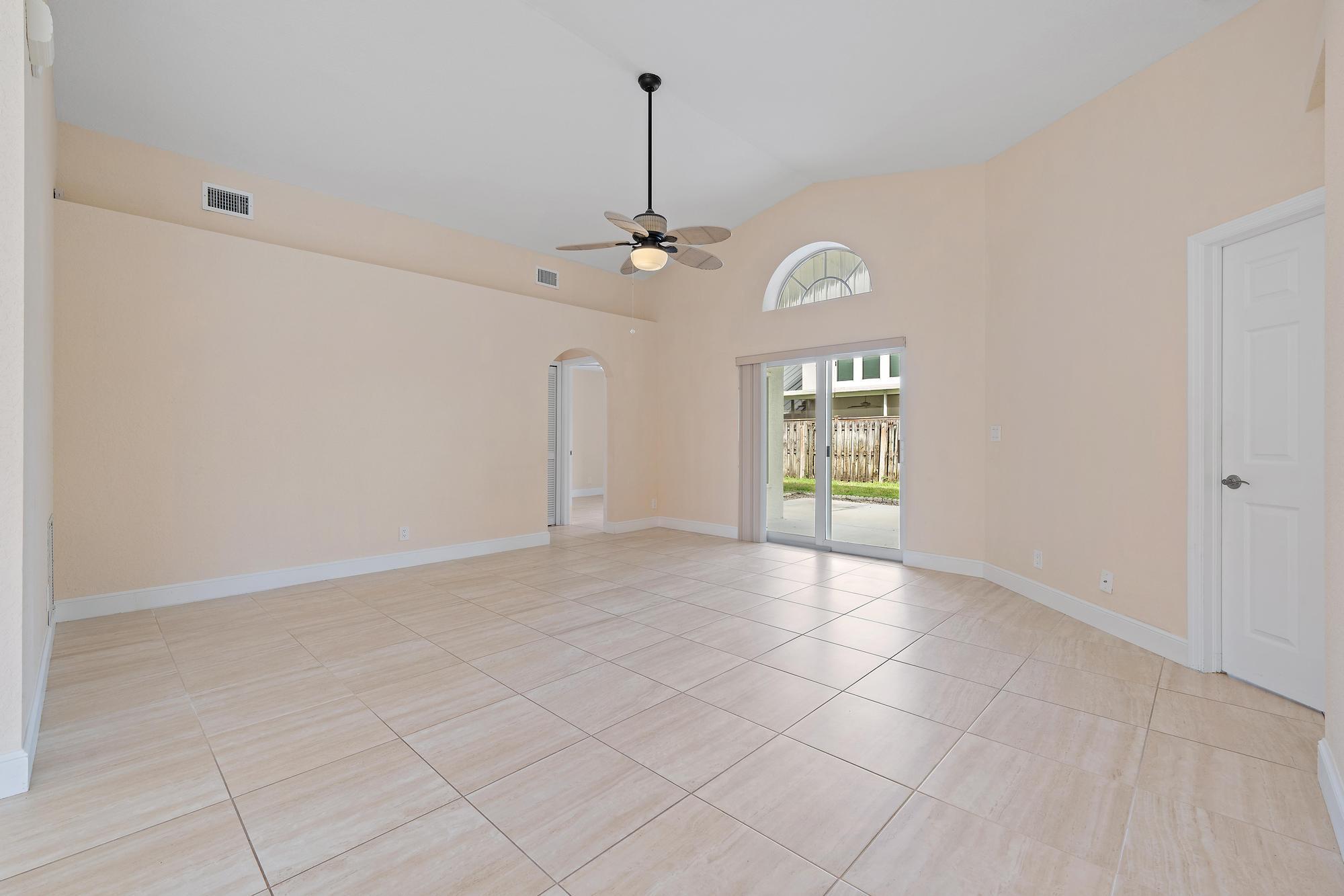 Welcome to this refined 3-bedroom, 2-bathroom CBS-built home in the coveted Heights of Jupiter. Designed for elegance and functionality, it offers vaulted ceilings, split-bedroom layout and convenience with an auto garage door opener for the spacious 2-car garage. The heart of the home showcases a functional and custom-designed kitchen, complete with bespoke cabinetry, and granite countertops. Illuminate your culinary experience with energy-efficient LED recessed lighting. The fenced backyard with an extended patio seamlessly blends indoor and outdoor living. Minutes from Abacoa, enjoy premier golf, Roger Dean Stadium events, and top schoolsa”all with no HOA fees. Make this exceptional home, your own! Indulge in the best Jupiter living at an unmatched value.