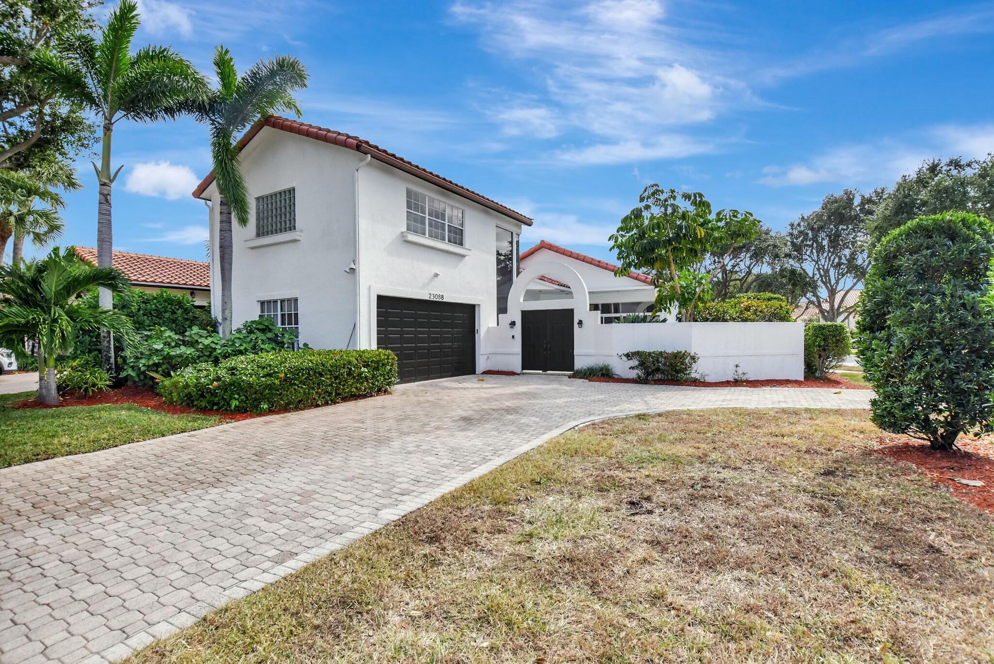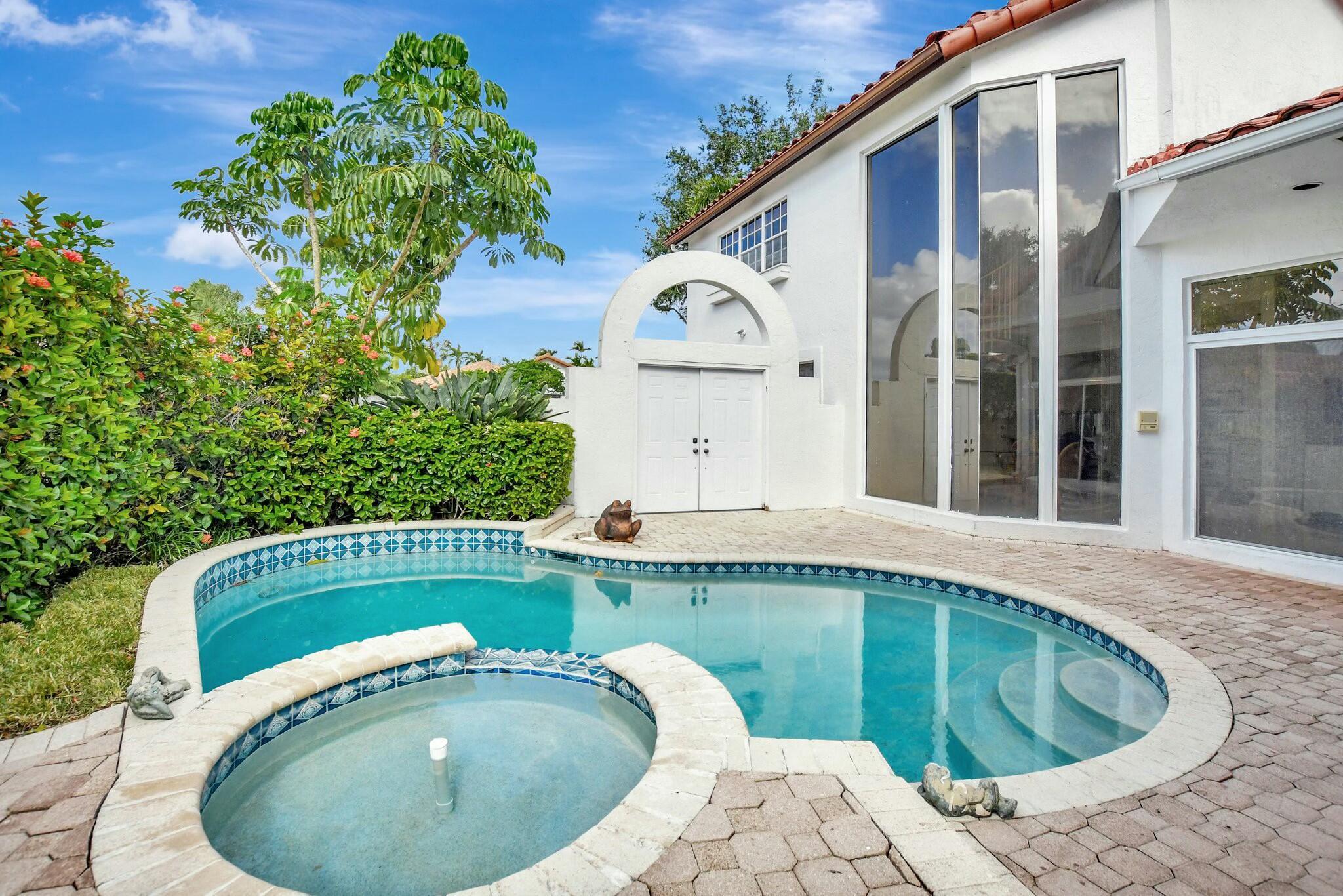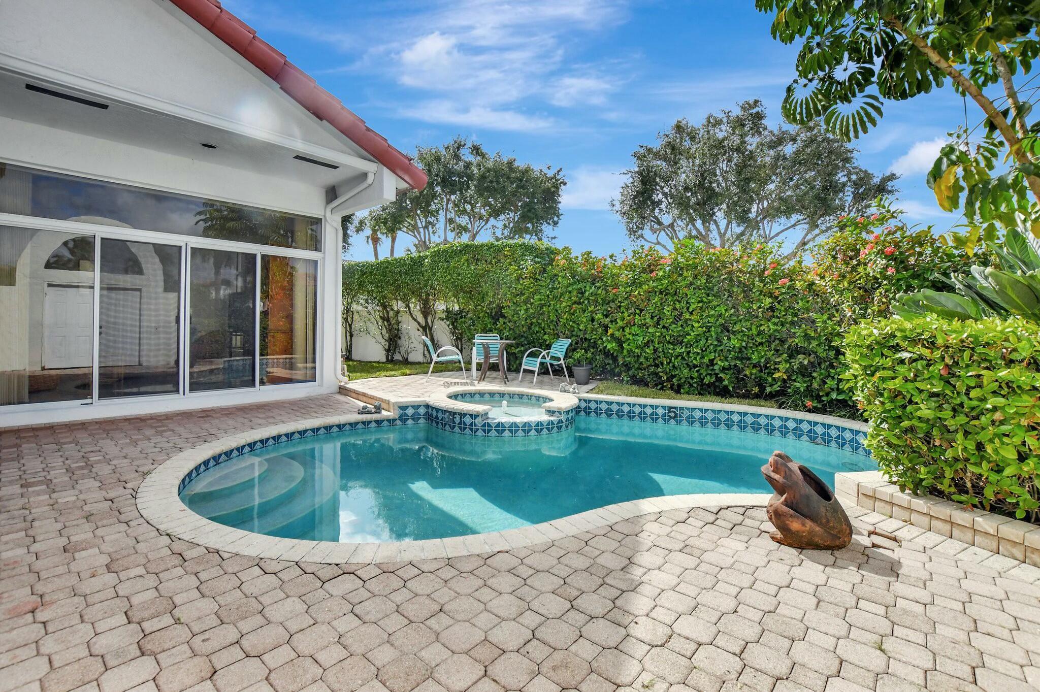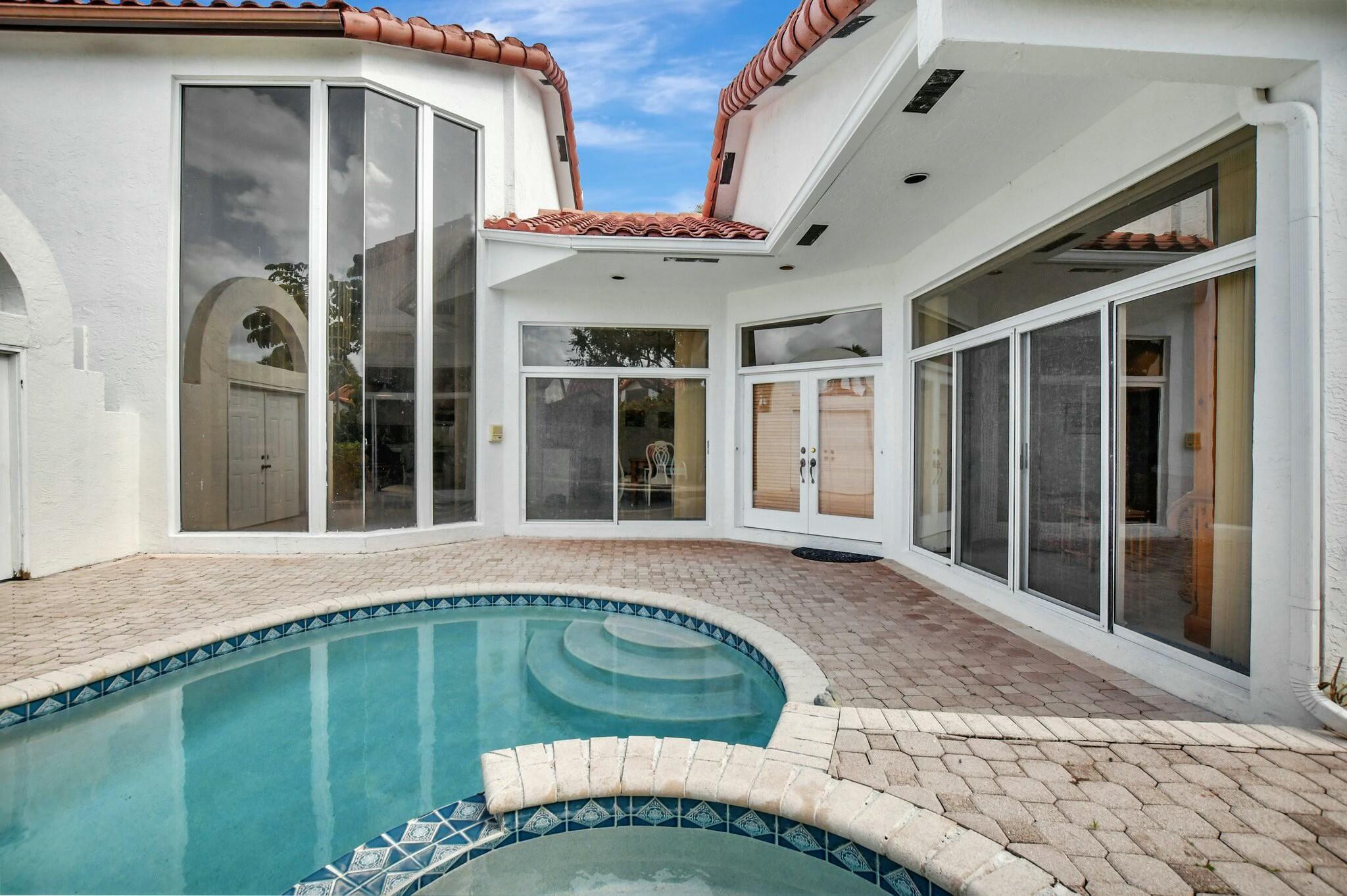 Rarely available single-family home in one of Boca Pointe’s most desirable communities. This spacious residence features a versatile floor plan with 4 bedrooms, including 2 luxurious en-suite master suites – one on the main level and another on the second floor.The main level includes a TV area, already designated as a 4th bedroom by the builder, making it easily convertible into a private space with the addition of a separating wall, while still allowing for large and inviting living and dining areas. Enjoy abundant natural light through vaulted ceilings and floor-to-ceiling windows, offering stunning views of the pool and patio from all main living spaces. The main-level master suite features sliding glass doors that lead to a private back patio, ideal for relaxation and outdoor …