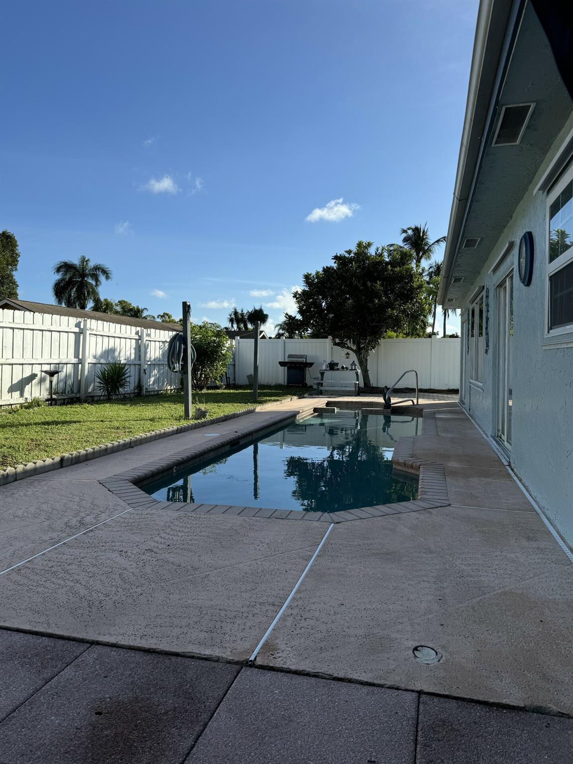 This charming single-family home located on a quiet street and corner lot in Boynton Beach, FL was built in 1978 and offers 5 bedrooms, 2 bathrooms, and a spacious finished area. One large bedroom was converted from a garage. The property sits on a sizable lot, providing ample outdoor space for relaxing and entertaining. It boasts a beautiful pool, as well as a four-year old roof, water heater, vinyl fence and indoor/outdoor paint. Stainless steel appliances, extra fridge/freezer combo in laundry room and washer and dryer included. With a convenient location and well maintained, move-in ready condition, this home is perfect for those looking for a cozy retreat in a desirable neighborhood. Selling as is, excellent condition, cash deal preferred but not required, motivated seller.