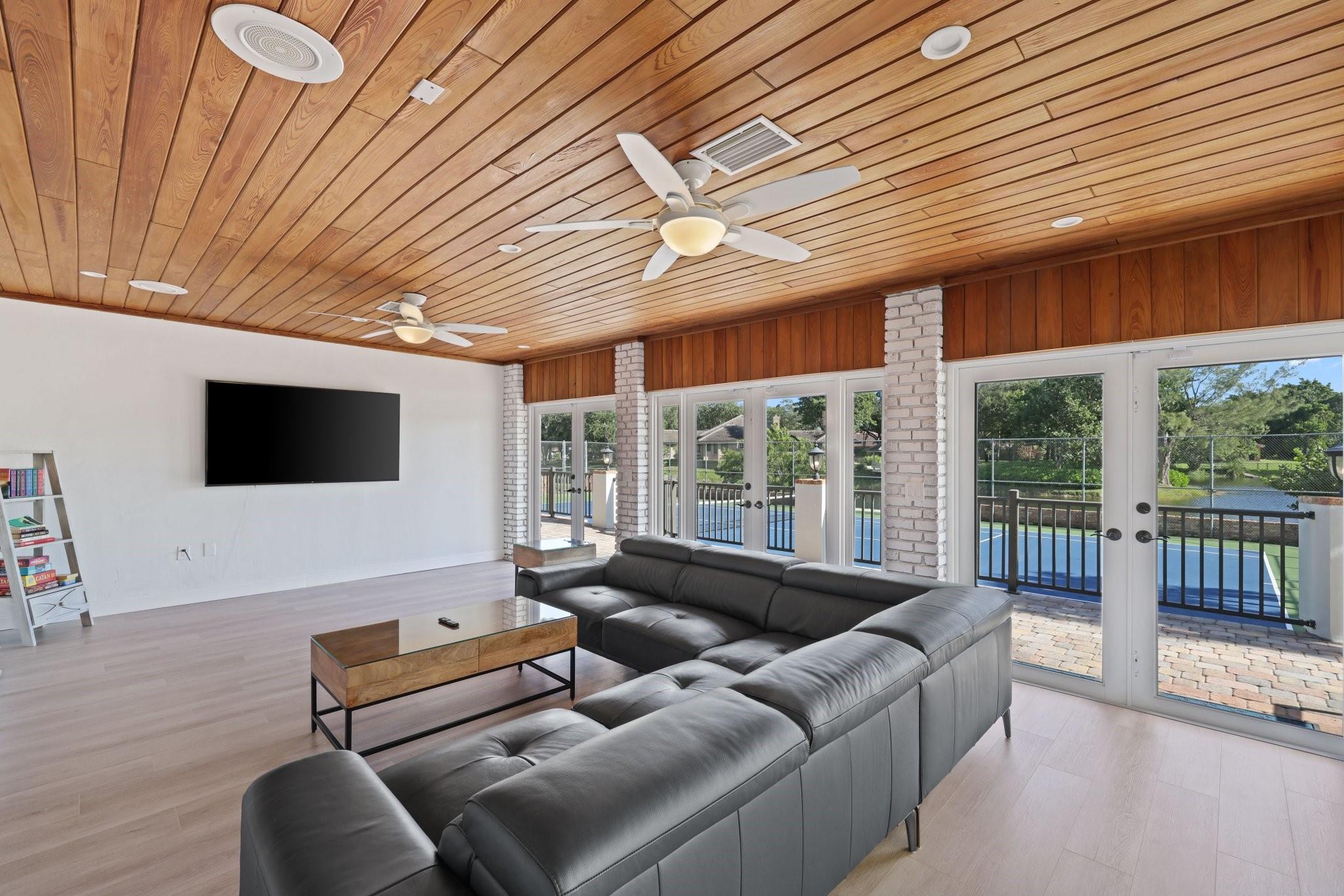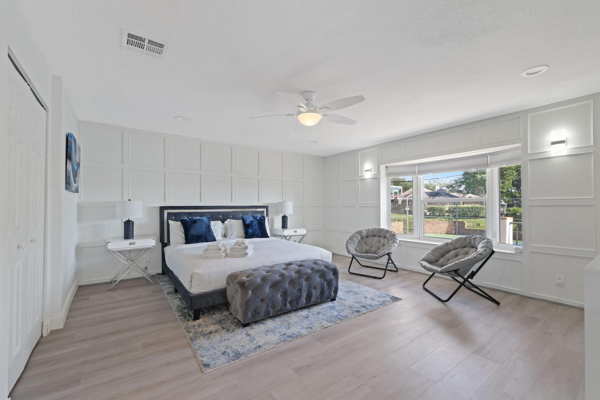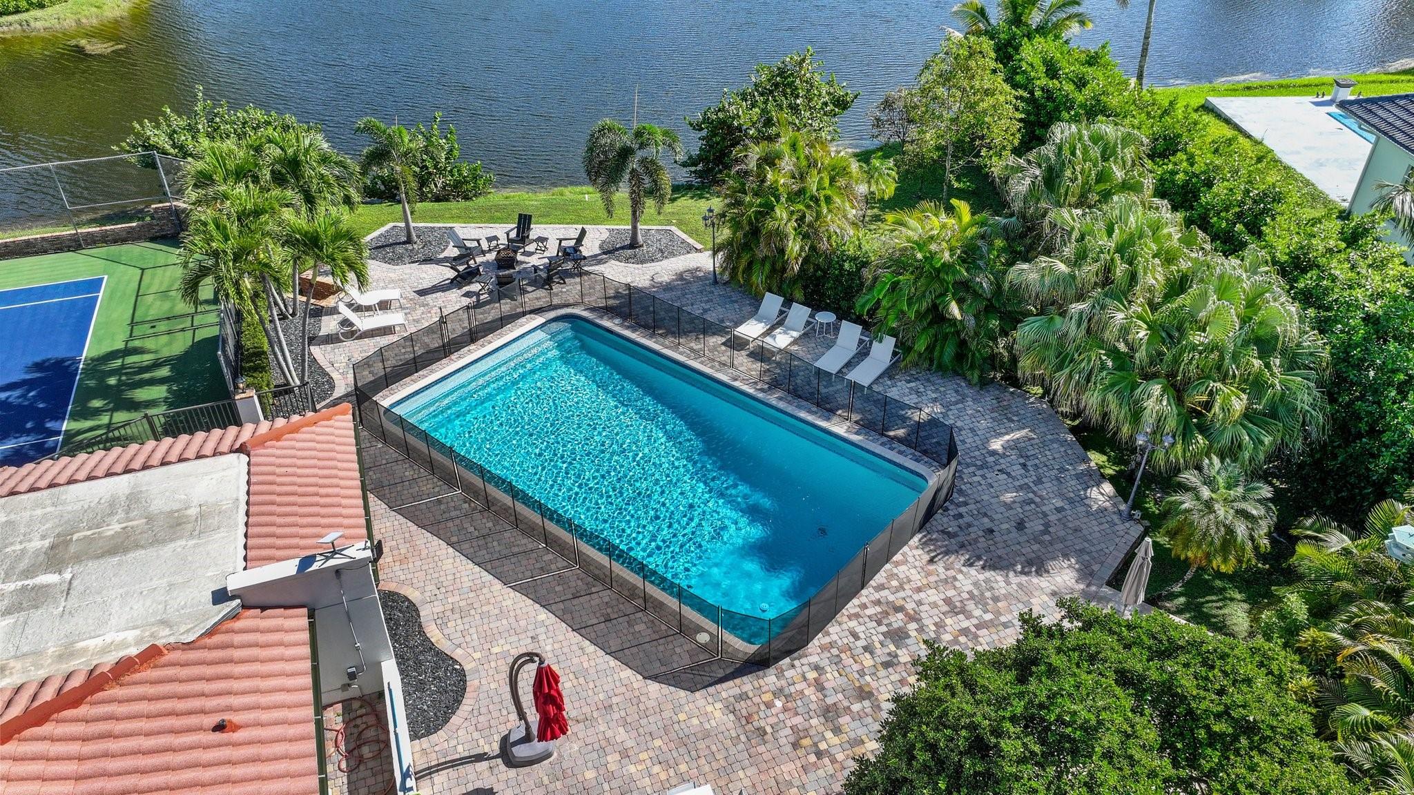 Priced to sell! Investors, vacationers, home owners dream! Welcome to your waterfront estate where you have everything at the palm of your hand! Set on 1 acre, this home features 6 bedrooms, 5 bathrooms, a heated pool, a waterside fire pit, BBQ, regulation size tennis court, game room, office and sauna. Property comes turnkey & fully furnished with in-place management, if needed. Whether you’re seeking a tranquil primary residence, a profitable rental, or a personal vacation home, this property has what you need. The home is equipped with a security system and impact windows throughout. Floor Plan attached. No HOA + Quiet Tranquil Community of Running Brook Hills.