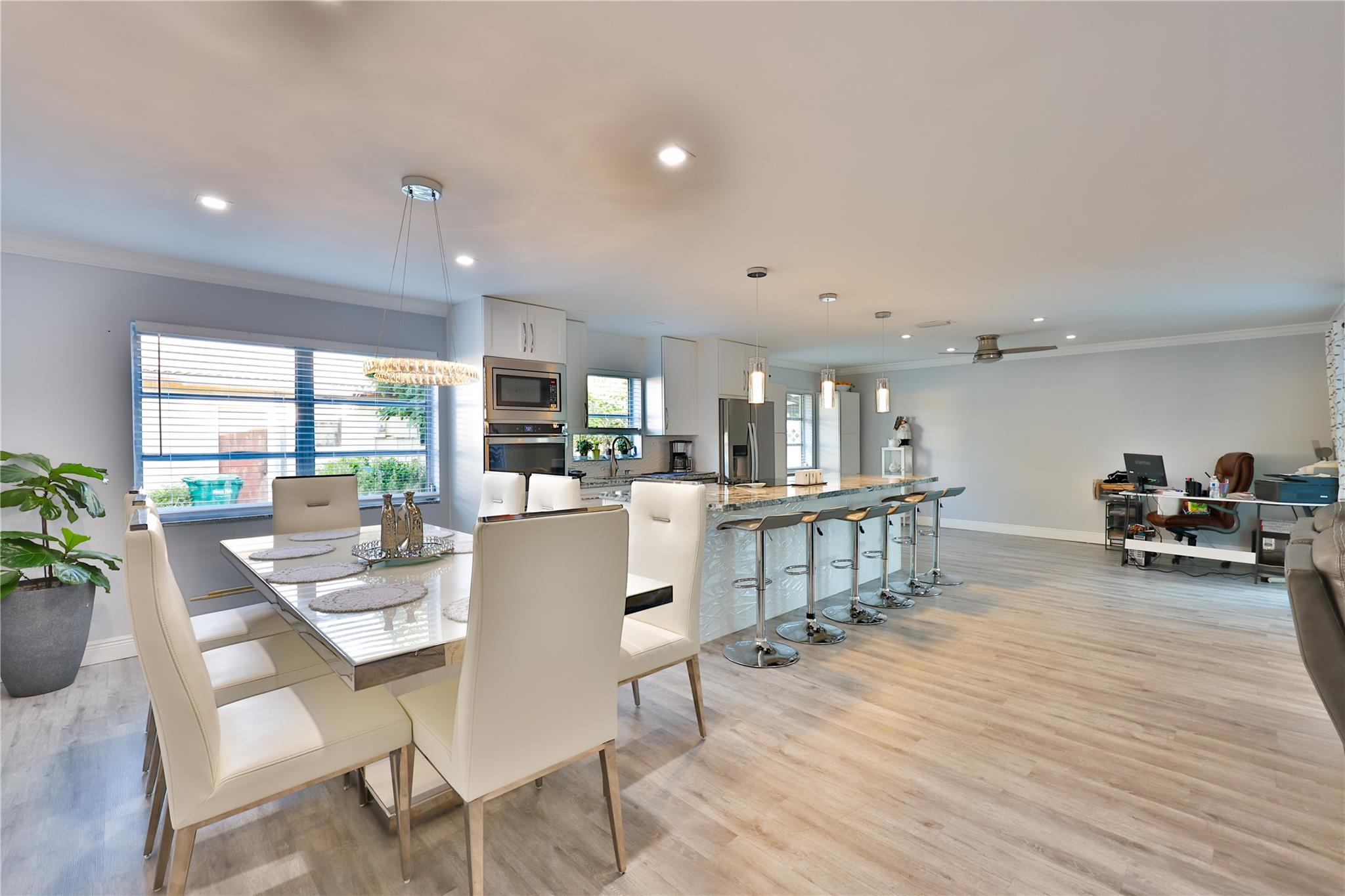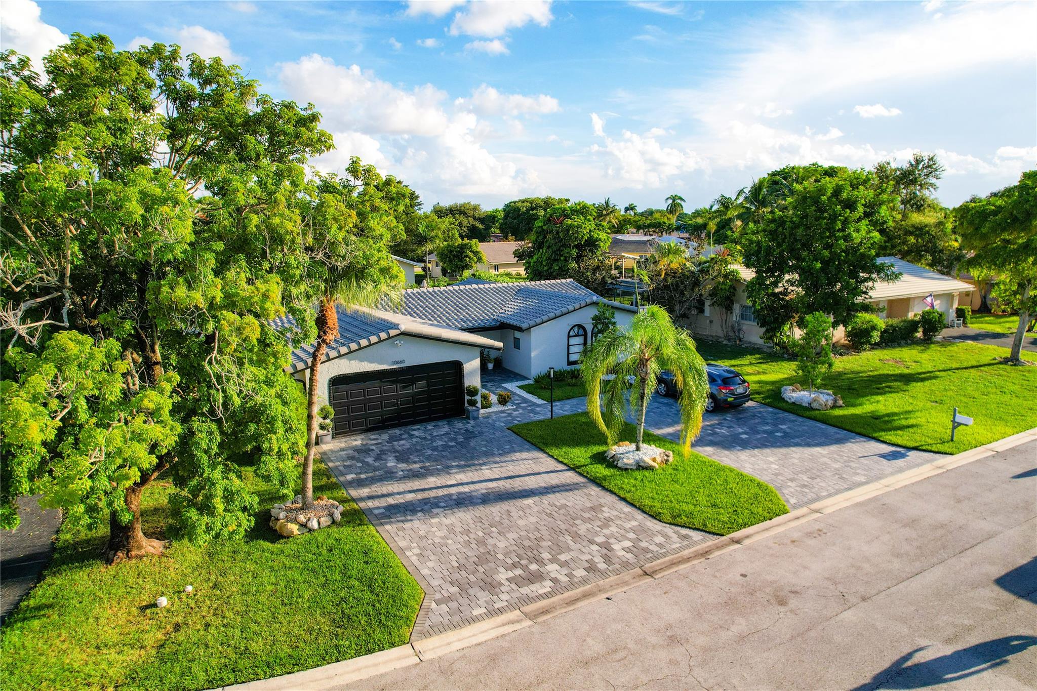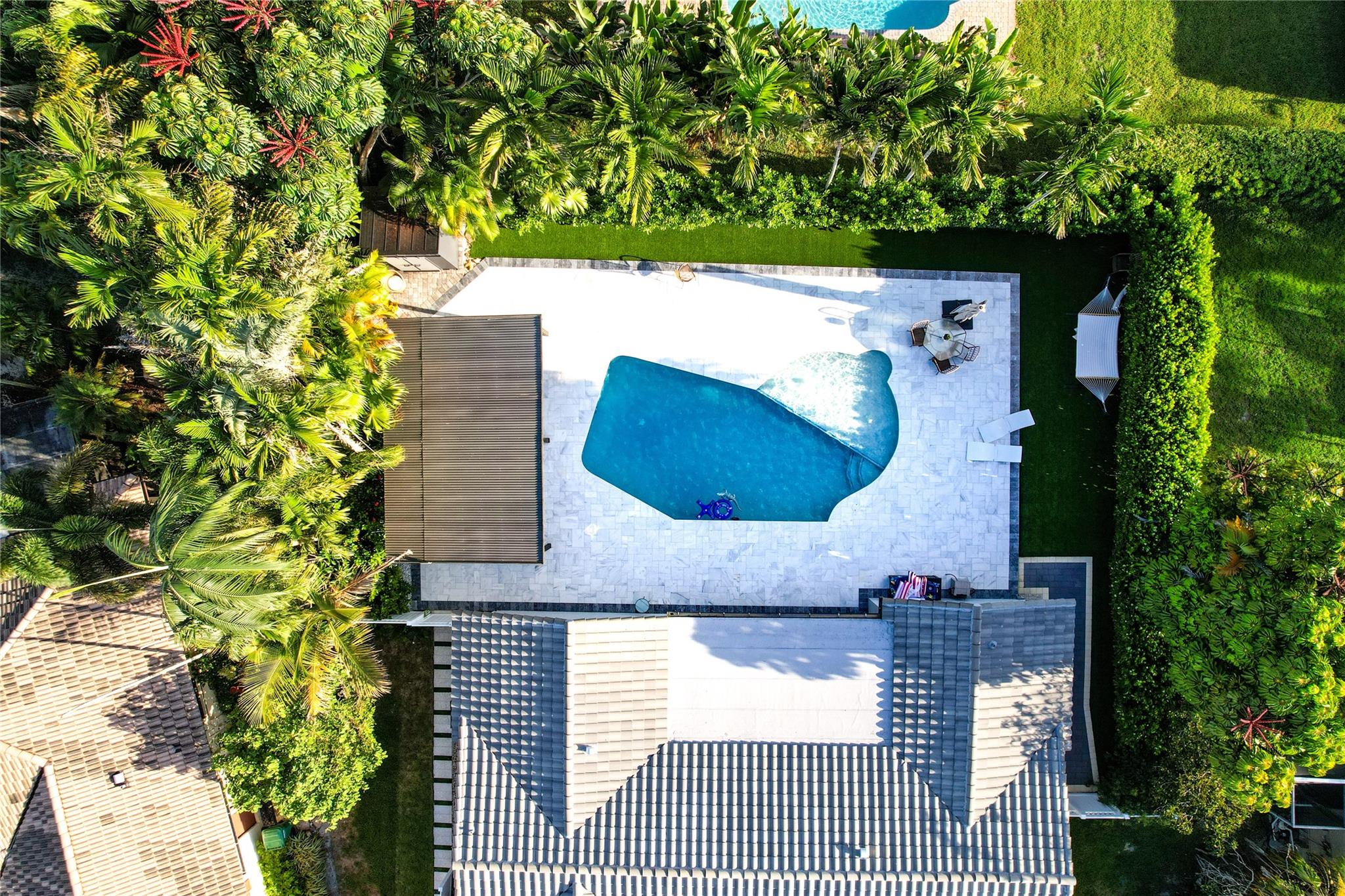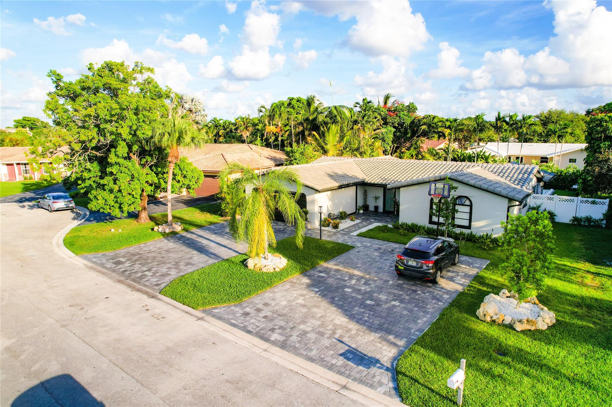 NO HOA – Gorgeous 4 bedroom, 2 bath home in a quiet cul-de-sac. Completely renovated with impact sliding doors, open-concept living area, kitchen with stainless appliances and nicely updated bathrooms. Recently painted in neutral colours. Beautiful fenced backyard with green plants for added privacy, Sprinklers with 2023 pump. The covered patio and large pool is surround by a white marble deck. There is also a garden shed for added storage. The 2-car garage with a wide driveway can accommodate 8 cars . New roof was installed on 2023, AC 2019, Driveway 2022, pool deck 2023 and Bathrooms was remodelled on 2024.