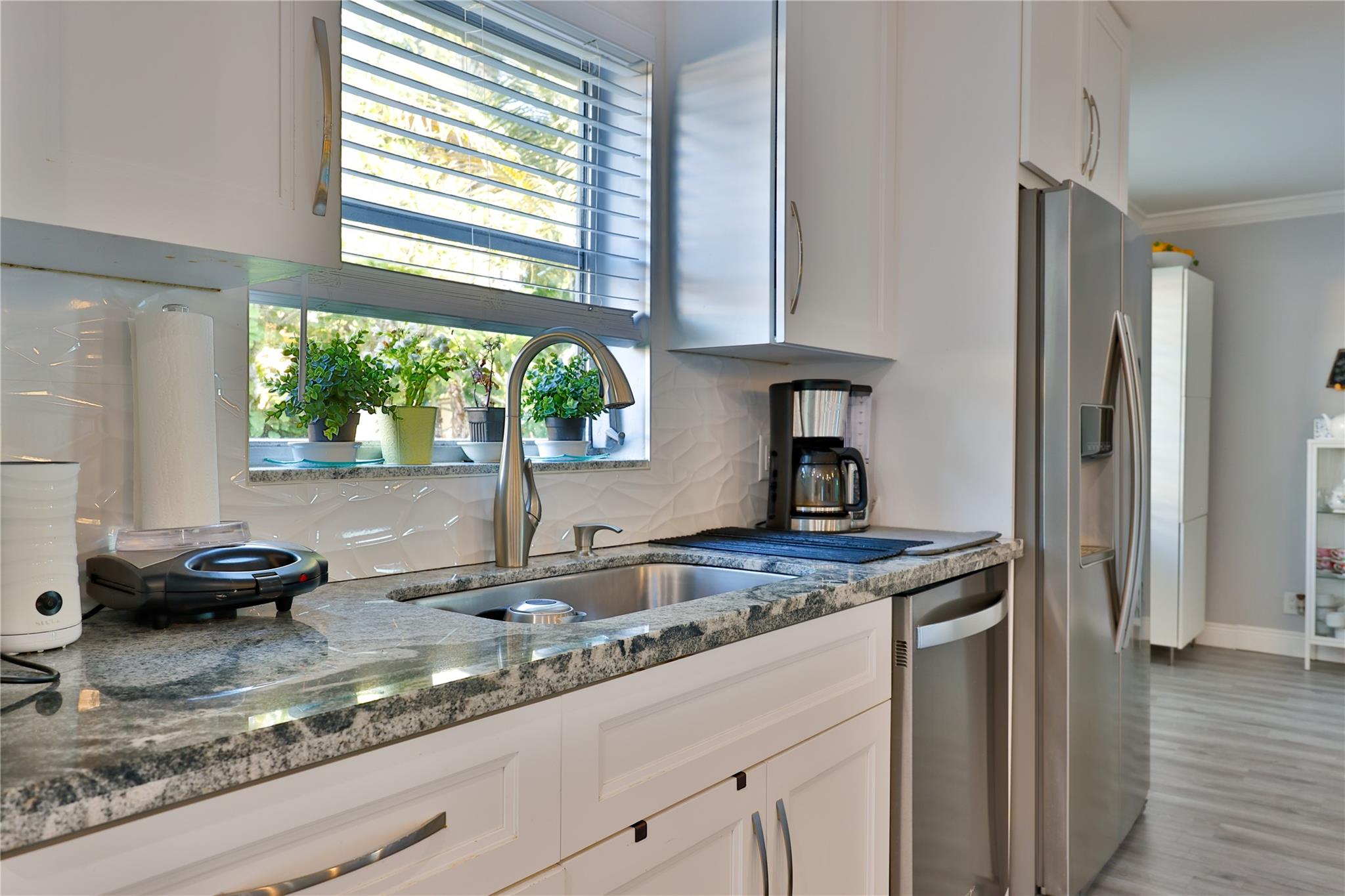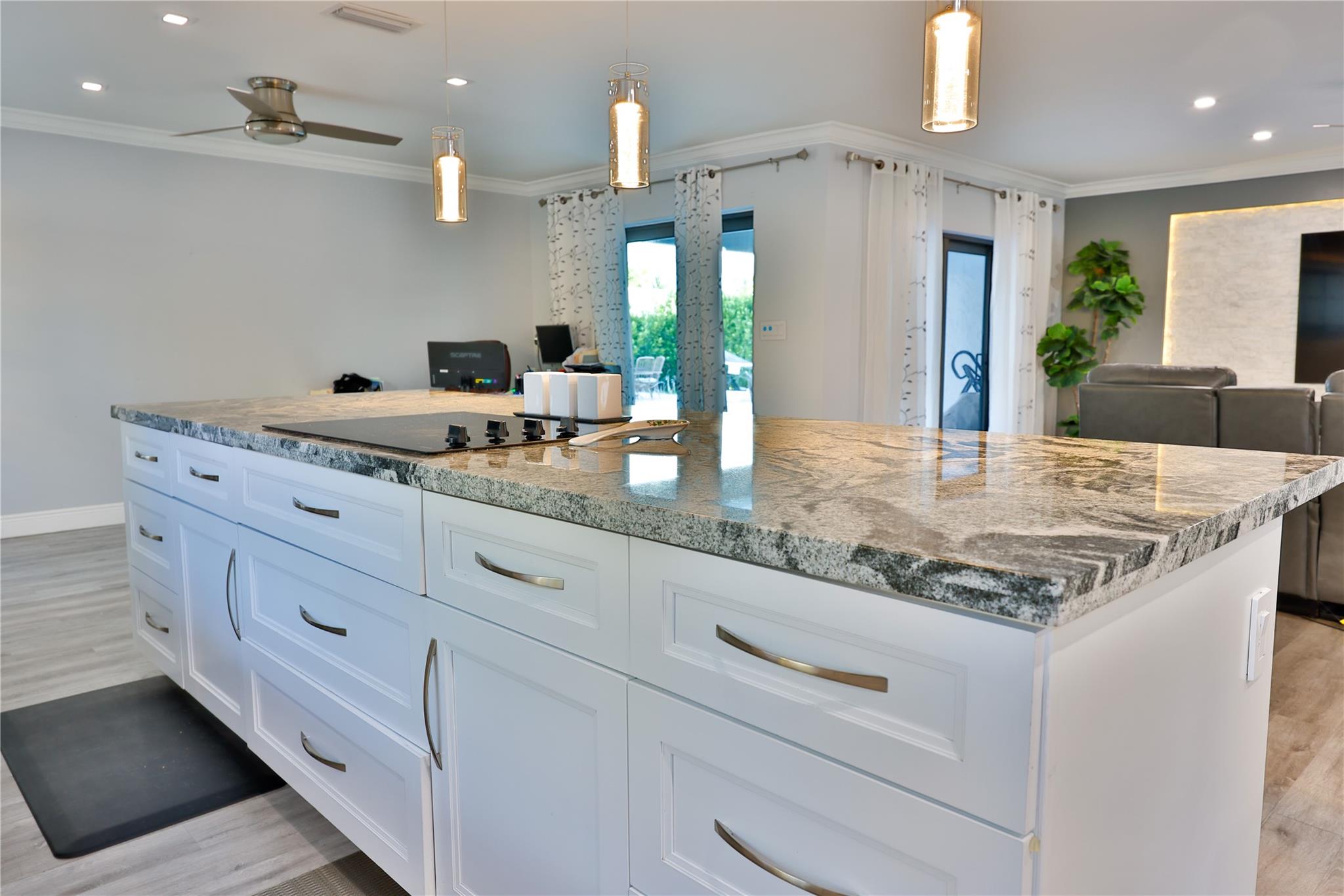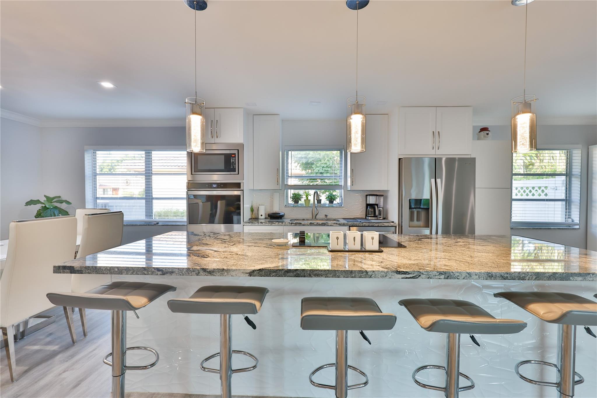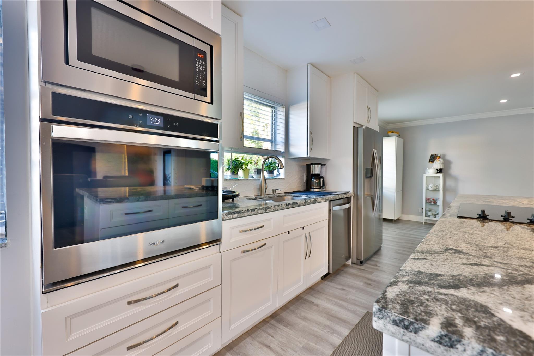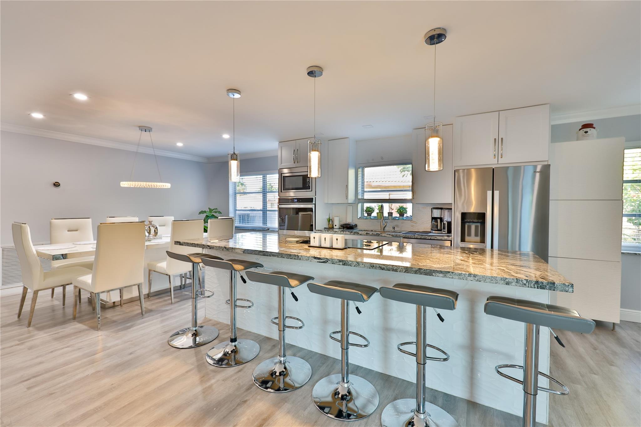 NO HOA – Gorgeous 4 bedroom, 2 bath home in a quiet cul-de-sac. Completely renovated with impact sliding doors, open-concept living area, kitchen with stainless appliances and nicely updated bathrooms. Recently painted in neutral colours. Beautiful fenced backyard with green plants for added privacy, Sprinklers with 2023 pump. The covered patio and large pool is surround by a white marble deck. There is also a garden shed for added storage. The 2-car garage with a wide driveway can accommodate 8 cars . New roof was installed on 2023, AC 2019, Driveway 2022, pool deck 2023 and Bathrooms was remodelled on 2024.
