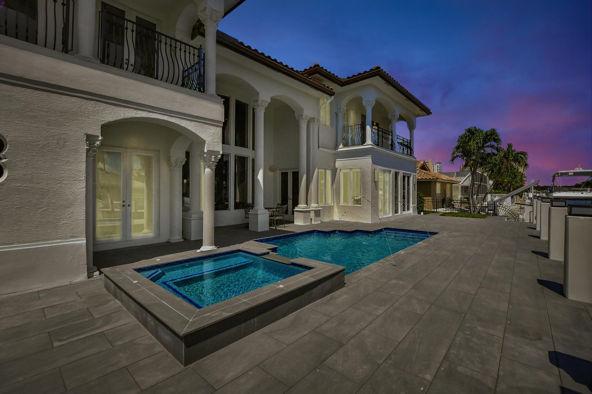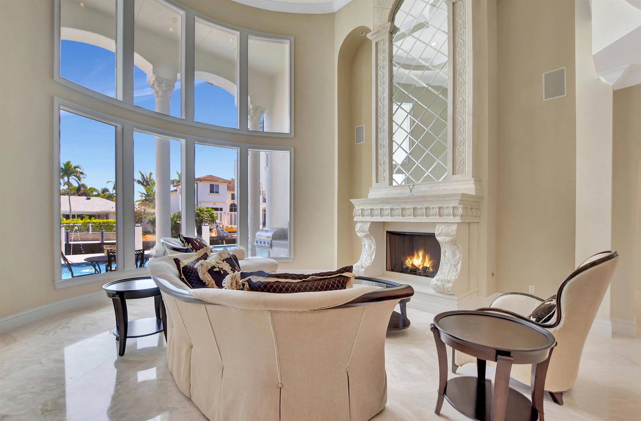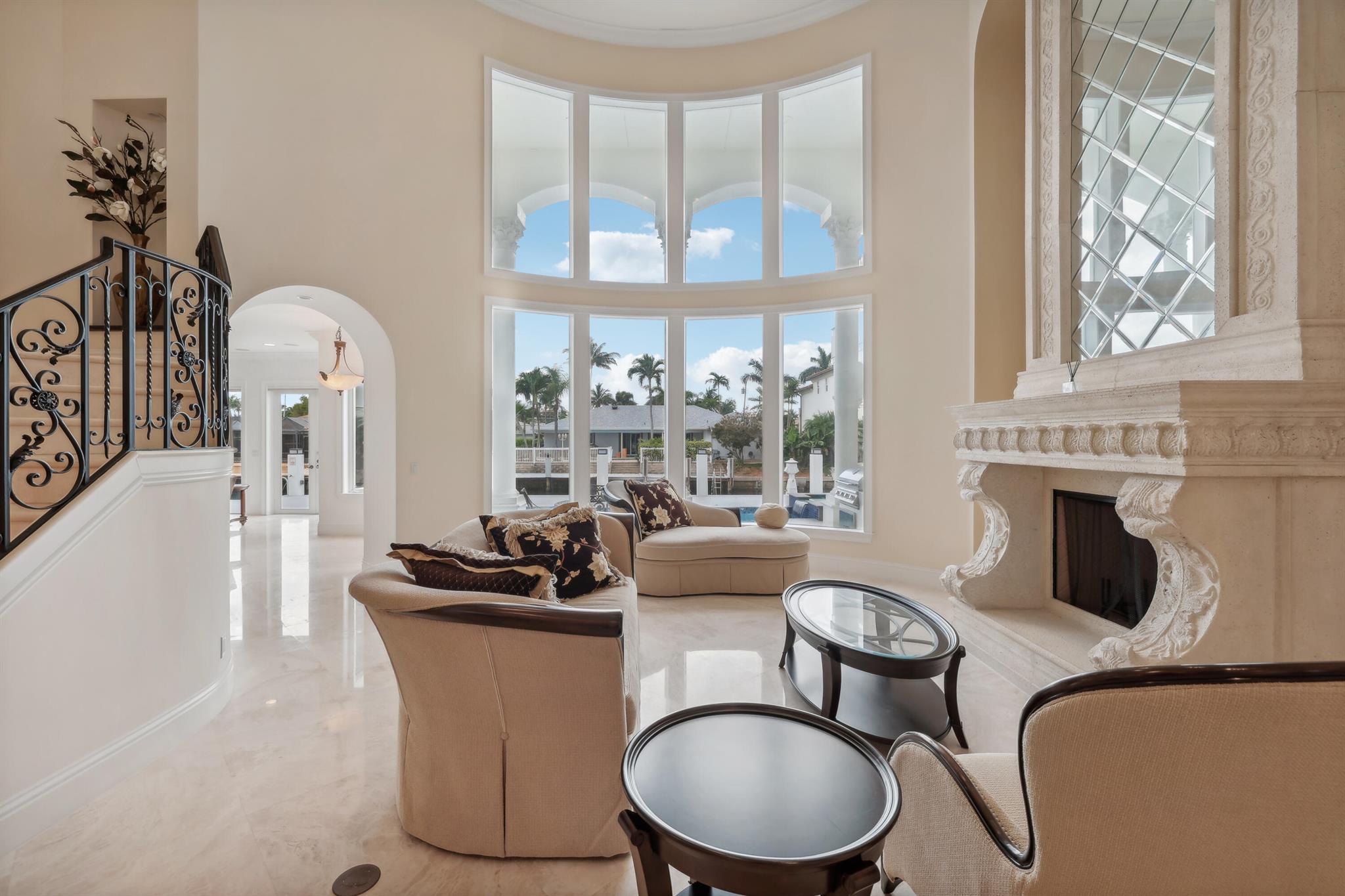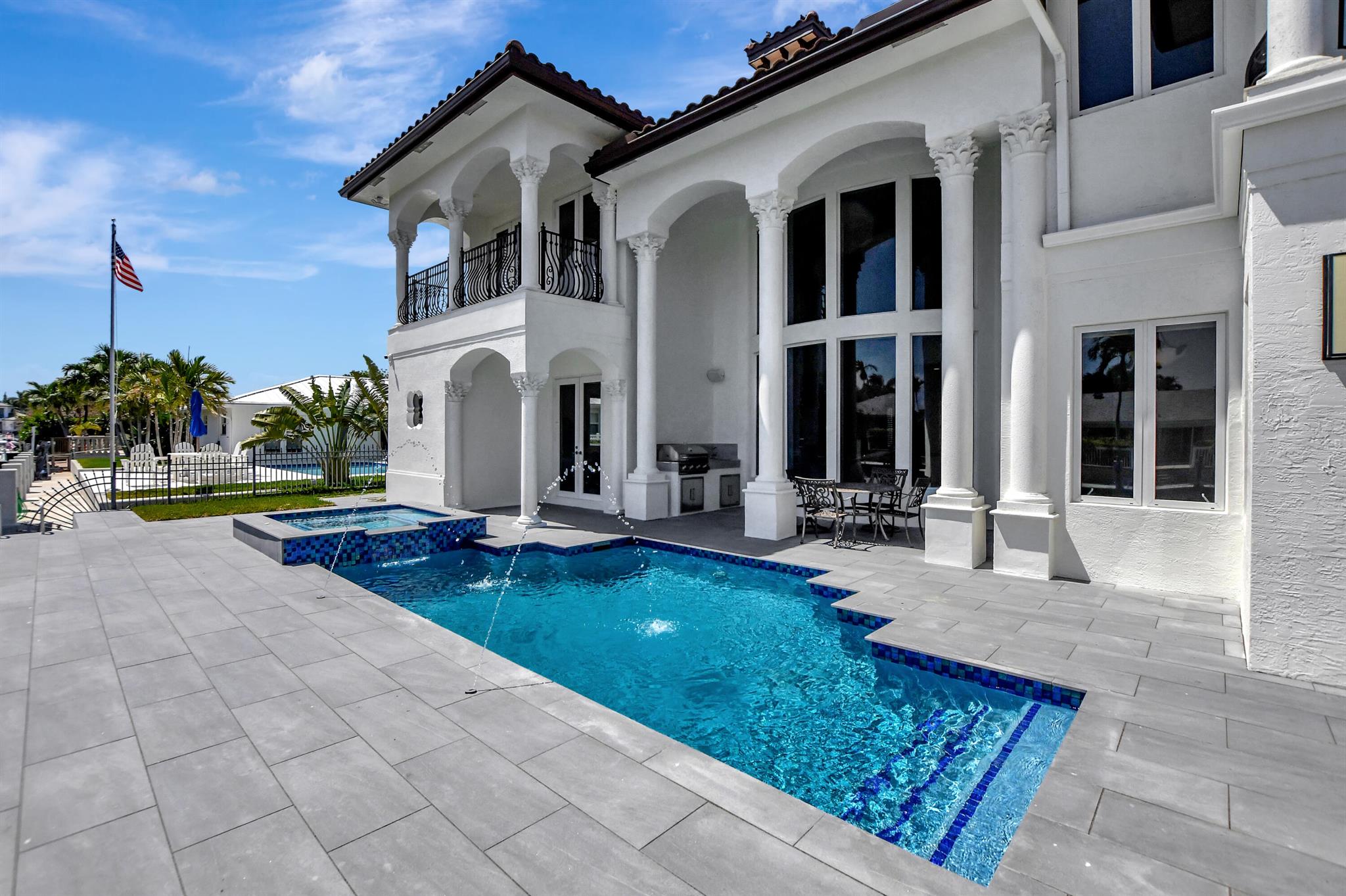 Experience the luxury living in this magnificent deepwater mansion with SE exposure, no fixed bridges and ocean access. Enter to find a soaring stone fireplace and a chef’s gourmet kitchen complete with a center island. The resort-style pool and spa, outdoor summer kitchen, and hurricane-impact glass to ensure a lifestyle of opulence and security. This exquisite residence features 5 large bed suites, 4.5 baths, a magnificent library, and balconies. The kitchen is equipped with Thermador gas cooktop, Bosch dishwasher, double ovens, and a spacious granite island with a veggie sink. Enjoy the entire day sun in the brand-new pool and spa and dock. 85′ prime dockage and a turning basin. With windows and doors all hurricane-impact glass, this home offers true Boca Raton living at its finest