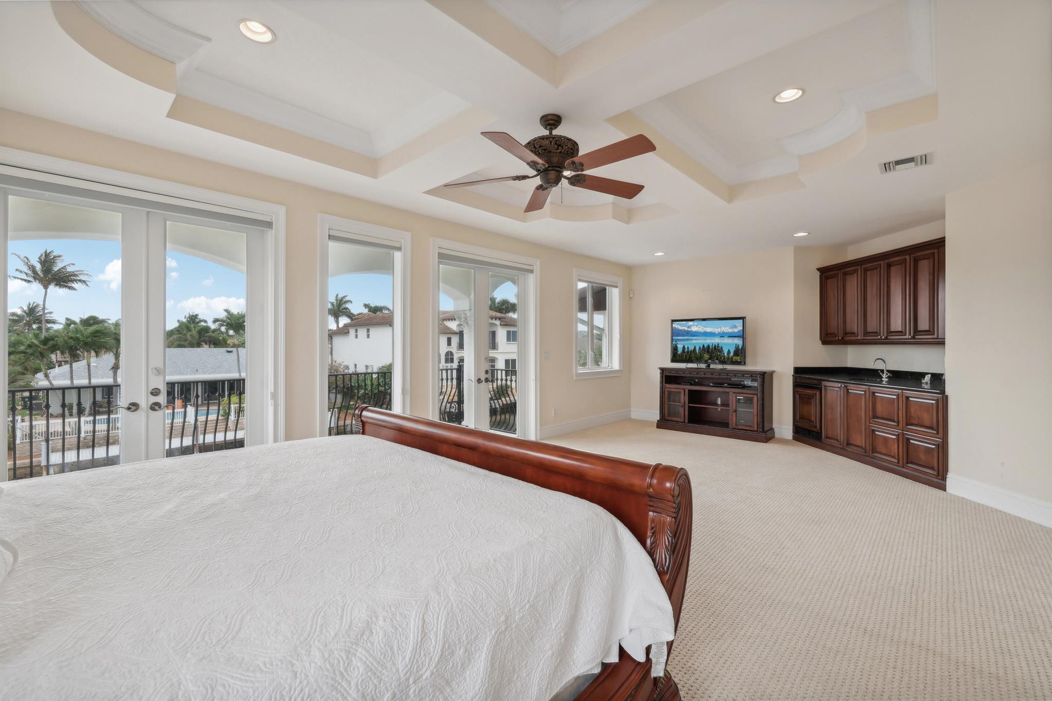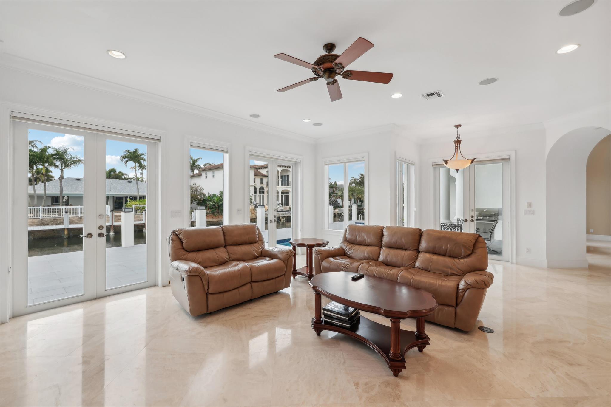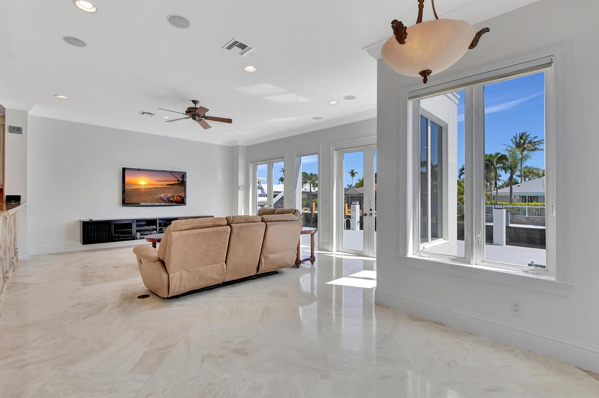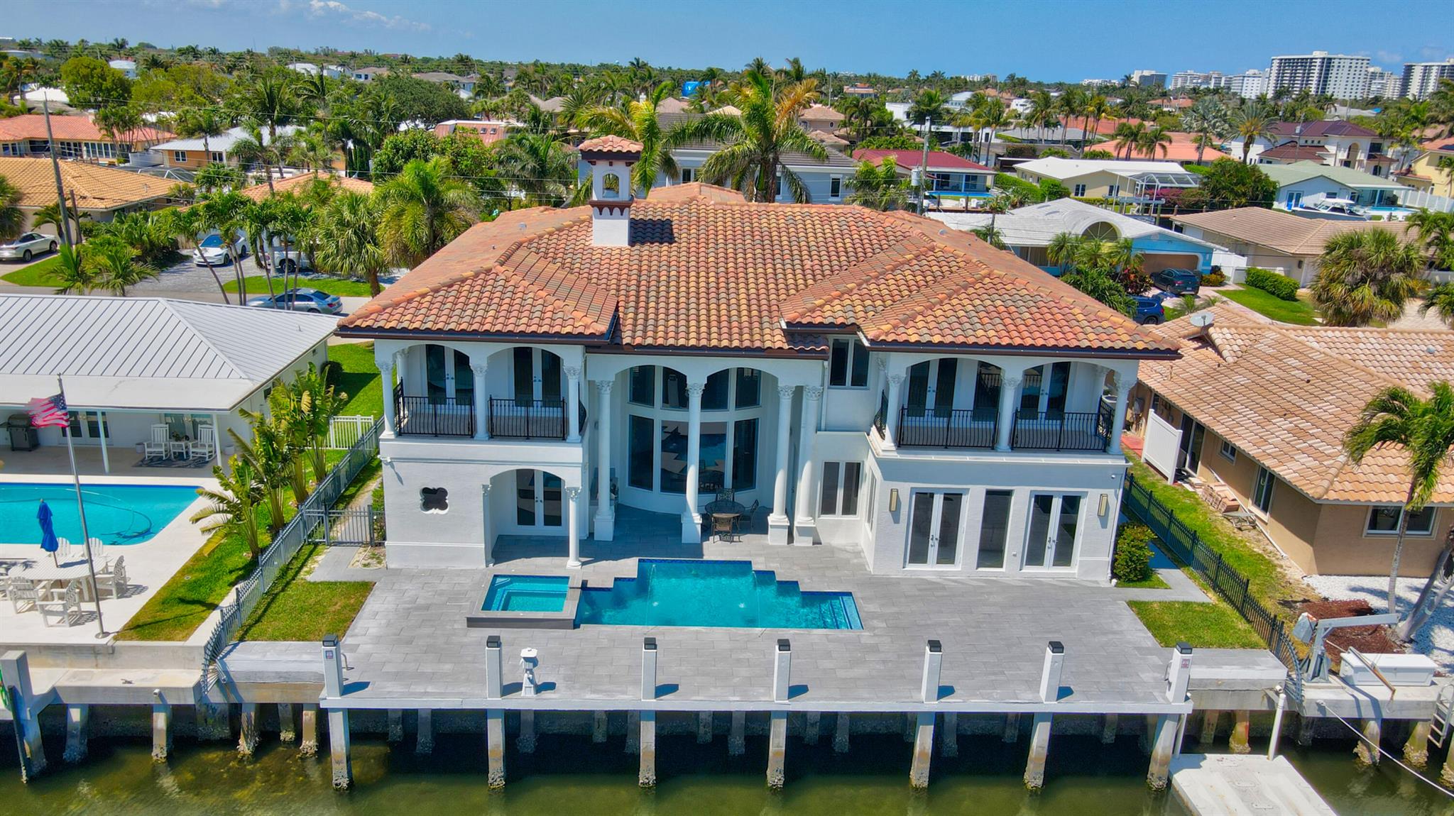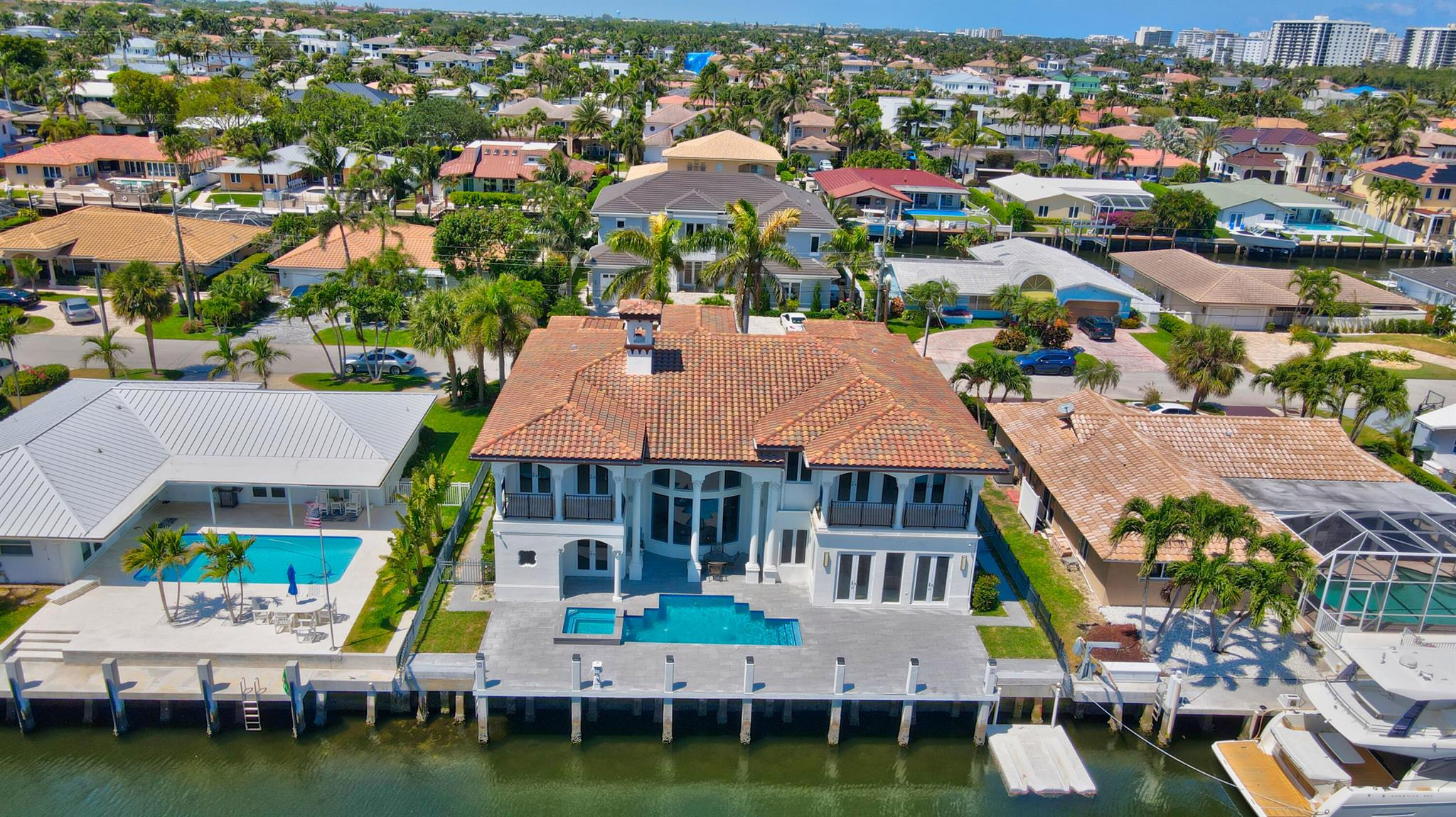 Experience the luxury living in this magnificent deepwater mansion with SE exposure, no fixed bridges and ocean access. Enter to find a soaring stone fireplace and a chef’s gourmet kitchen complete with a center island. The resort-style pool and spa, outdoor summer kitchen, and hurricane-impact glass to ensure a lifestyle of opulence and security. This exquisite residence features 5 large bed suites, 4.5 baths, a magnificent library, and balconies. The kitchen is equipped with Thermador gas cooktop, Bosch dishwasher, double ovens, and a spacious granite island with a veggie sink. Enjoy the entire day sun in the brand-new pool and spa and dock. 85′ prime dockage and a turning basin. With windows and doors all hurricane-impact glass, this home offers true Boca Raton living at its finest