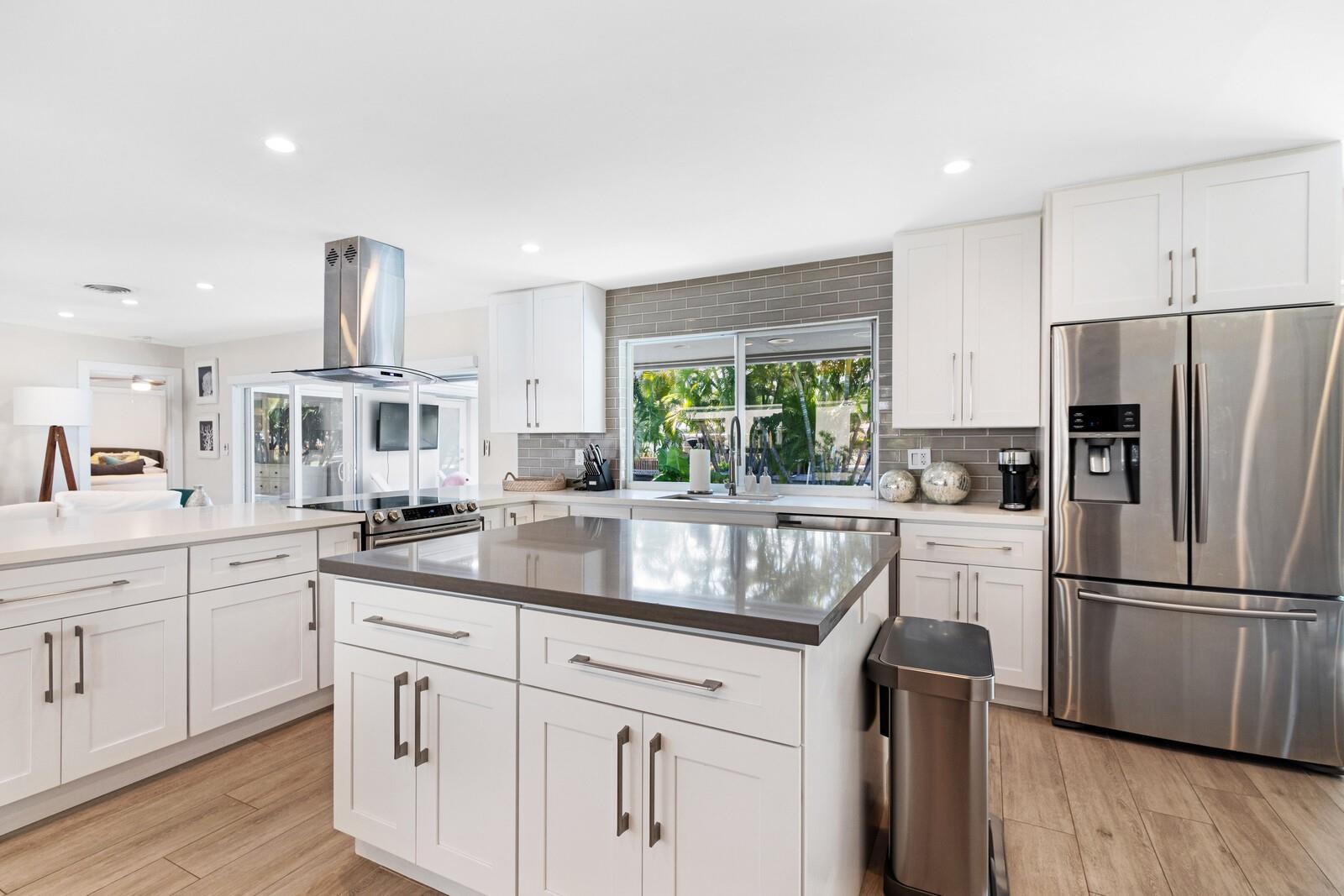 Experience luxury in this stunning 3-bed, 3-bath Coral Ridge Isles home. Situated on a tranquil cul-de-sac, it boasts 75ft of waterfront access to the ocean. Step into an elegant space with a modern open floor plan. The chef’s kitchen is a highlight with new stainless-steel appliances and a spacious island. The primary suite is luxurious, featuring a walk-in closet and dual sinks with a glass shower. Enjoy serene views of the pool, canal, and lush landscaping for ultimate privacy. Conveniently located near beautiful beaches, vibrant Las Olas Boulevard, and Fort Lauderdale Airport. Additional features include a climate-controlled laundry room and ample storage, creating a contemporary haven of luxury and comfort.