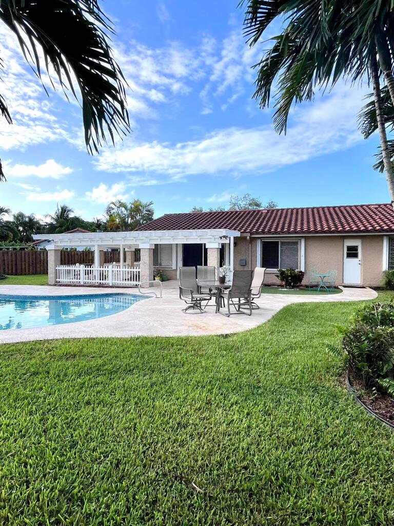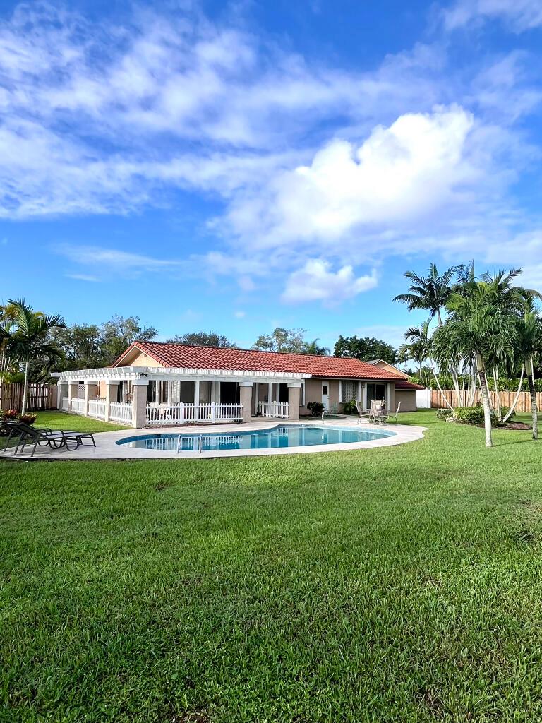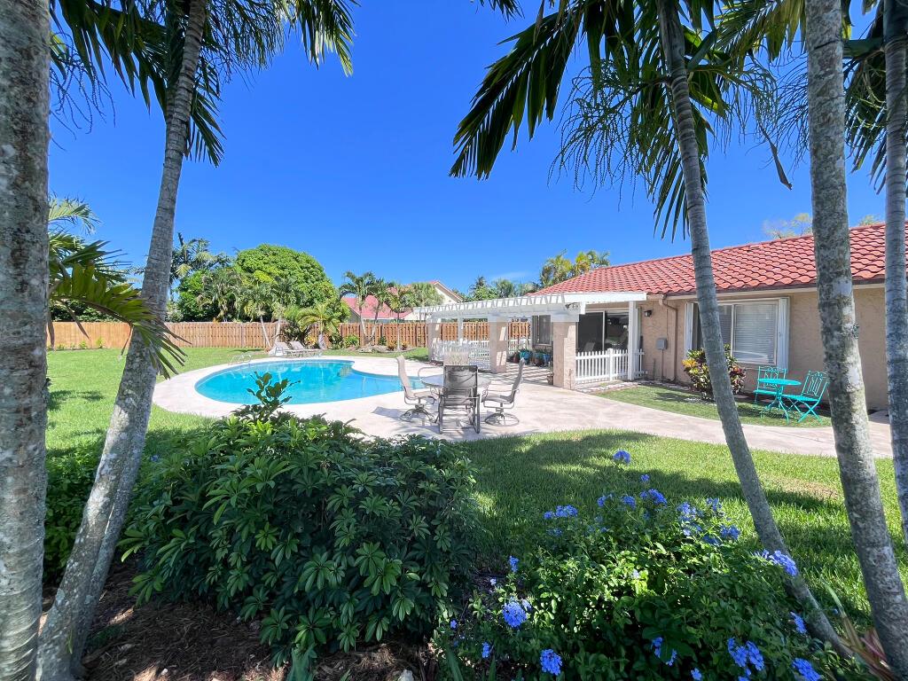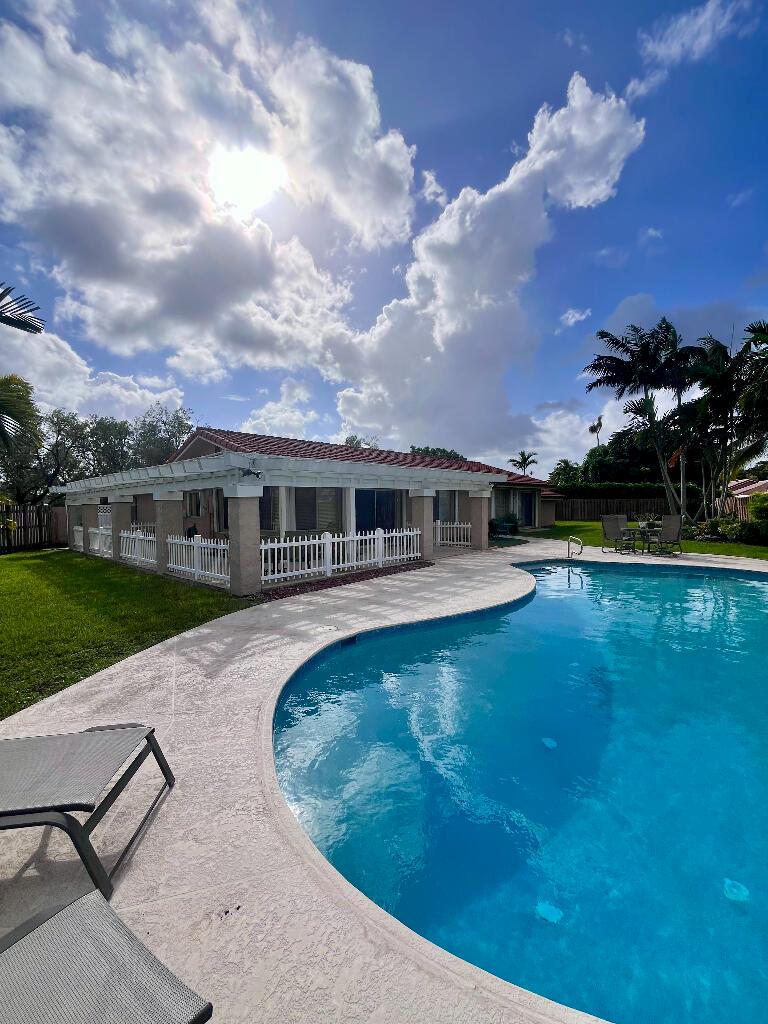 Upon entry you’re welcomed with plenty of natural light, large windows, spacious living areas and a breathtaking view of the pool, patio, expansive veranda, grass areas and tropical landscaping. Features 4 bedrooms and 2 bathrooms. Kitchen, Bathrooms and all Closets are upgraded with custom cabinetry, pull outs, granite and stainless steel appliances. Home also features barrel tile roof, hurricane accordion shutters, custom window blinds, 2 walk-in master closets, clean 2 car garage, large permitted CBS storage shed and a 550sf veranda offering shade year-round. There is plenty of space to expand if needed. North-south facing at the end of a quiet cul-de-sac.