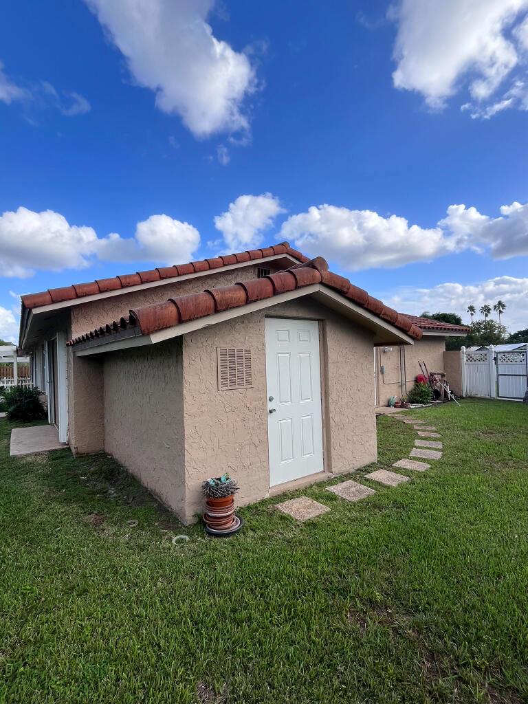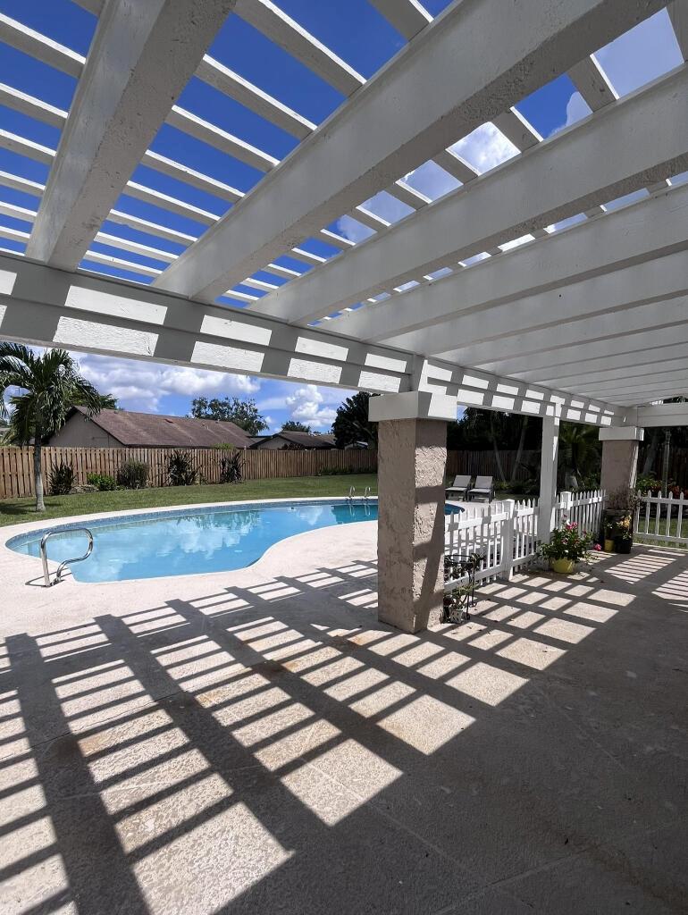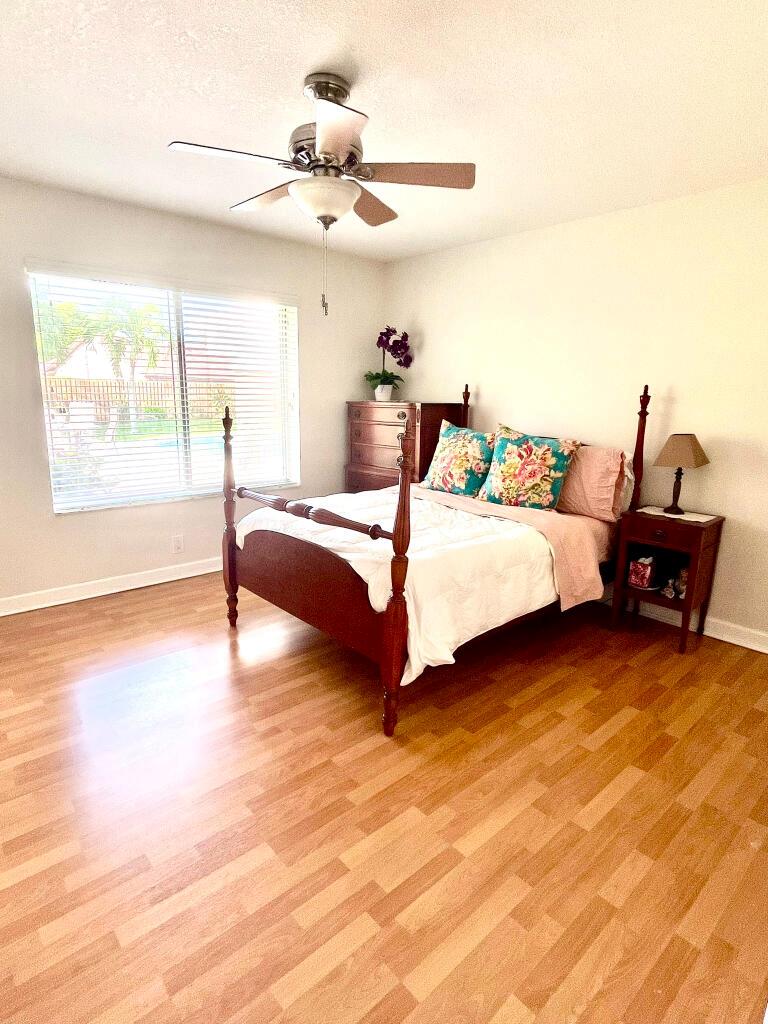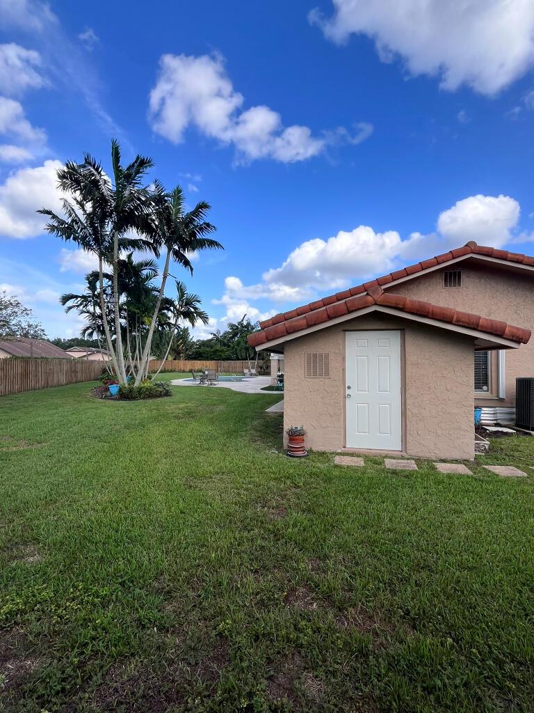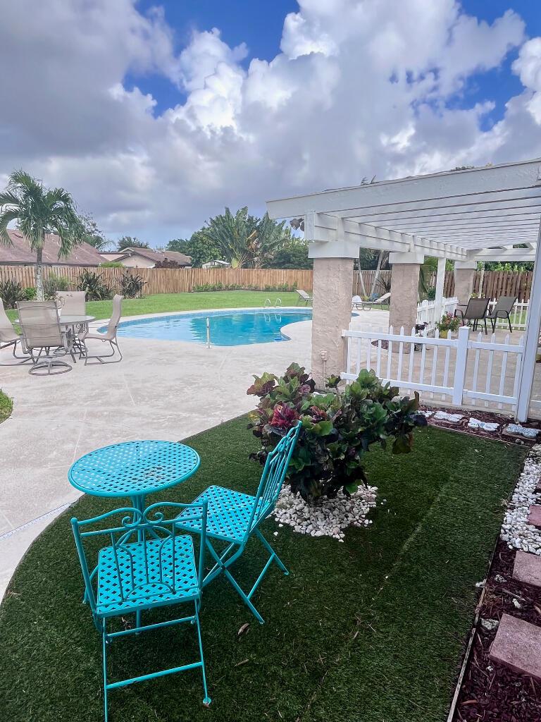 Upon entry you’re welcomed with plenty of natural light, large windows, spacious living areas and a breathtaking view of the pool, patio, expansive veranda, grass areas and tropical landscaping. Features 4 bedrooms and 2 bathrooms. Kitchen, Bathrooms and all Closets are upgraded with custom cabinetry, pull outs, granite and stainless steel appliances. Home also features barrel tile roof, hurricane accordion shutters, custom window blinds, 2 walk-in master closets, clean 2 car garage, large permitted CBS storage shed and a 550sf veranda offering shade year-round. There is plenty of space to expand if needed. North-south facing at the end of a quiet cul-de-sac.