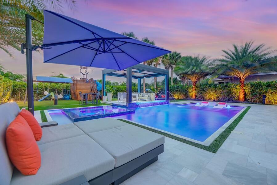 Incredible Price Improvement! Luxury One-of-a-Kind Home Must Be Seen to be Believed. No Expense has been Spared! From the moment you pull in, you feel the modern cool contemporary, nature of the 5Br/4BA/3Car Garage. Smart Home – Complete with magnificent AWARD-WINNING Resort Style Pool and Yard. Every Conceivable upgrade! Enter and immediately note your Quartz staircase with glass walls and steel banisters, designer fans, fixtures, & LED lighting throughout. Dining Room boasts custom built-in & beverage fridge, desirable chefs’ custom kosher kitchen, grand master suite and bath, spacious bathrooms and impact windows and doors. PLEASE SEE FULL LIST OF UPGRADES INCLUDED IN END OF THE PICTURES! DO NOT MISS OUT ON THIS RARE OPPORTUNITY. WILL NOT LAST LONG! Walking distance to House of Worshi