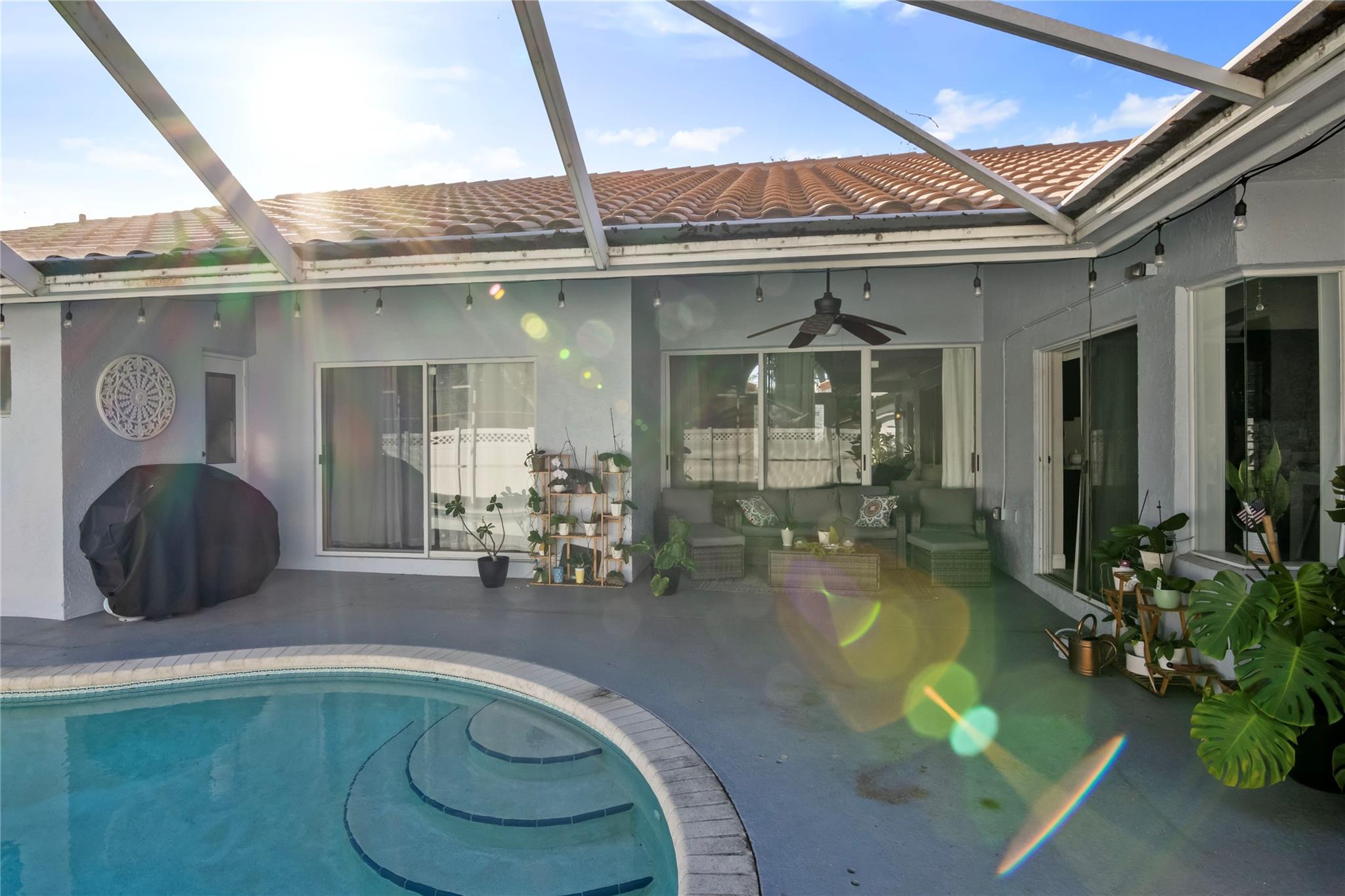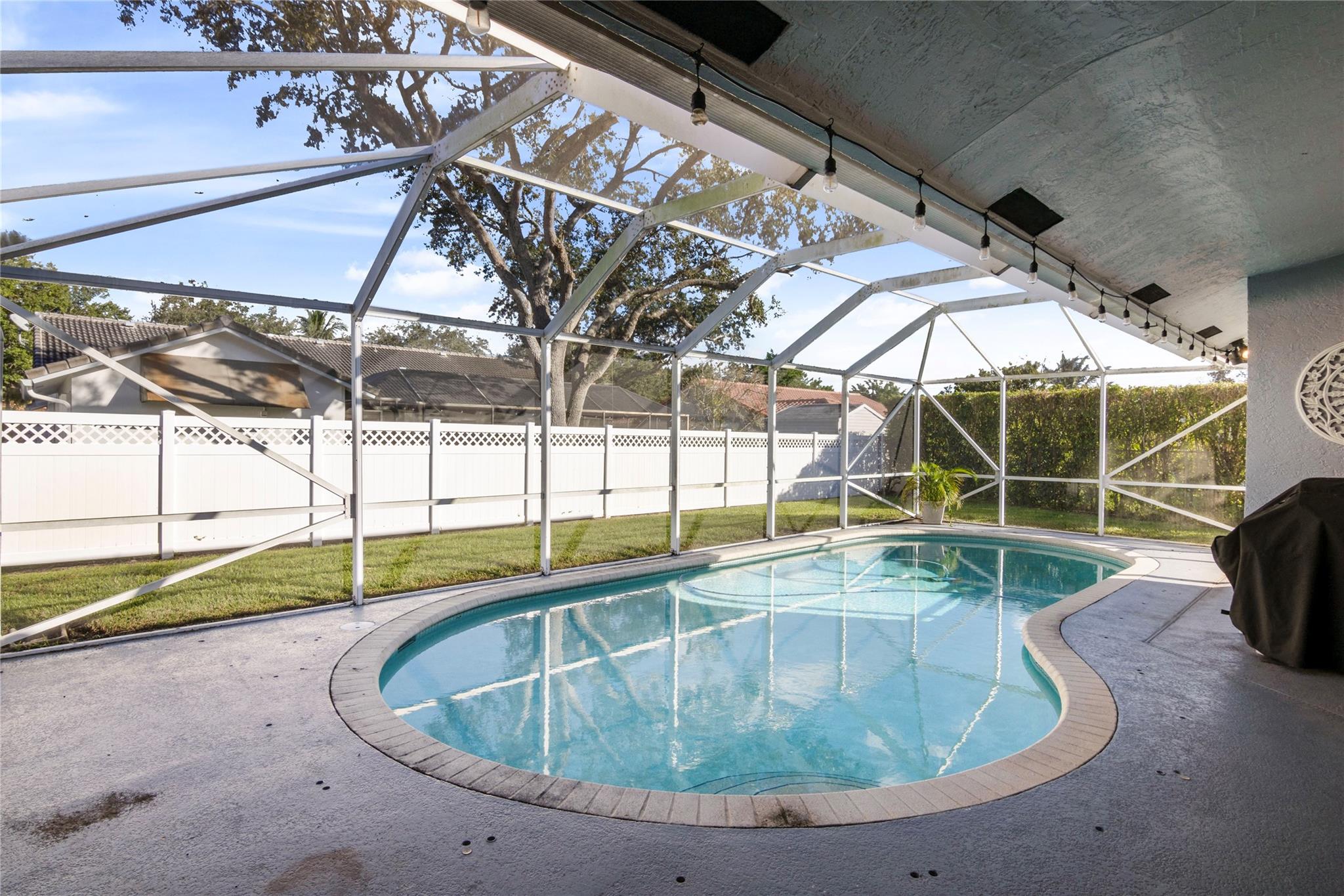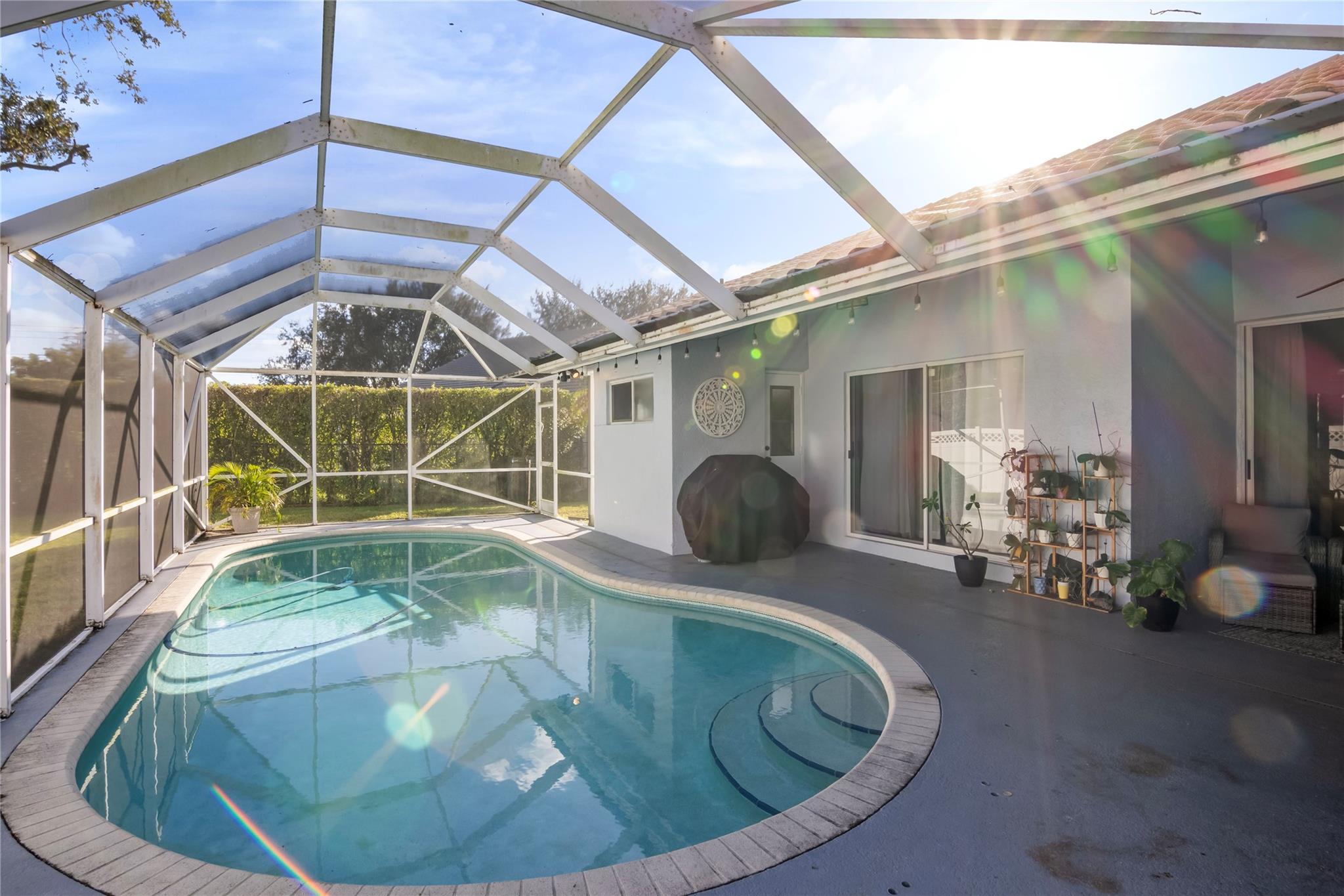 Welcome to 4725 NW 99 Lane, a stunning pool home on a peaceful cul-de-sac in the heart of Coral Springs. This beautifully updated property is designed for both comfort and entertaining, featuring an open-concept kitchen with a spacious island, sleek stainless steel appliances, and ample wood cabinetry for all your storage needs. The kitchen flows seamlessly into the living areas, perfect for hosting gatherings or enjoying quiet family evenings. Step outside to your private backyard oasis with a sparkling pool and a screened patio, ideal for year-round outdoor living. The split floor plan offers privacy, with updated modern bathrooms. Enjoy a 2-year new AC.
