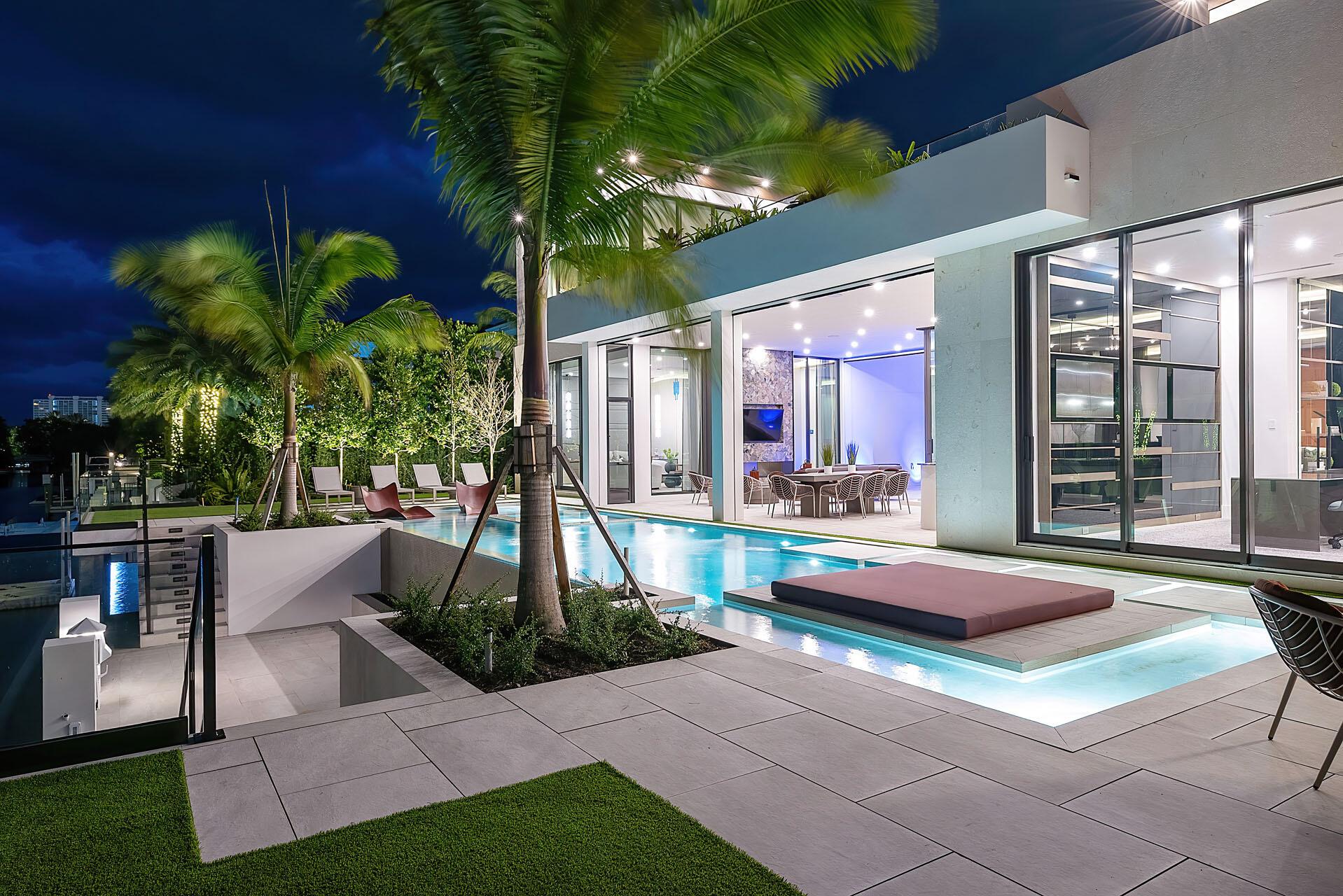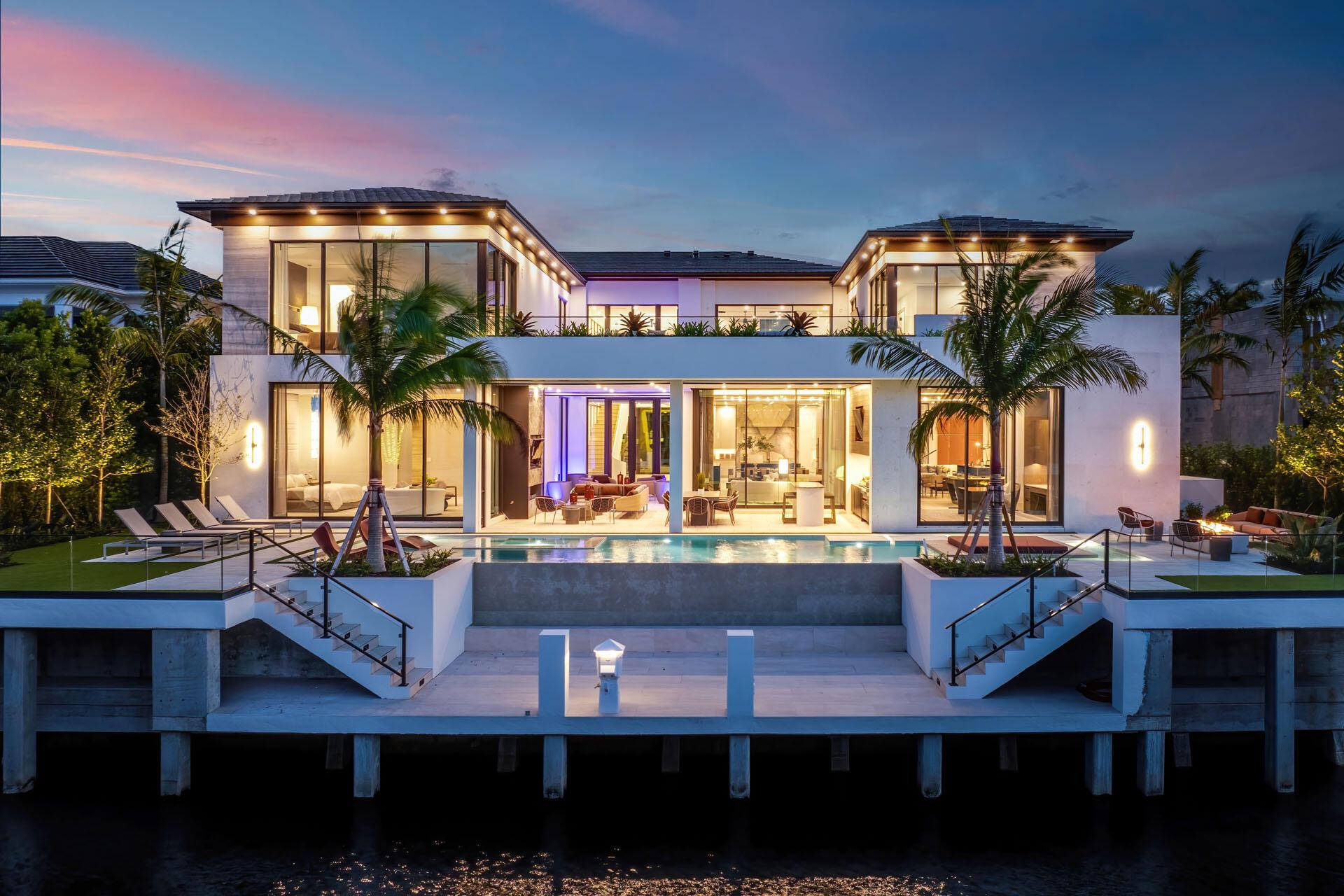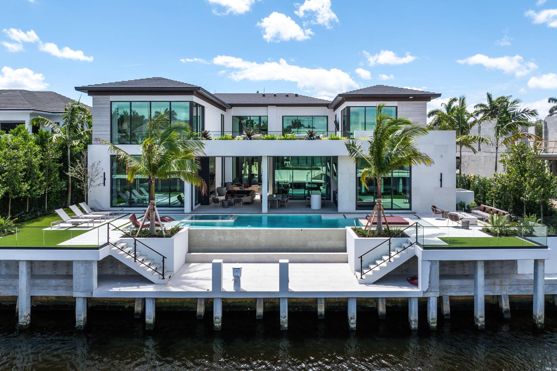 Nestled graciously along the 101 feet of the prestigious Butterfly Palm Waterway lies Primark Partners brand-new contemporary masterpiece. This remarkable 7-bedroom estate embodies a lavish waterfront lifestyle with a decadent first-floor main suite complete with indulgent His & Her spa-like baths, a VIP suite, a designer open-air kitchen, a chic clubroom with an incredible showroom tandem style garage, and a pristine home office.Outside, the spectacular backyard invites serenity, with a covered lanai stretching the expanse of the estate, hosting a fully equipped summer kitchen for al fresco dining. Delight in the allure of the custom-designed pool, accompanied by a rejuvenating spa, captivating fire pit, and private dock. A gated motor court accommodates five garages, leading