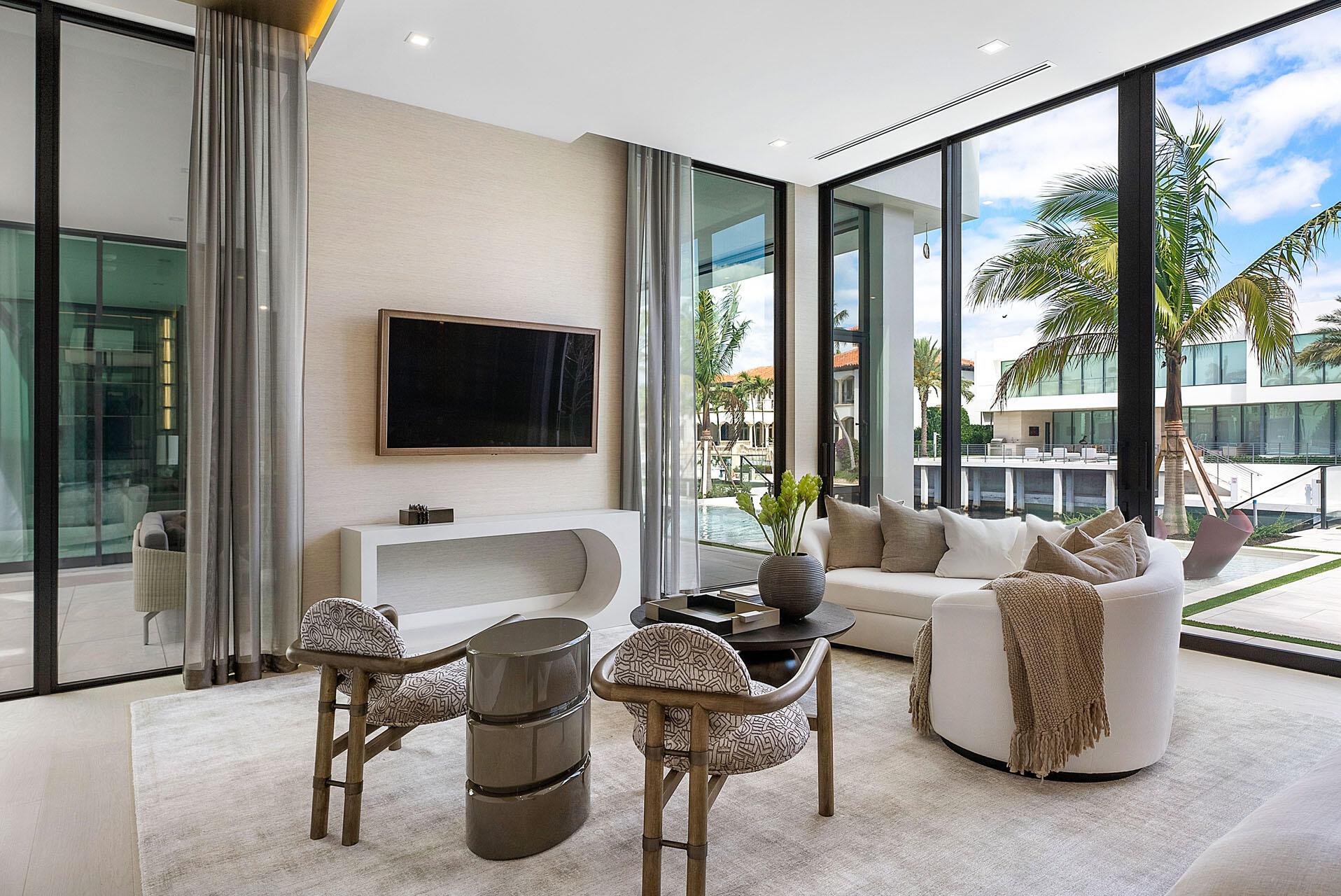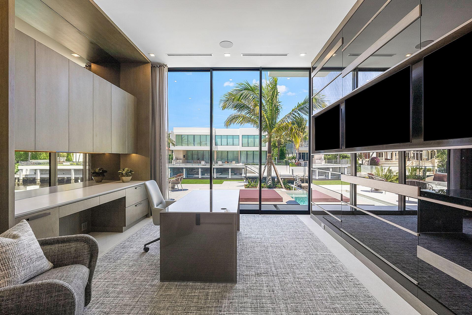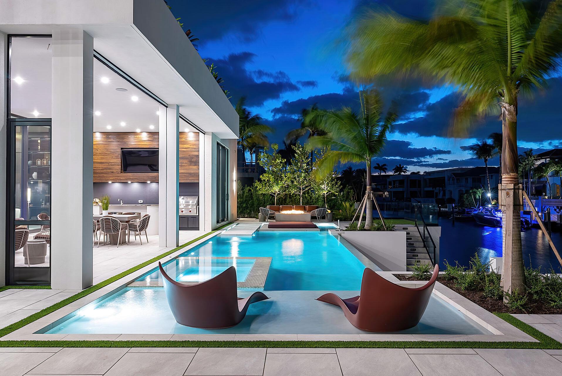 Nestled graciously along the 101 feet of the prestigious Butterfly Palm Waterway lies Primark Partners brand-new contemporary masterpiece. This remarkable 7-bedroom estate embodies a lavish waterfront lifestyle with a decadent first-floor main suite complete with indulgent His & Her spa-like baths, a VIP suite, a designer open-air kitchen, a chic clubroom with an incredible showroom tandem style garage, and a pristine home office.Outside, the spectacular backyard invites serenity, with a covered lanai stretching the expanse of the estate, hosting a fully equipped summer kitchen for al fresco dining. Delight in the allure of the custom-designed pool, accompanied by a rejuvenating spa, captivating fire pit, and private dock. A gated motor court accommodates five garages, leading