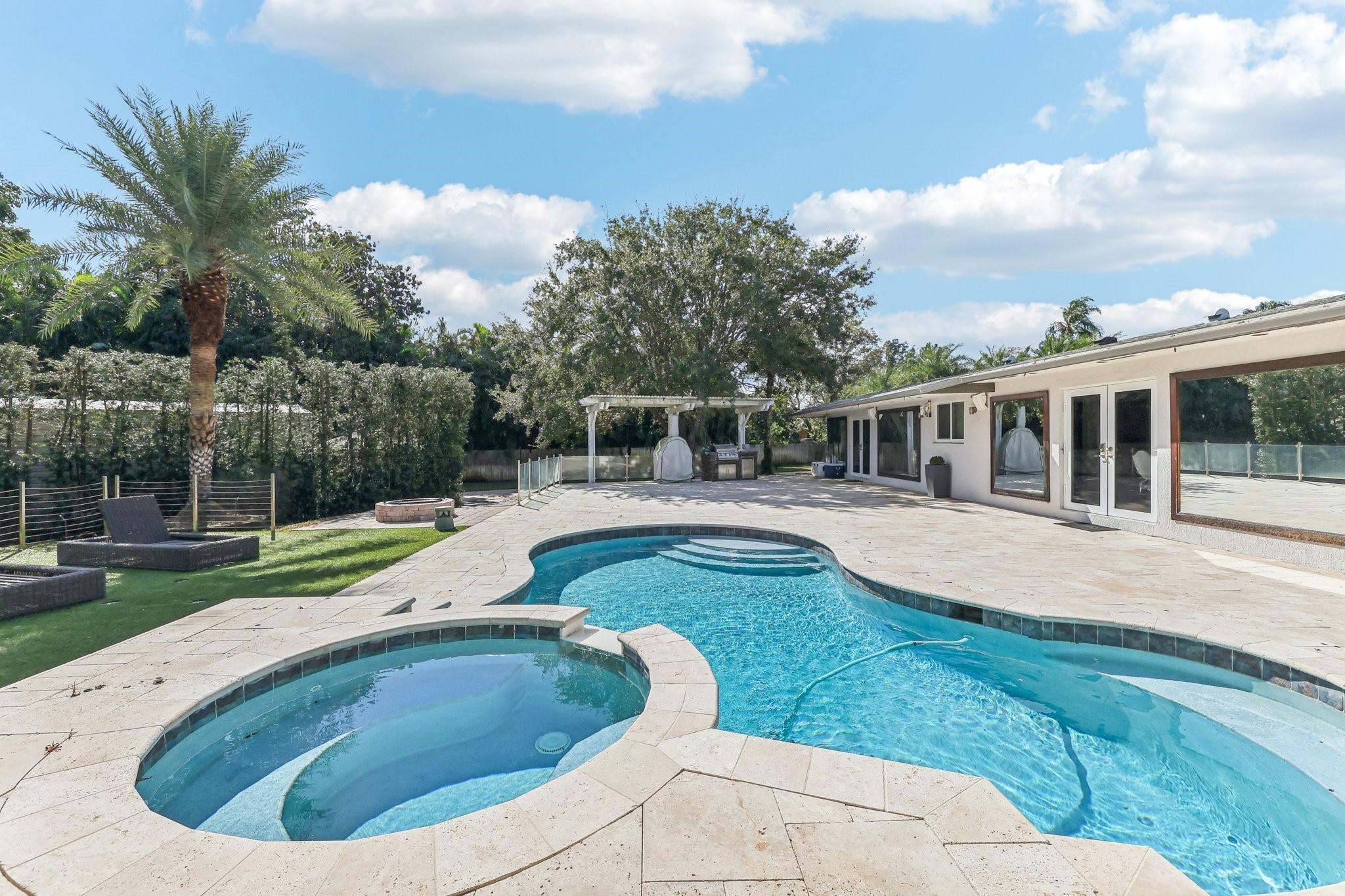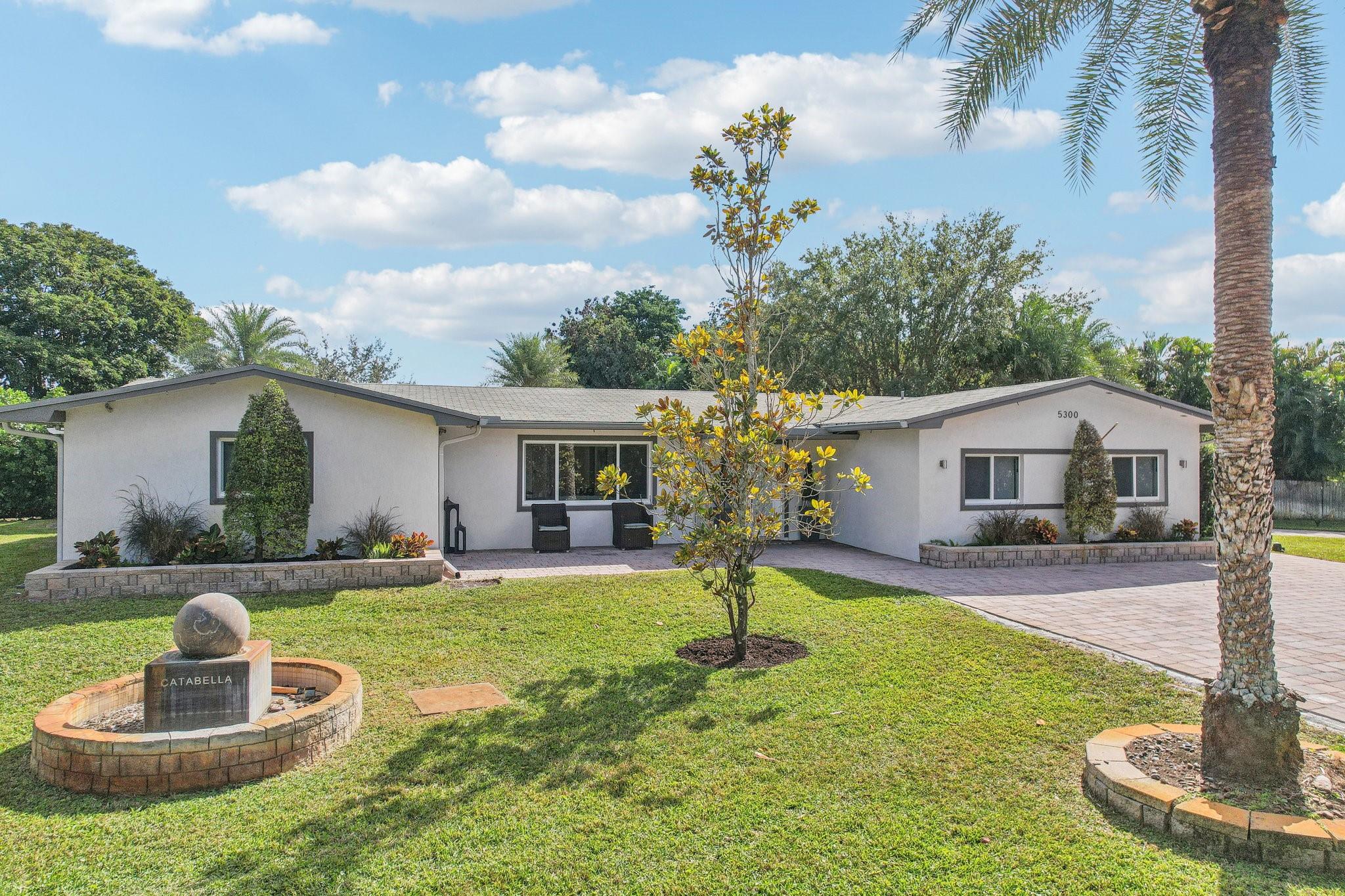 Price Adj, seller moving international! Enter through custom gates & drive up to your new home set on a 1 acre lot in beautiful SW Ranches! Remodeled 1 story home landscaped and fenced for max privacy. Interior has tastefully updated kitchen w/ wood cabinets, porcelain tile throughout, contemporary fixtures and motorized blinds. Children’s wing has 2 bedrooms + bonus room. Add features are laundry room, security system, exterior soffit lighting and impact windows and doors. Outdoor boasts a great backyard for entertaining w/ heated saltwater pool and spa, outdoor kitchen, firepit & spacious travertine patio along w/ enormous paved driveway that goes around the property. Property has a separate structure which is a 1/1 guest house with private entrance. Come enjoy the SW Ranches life!