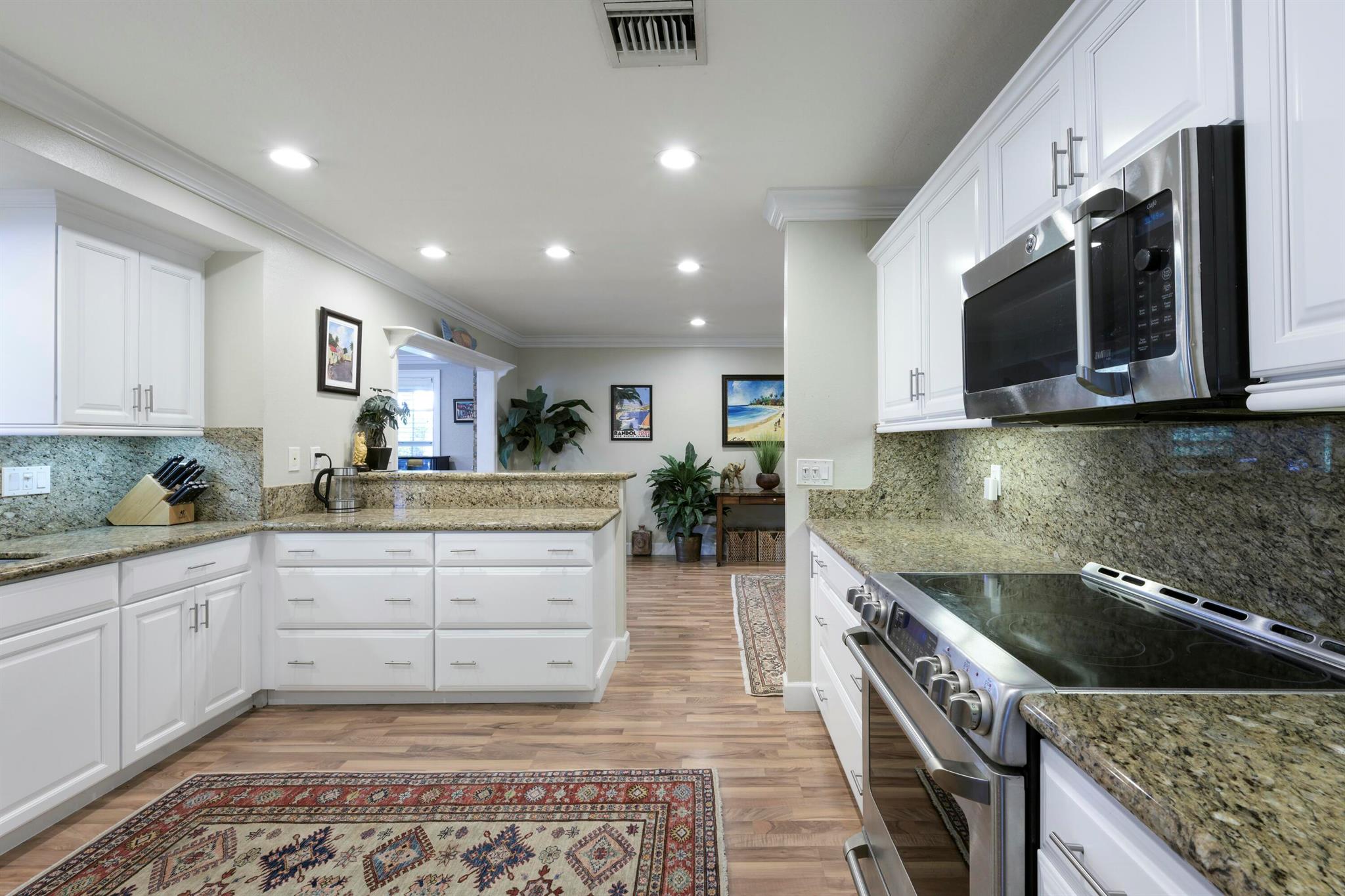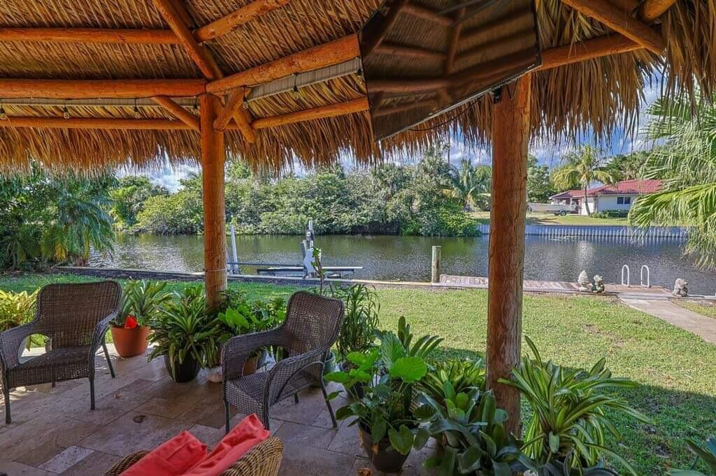Remodeled Lake Clarke Waterfront Home with Tiki, Dock and Boat Lift. Spend your days relaxing under the Tiki, then hop on your boat to do some bass fishing, water skiing or just enjoy a sunset cruise. This spacious 3 bedroom, 2 bath home has been beautifully remodeled with new roof, gutters, stucco, paint, landscaping and an impact front door, which completes the windstorm protection. Travertine patios and walkways surround the home and the Tiki is fully wired with TV, lights and sound, creating a sublime, tropical outdoor living experience. Upon entering the home, you’re greeted with a view, through to the water, as you take in the perfect layout and interior features. The open kitchen boasts stainless steel appliances, granite