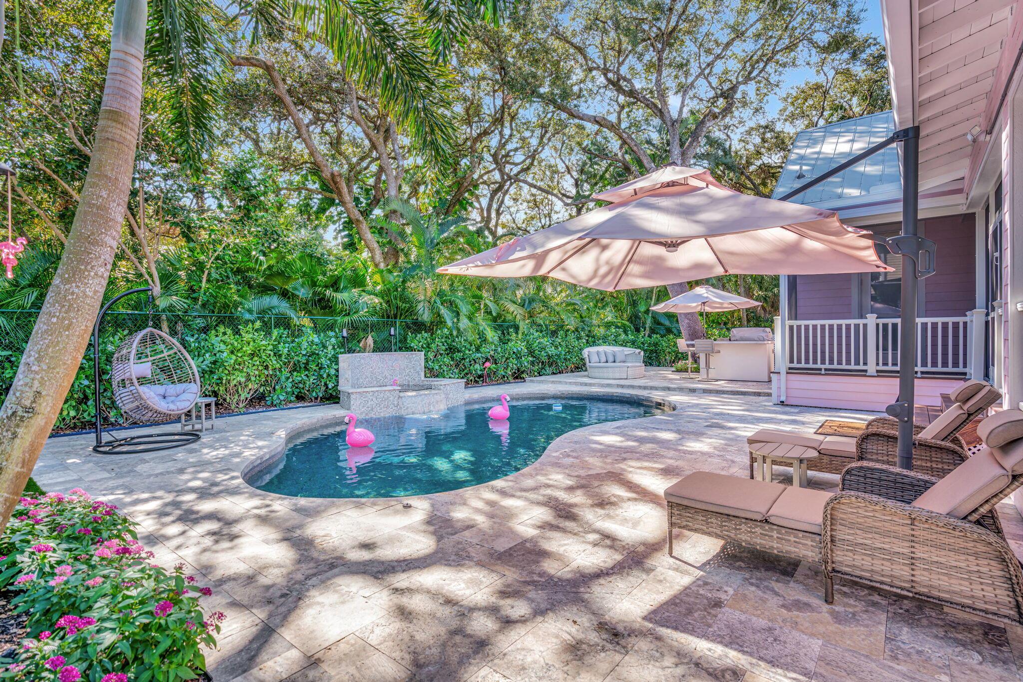 ”Natures Hideaway” is located just south of P.G.A . This gated private serene neighborhood consists of only 17 homes. 2590 Natures Way offers a beautifully updated home with a bonus private guest or in-law suite. From the welcoming front porch to the double door entry, you will not be disappointed. There are so many extras that pictures cannot capture. There is a retractable projection screen for that special movie night in the main living area. Along with a see-through fireplace for your relaxing time. Step outside for a dip in the pool, or perhaps a nice cool beverage and something on the grill. This home also has a whole house generator, 1,000 gallon propane tank, and two 240V charging stations located in the garage.