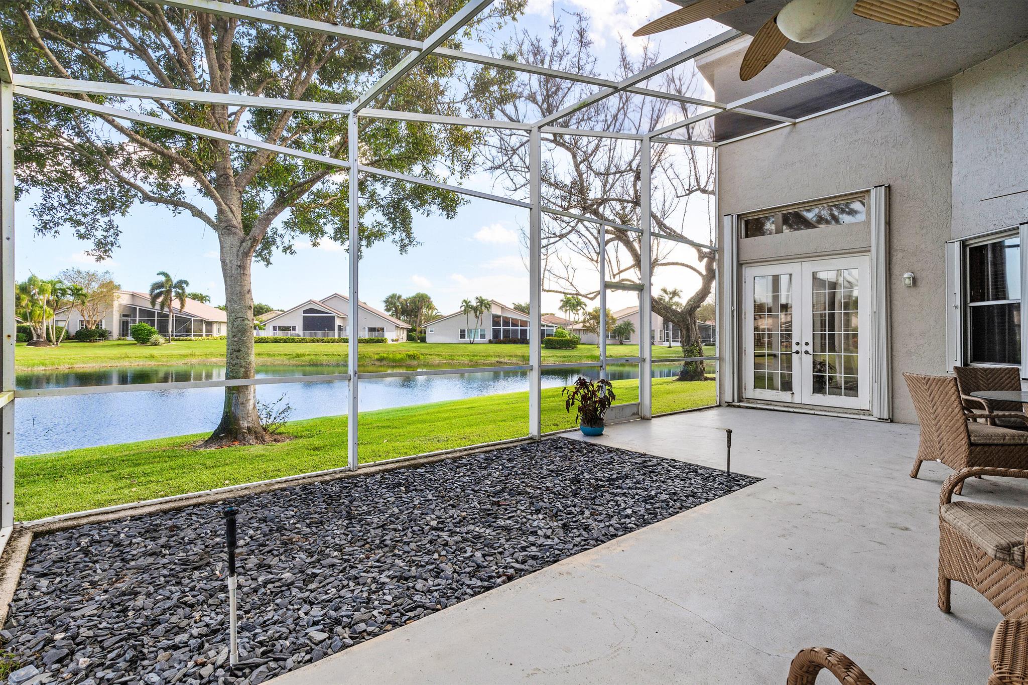 This one of a kind property located within the gated community, Lakeridge Falls of Boynton Beach is ready for its proud new owner! One of the largest lots (.22 acres) within the entire development, this lakefront 3 bedroom 2 bath single-family home provides over 2,300 living sqft, a split floor plan, screened in patio, 2 car garage, and is being sold for the FIRST time! Sure to give it’s new owner’s piece of mind for years to come, the property comes fully equipped with accordion shutters throughout, a buried propane tank, that powers the gas stove, water heater & dryer, and a ***BRAND NEW CONCRETE ROOF (to be installed end of 2024/early 2025). Situated at the end of a cul-de-sac, the property is tucked away within the meticulously maintained community, adding even more to the..