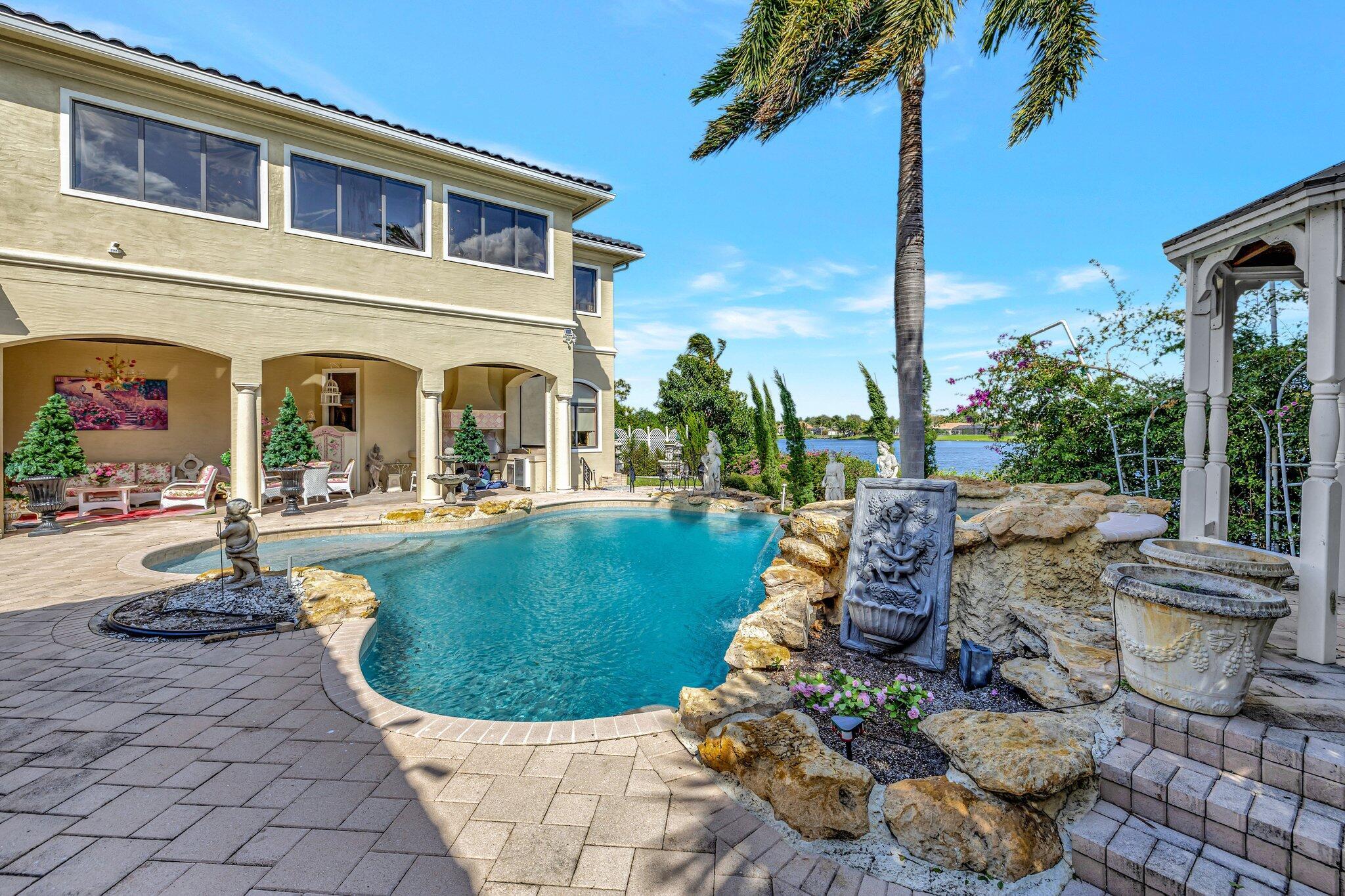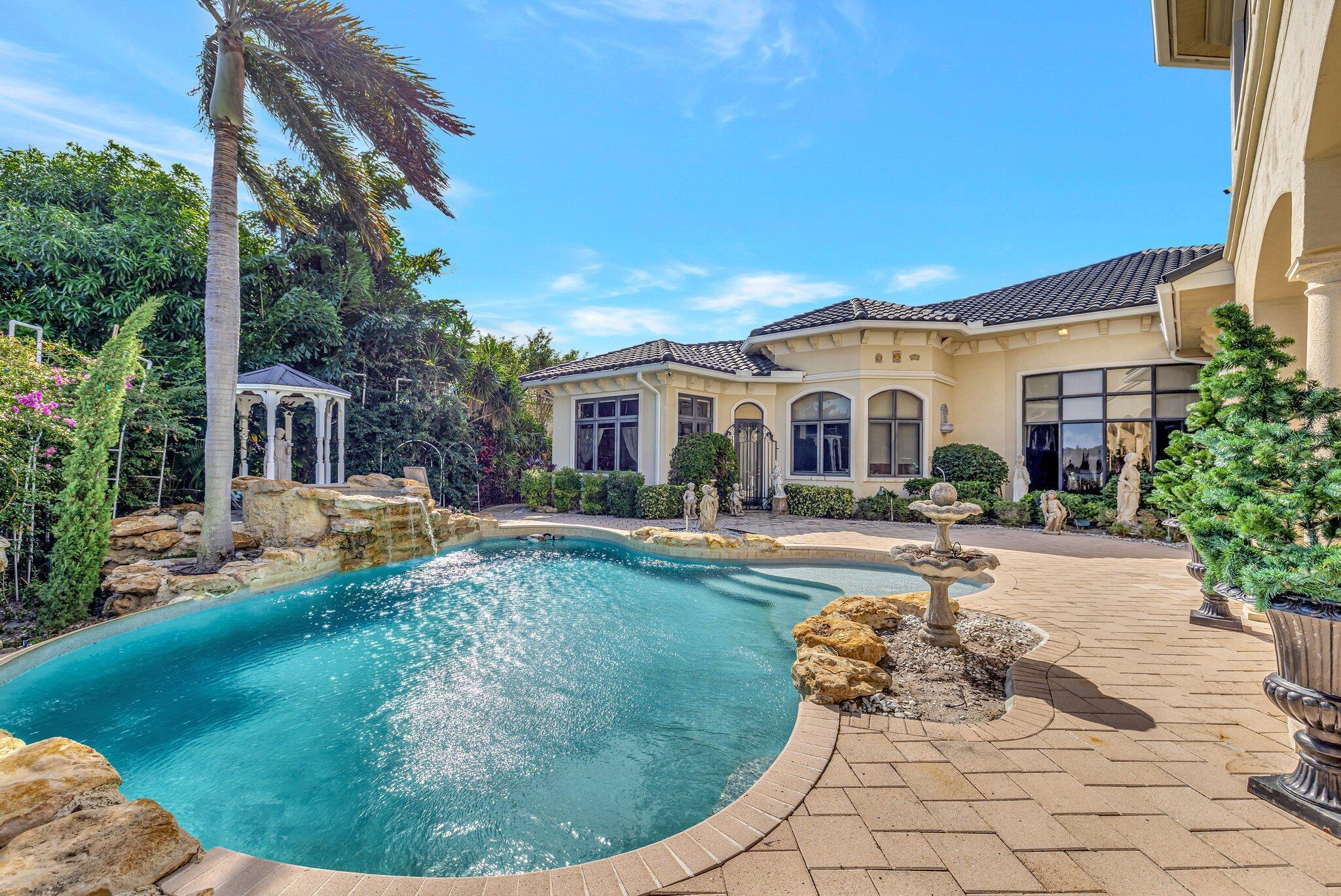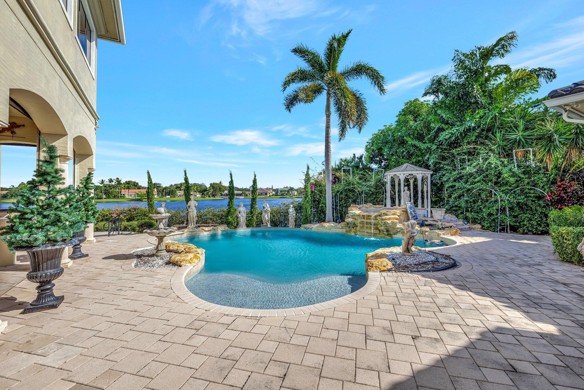 Welcome to your Mediterranean-inspired dream home in the prestigious Bocaire Country Club! This luxurious custom estate spans an impressive 7,799 square feet, offering 5 spacious bedrooms and 4.5 elegant bathrooms. Step inside and be captivated by soaring volume ceilings, abundant natural light, and high-end finishes throughout. The home is designed for both grand entertaining and comfortable family living, featuring a theatre room, new elevator, and impact windows for peace of mind. Enjoy serene lake views from your private pool, ideal for sun-soaked days and evening gatherings. The Bocaire lifestyle includes access to a newly renovated clubhouse, where you’ll find top-tier amenities and social opportunities. This estate is a masterpiece of comfort and style, perfectly
