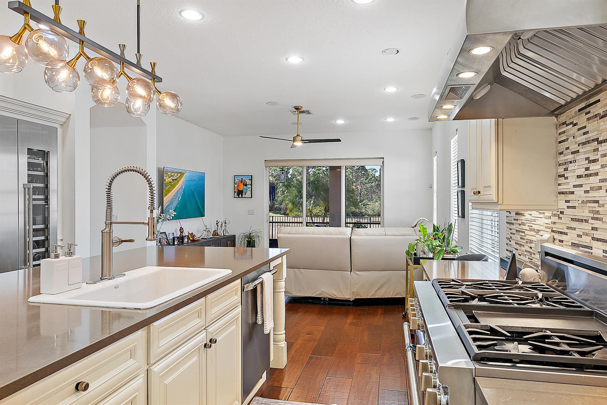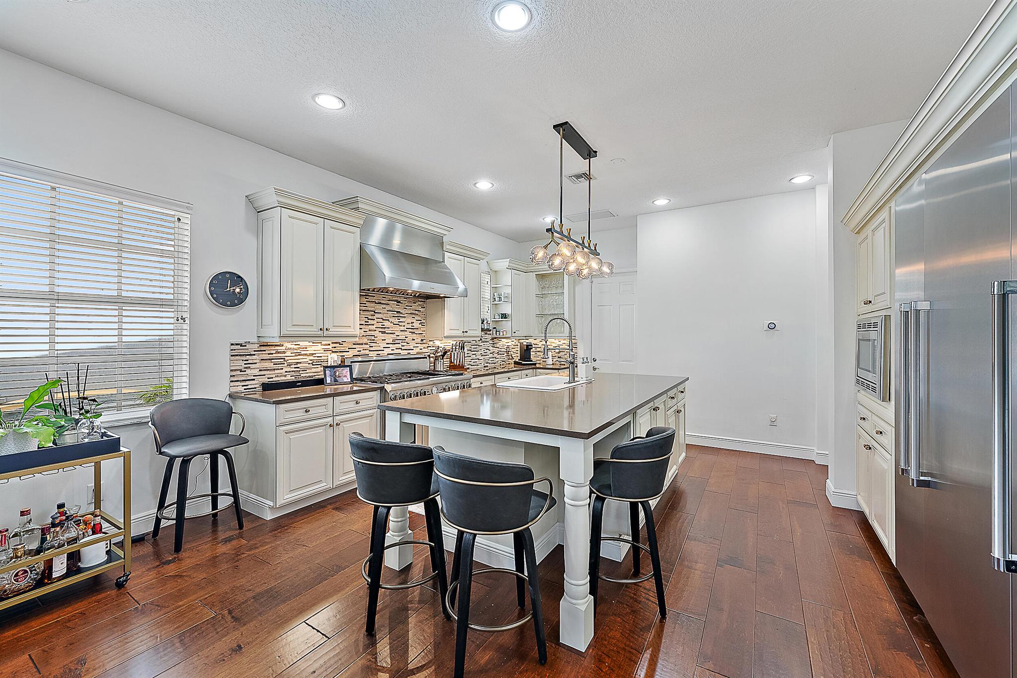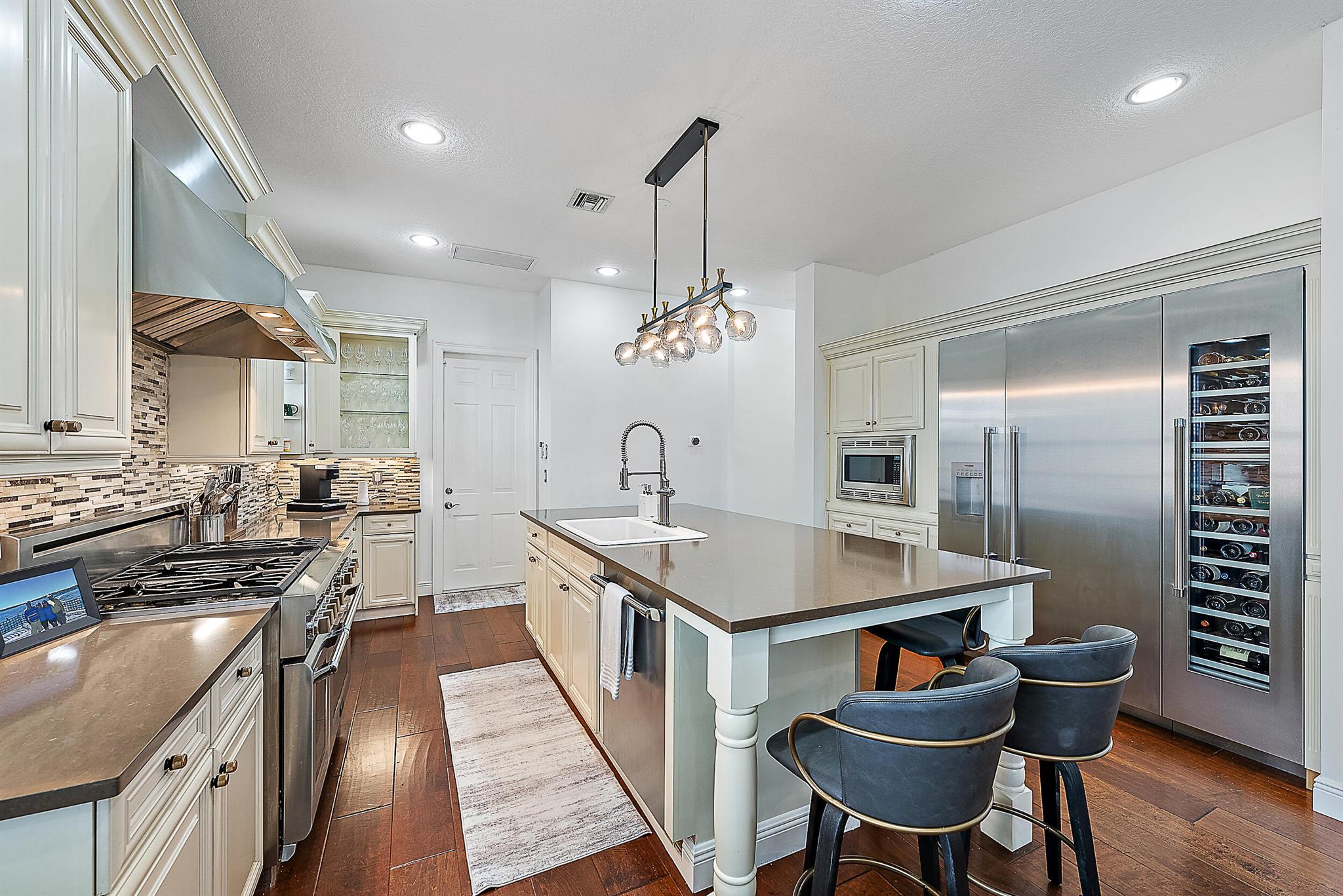 Welcome to the sought-after Audubon Signature Sanctuary community of Evergrene in Palm Beach Gardens! This beautifully updated residence boasts 3 spacious bedrooms, 3 full baths, & an inviting layout perfect for both relaxation & entertainment. HURRICANE IMPACT GLASS scheduled to be installed asap. Enter through the foyer to be greeted by soaring cathedral ceilings & an abundance of natural light, highlighting the home’s two distinct living areas & elegant formal dining room. The main level features a versatile den or home office, ideal for remote work or a cozy retreat. The chef’s kitchen is a true masterpiece, complete with Thermador gas cooktop & refrigerator, a 50+ bottle wine refrigerator & spacious island with ample counter space. This kitchen is sure to inspire culinary creativity.