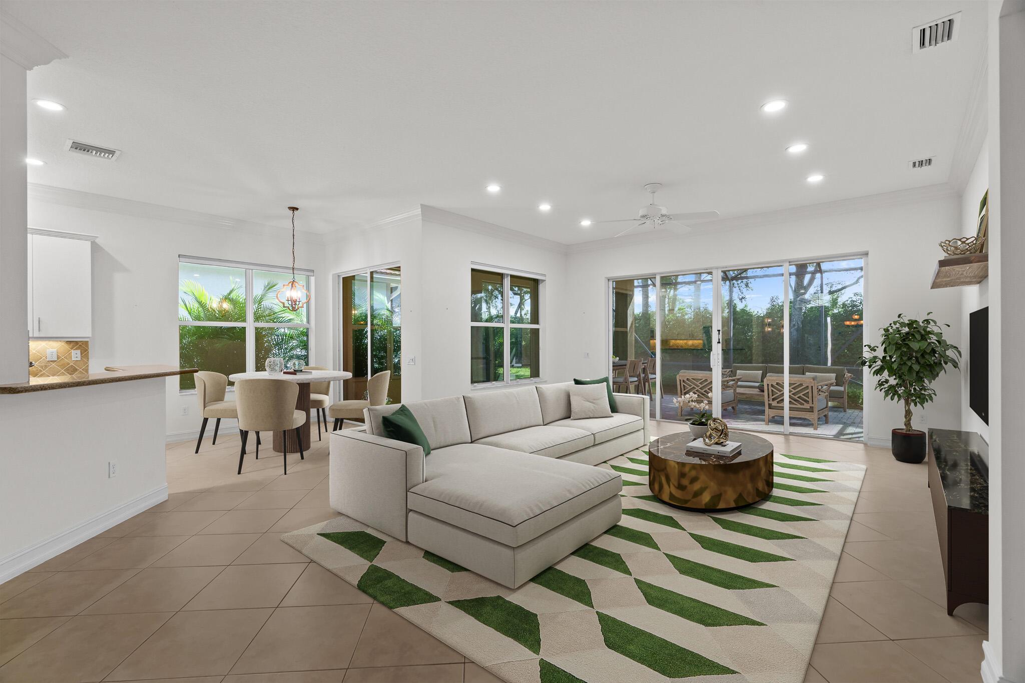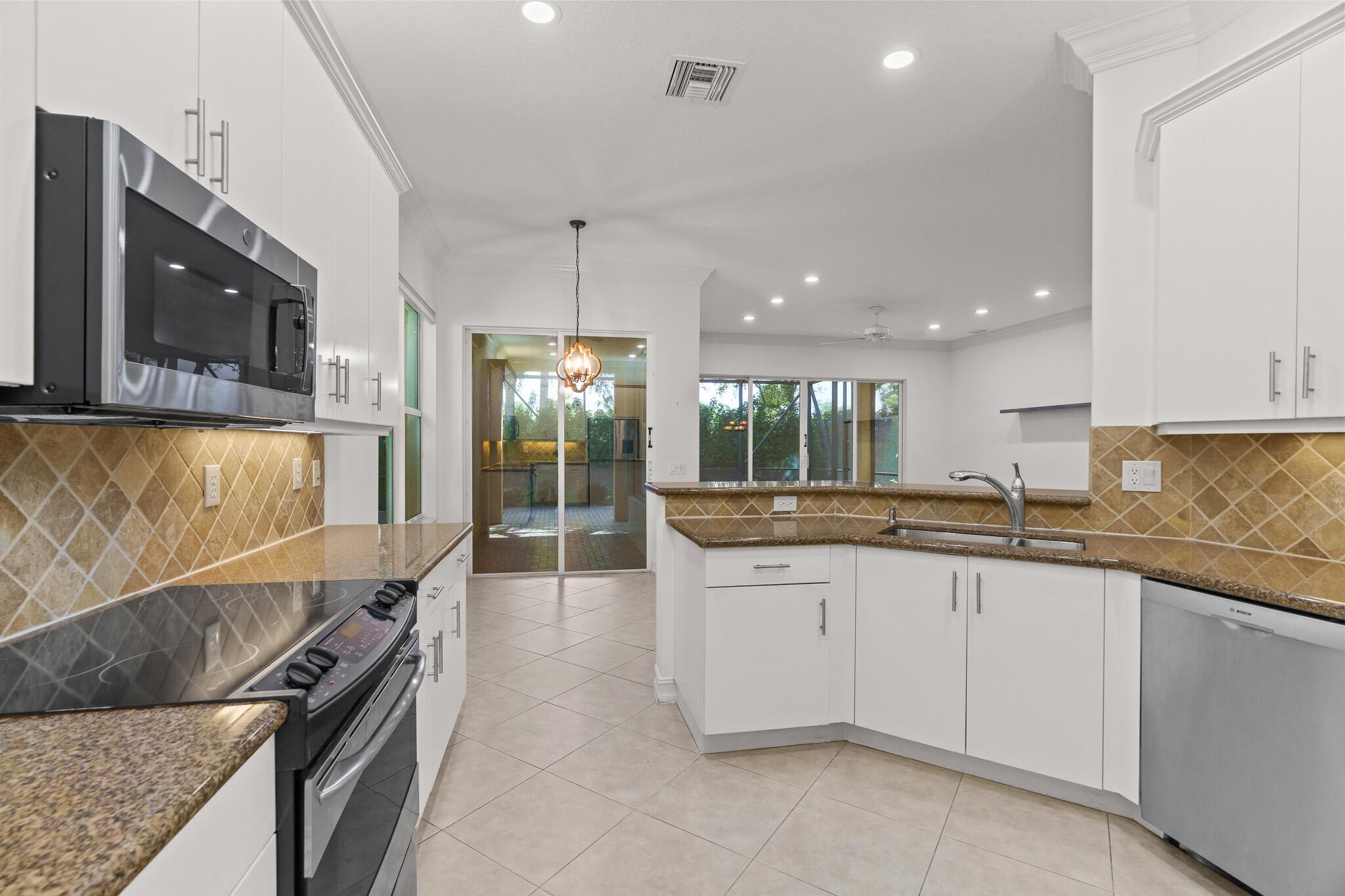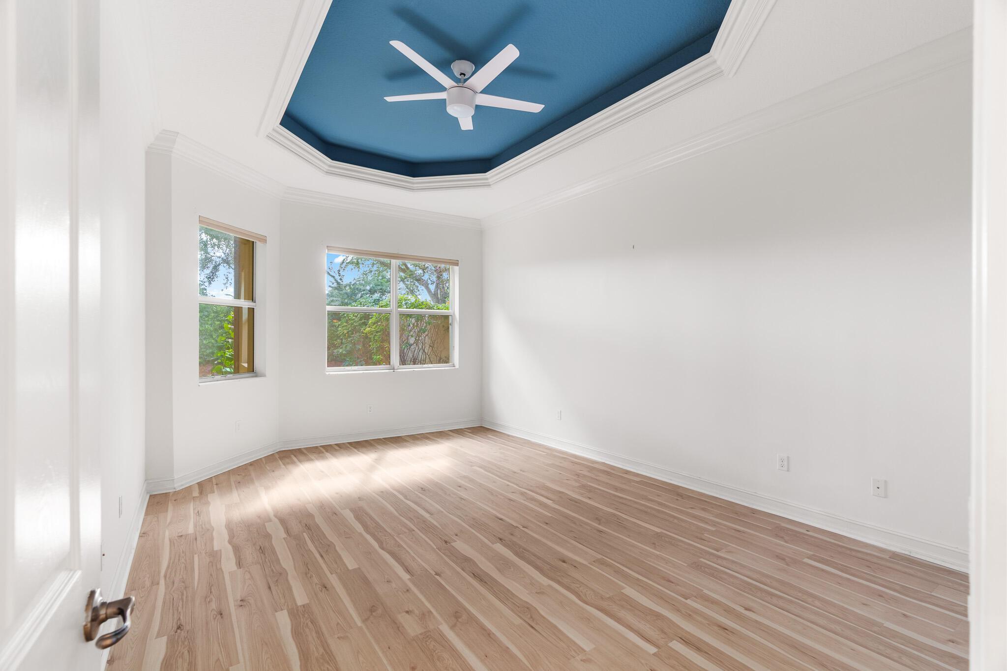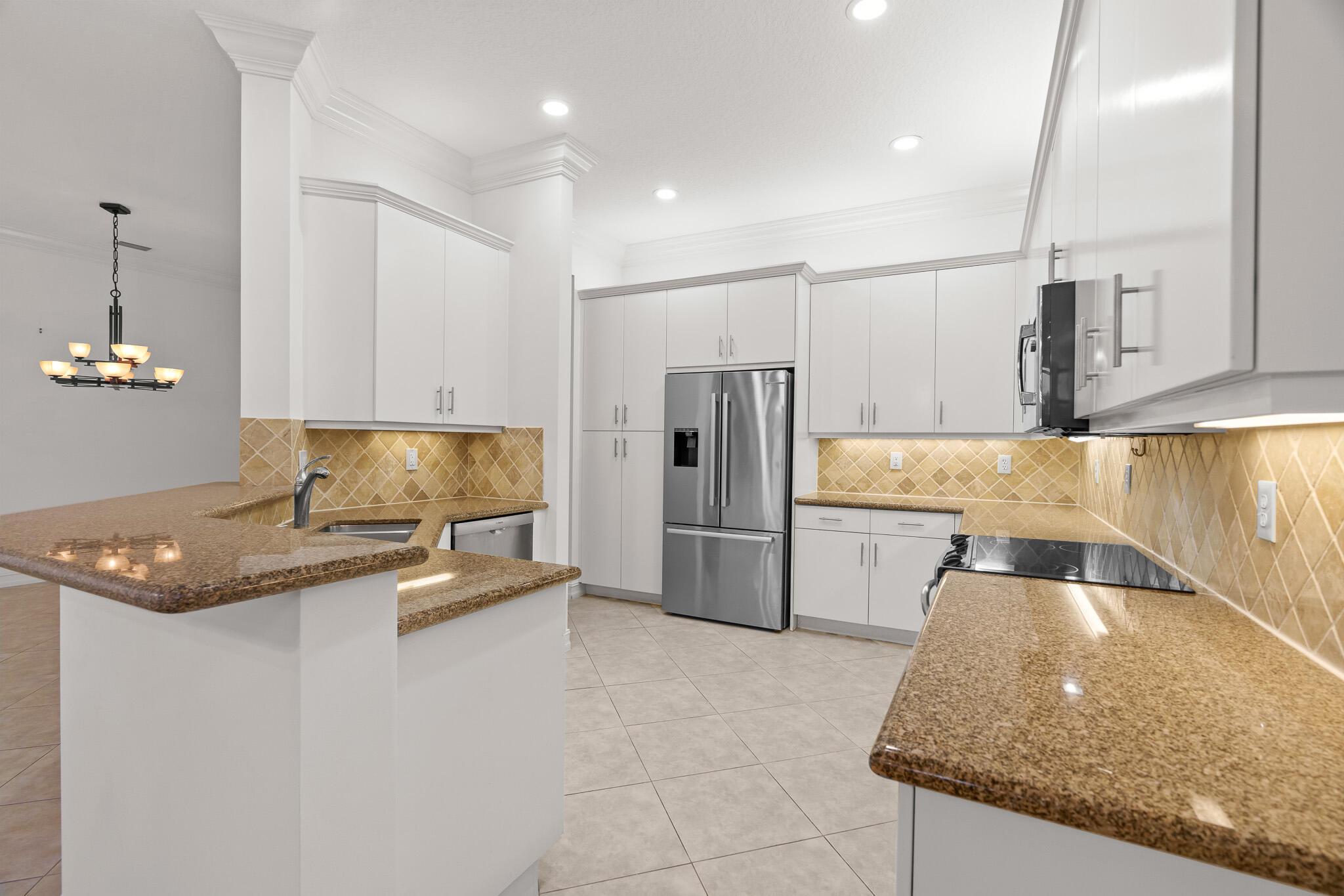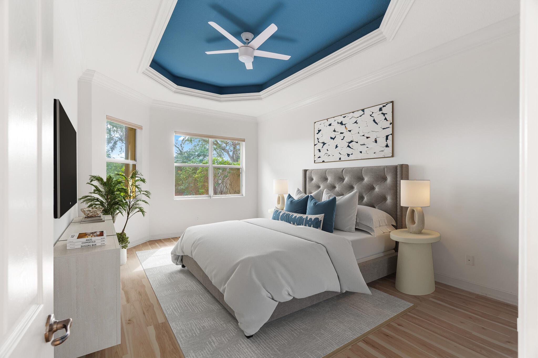 This home is move-in-ready but also priced so you can renovate to your custom liking. This desirable Atlantic Grand model in Valencia Reserve features 2 bedrooms plus a den that can easily be converted into a 3rd room. 2.5 updated bathrooms. Situated on a private and quiet garden lot. The white kitchen cabinets have custom pull-outs and updated stainless steel appliances. Both ensuite bathrooms are updated with new quartz counters and custom vanity pull-outs. Additional highlights include crown molding, custom fitted closets, recessed LED lighting, updated ceiling fans, and an extended screened-in lanai and patio. No rear neighbors and no nearby streets or highways making for serene outdoor relaxation. Conveniently located just a short walking distance to the clubhouse/amenities.
