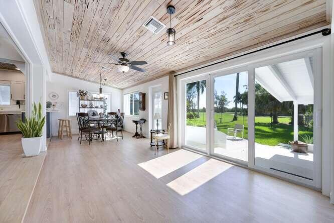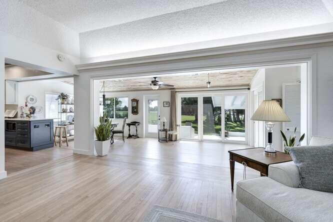 Look no further for your move-in-ready home with golf course view! Space, natural light, and a NEW kitchen await you. Perfect home to entertain – in and outdoors with a double lot + golf views (don’t worry about rogue balls, you’re not on the fairway!). With updates already done, just bring your things (furniture negotiable). Golfers: you can head out the back gate and chip + putt. Special features: new shower door ’24; new kitchen ’22; Kynar-metal roof ’22; impact windows + doors ’22; tankless water heater ’22; new concrete driveway + paving; fully-fenced yard; concreate boat/RV pad w/electric gate; updated electrical; wired for generator; laundry room under air; smart garage door opener w/camera; owned security system. Too many upgrades to list. Schedule your showing today!