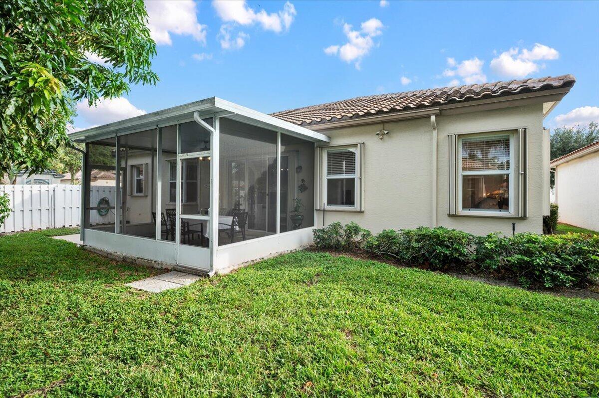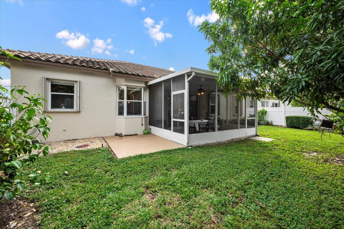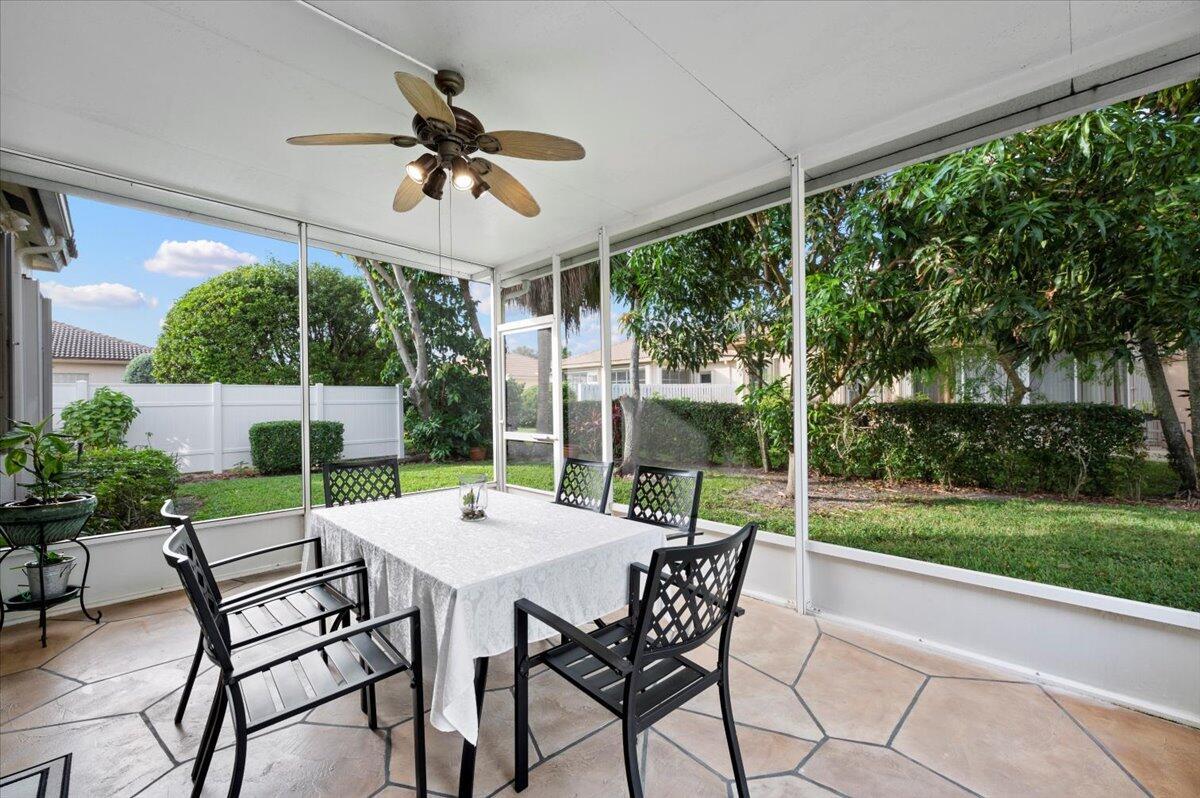 Charming & meticulously maintained 3 bedrooms, 2 bath, CBS home located in a desirable, gated 55+ community. NEW ROOF (2021), New HVAC system (2017), New water heater (2019) New 2023 Full Bath remodeled. Features open floor plan, 10ft & tray ceilings along with elegant arched entryways. The spacious kitchen boasts granite countertops, & the Owner’s Suite offers two closets along w/a bath featuring a soaking tub, separate shower & dual sink vanity. Enjoy a Family Room with sliders that open to a covered, screened porch and a nice yard with fruit trees, custom designer touches add charm throughout. This exceptional community has LOW HOA fees and offers a range of amenities: pool, tennis and pickleball courts, clubhouse, fitness room, bocce, shuffleboard, billiards, and sidewalks.