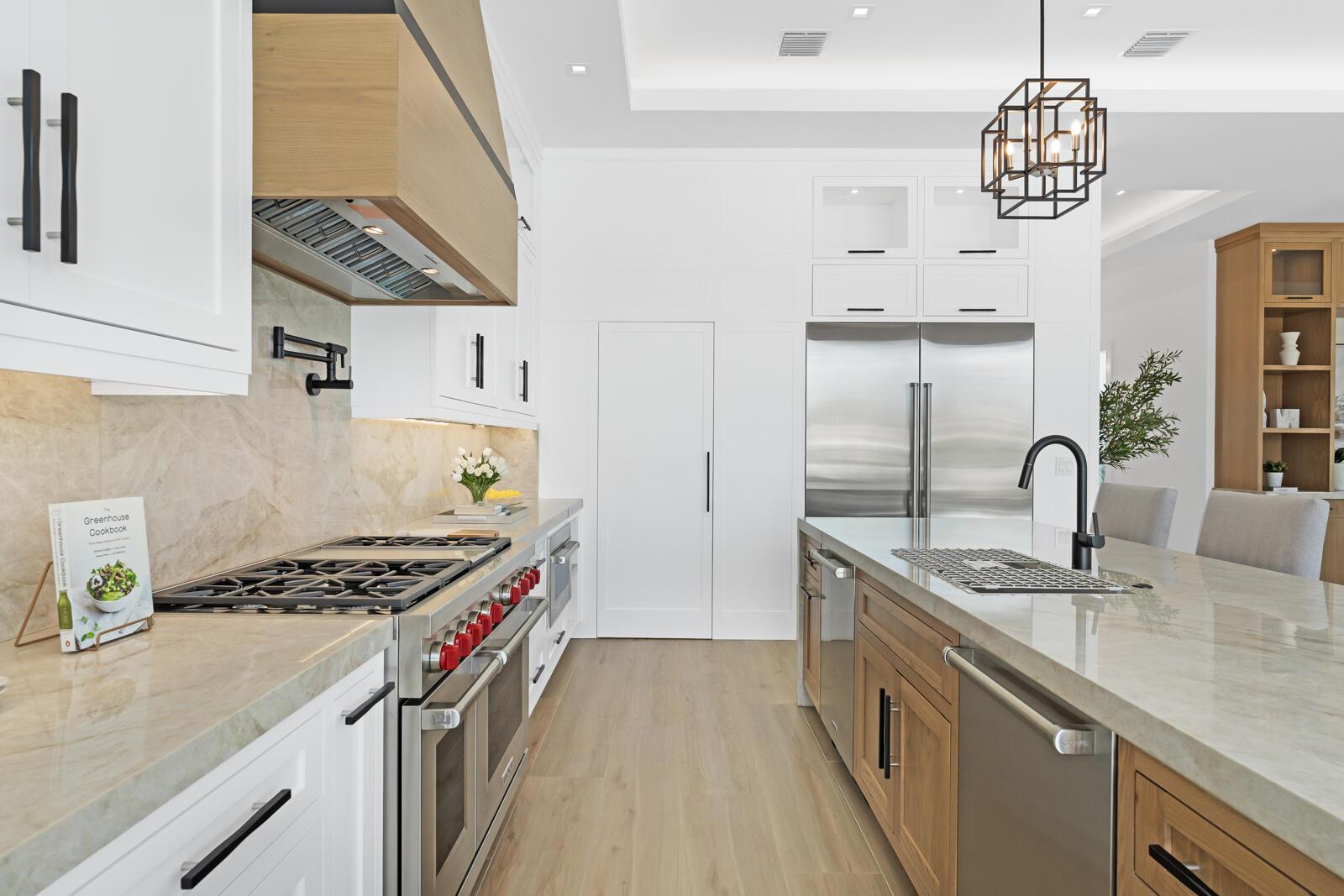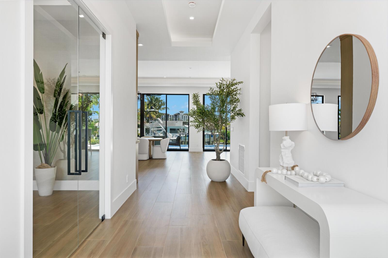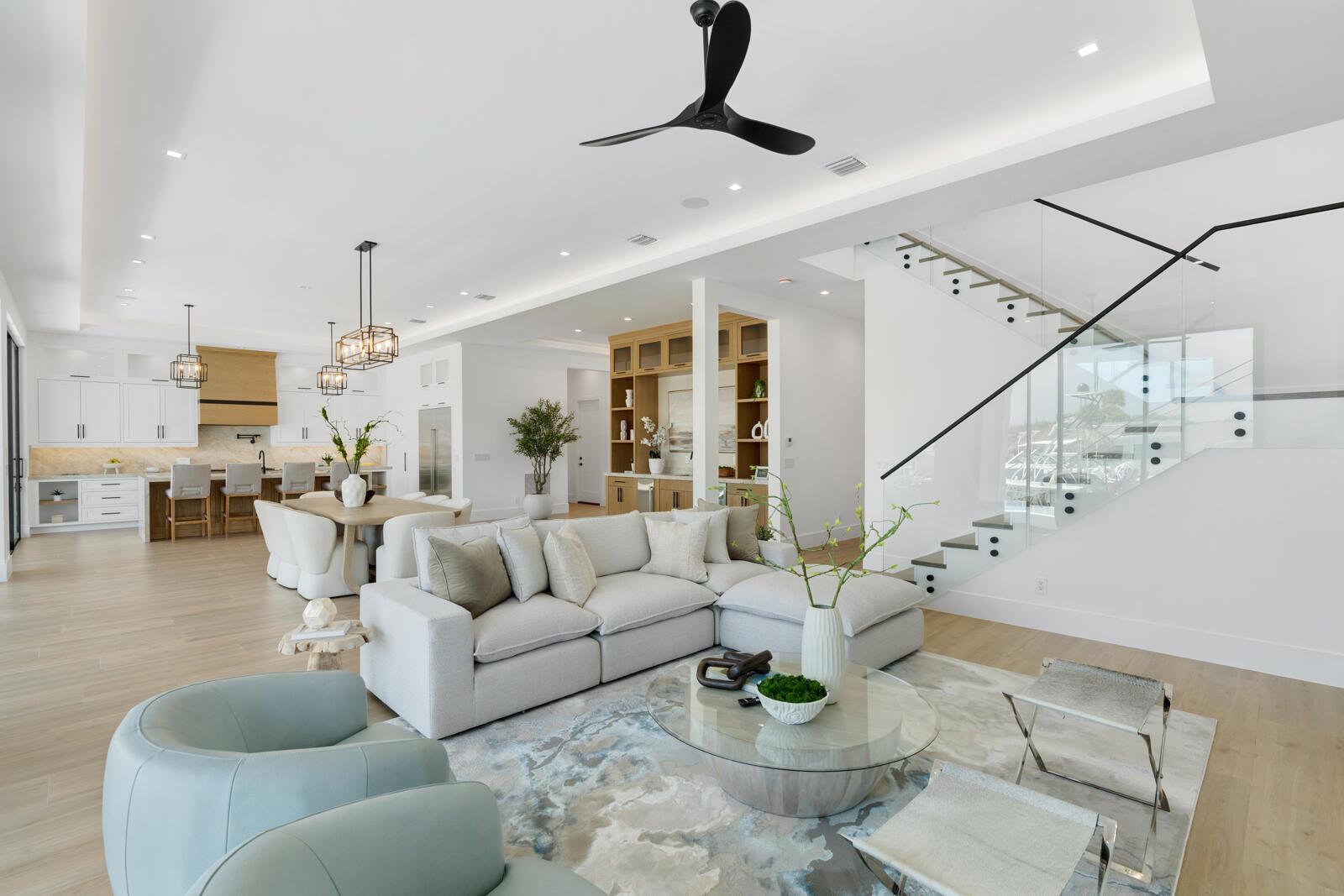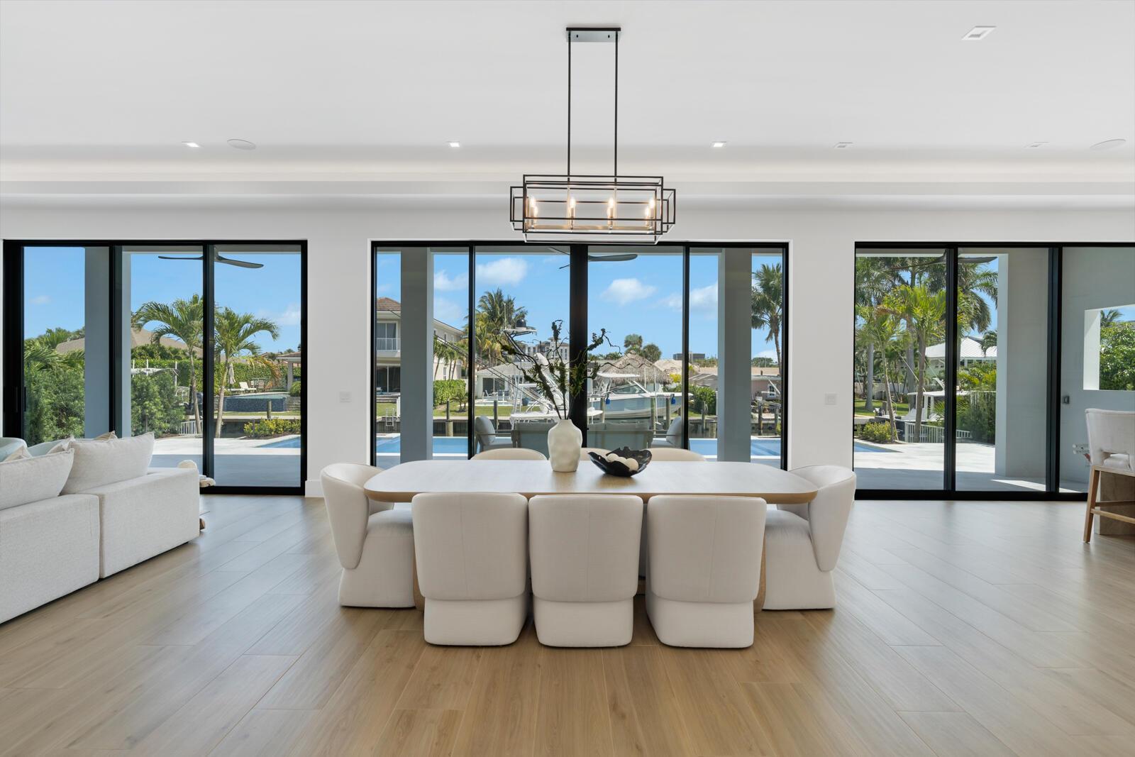 Waterfront New Construction! 5BR, plus office, and a Bonus Room that could function as a Game/Media Room or Gym, 4.1 BA, 3.5CG CBS home built with the finest and most Luxurious finishes. 75′ of water frontage on a deep wide water canal with a brand new seawall and 65′ composite dock. Ocean access with no fixed bridges and less than 150 yards to the main Intracoastal. Abundant living space including great room, family room, and large bonus room upstairs. Heated Saltwater Infinity pool/spa, marble paver decking with 2 gas fire bowls. A gourmet kitchen that offers a Wolf 48” 6 burner sealed Gas stainless steel cooktop with griddle and Wolf double convection oven, Best 48” chimney style hood, See Supplement..