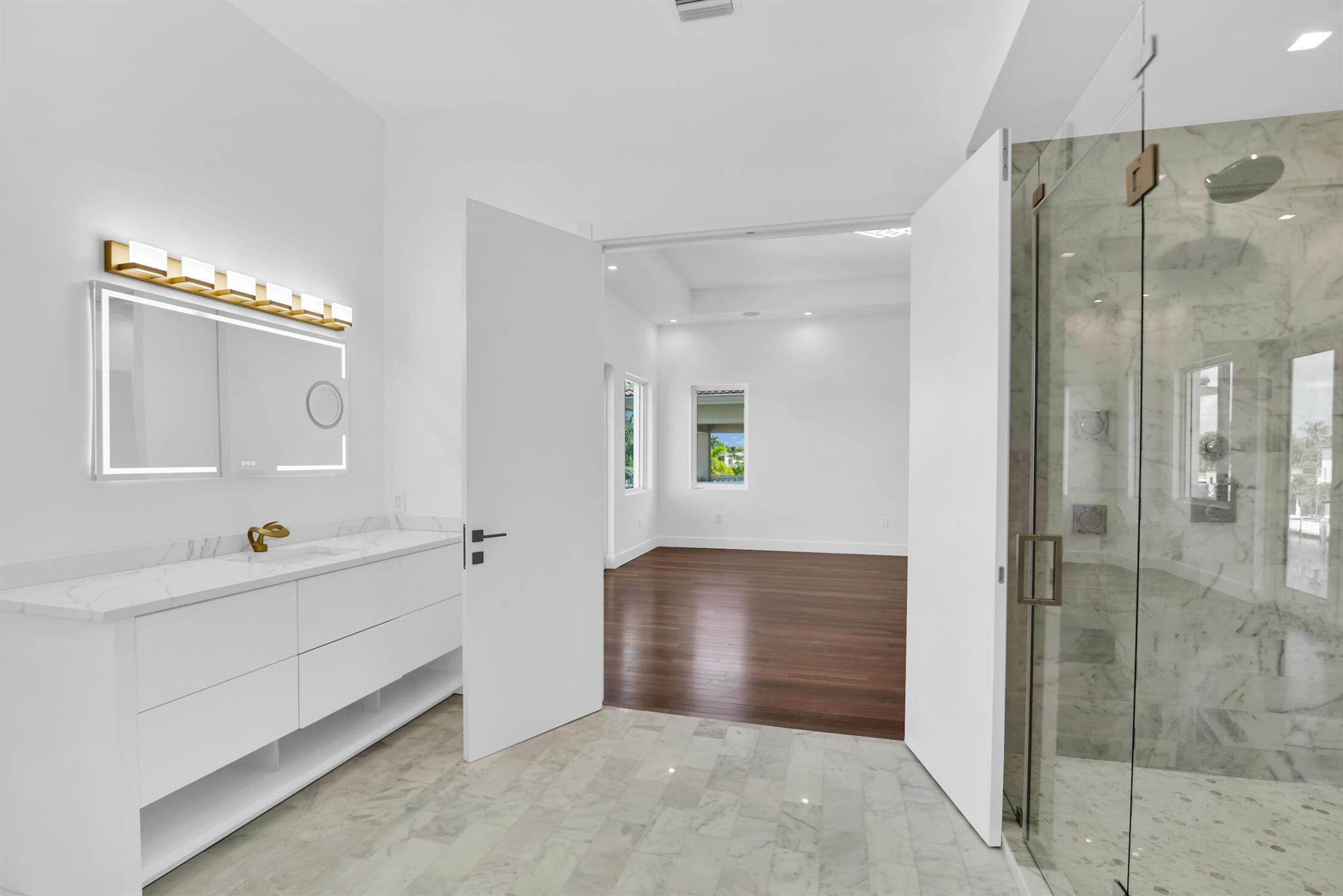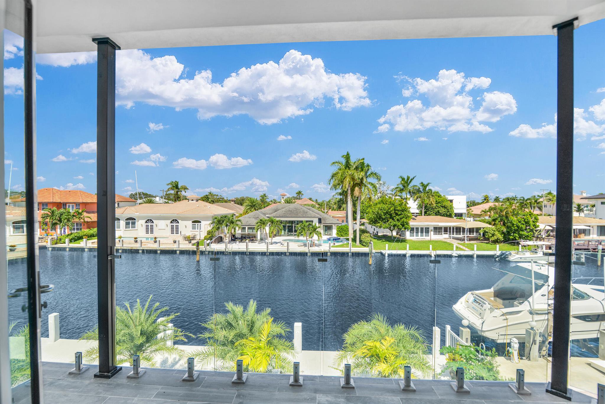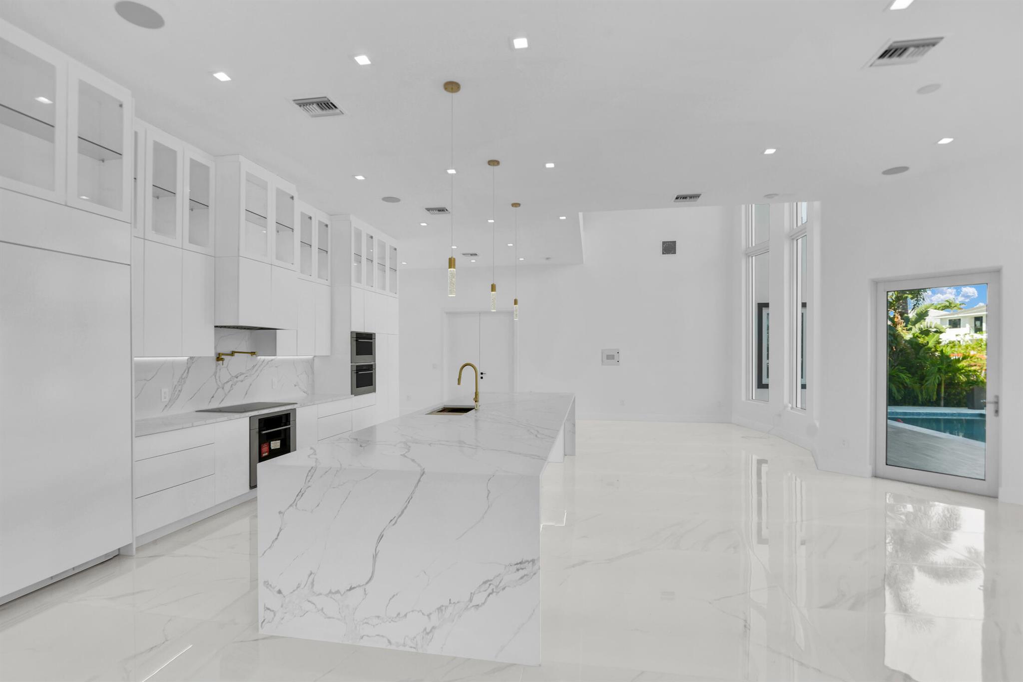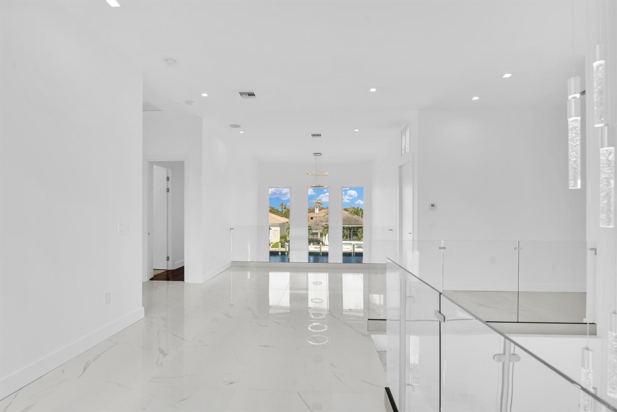 Imagine a luxurious new construction home in the sought-after coastal community of Lighthouse Point, Florida. This stunning waterfront property boasts direct access to a deep-water canal, with no fixed bridges blocking the route to the open ocean–a dream for boaters. The home showcases modern coastal architecture, characterized by clean lines, large windows, and an open-concept floor plan that maximizes natural light and water views. Upon entering, you’re greeted by high ceilings, polished marble, and a spacious living area with seamless indoor-outdoor flow. Expansive glass doors open to a covered terrace, a sparkling infinity pool, and a private dock, equipped to accommodate a large yacht.