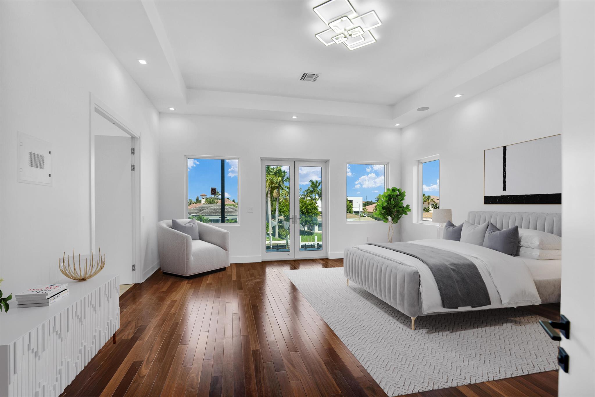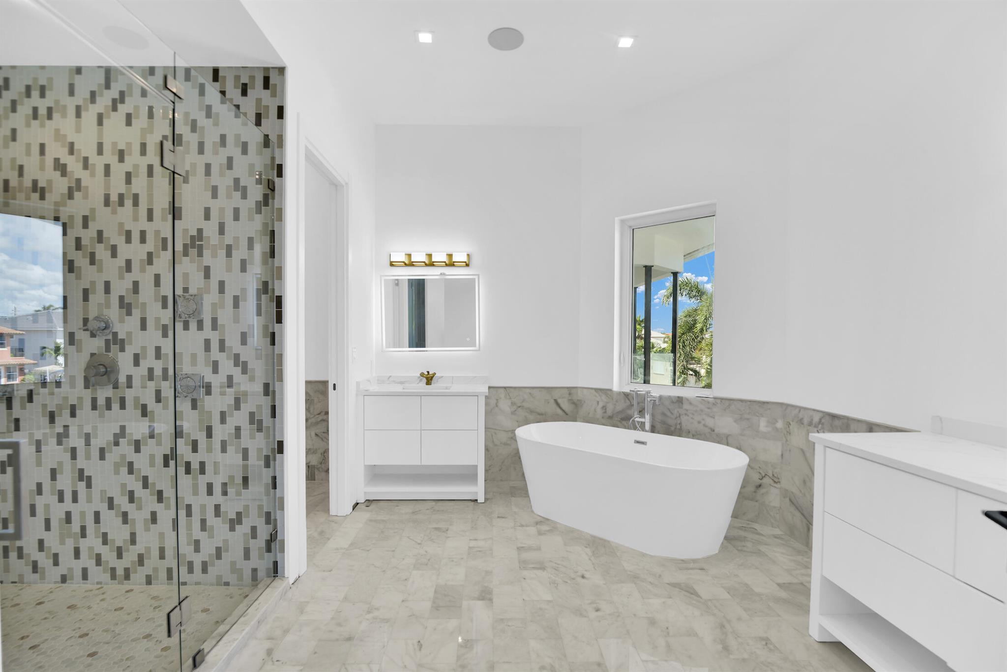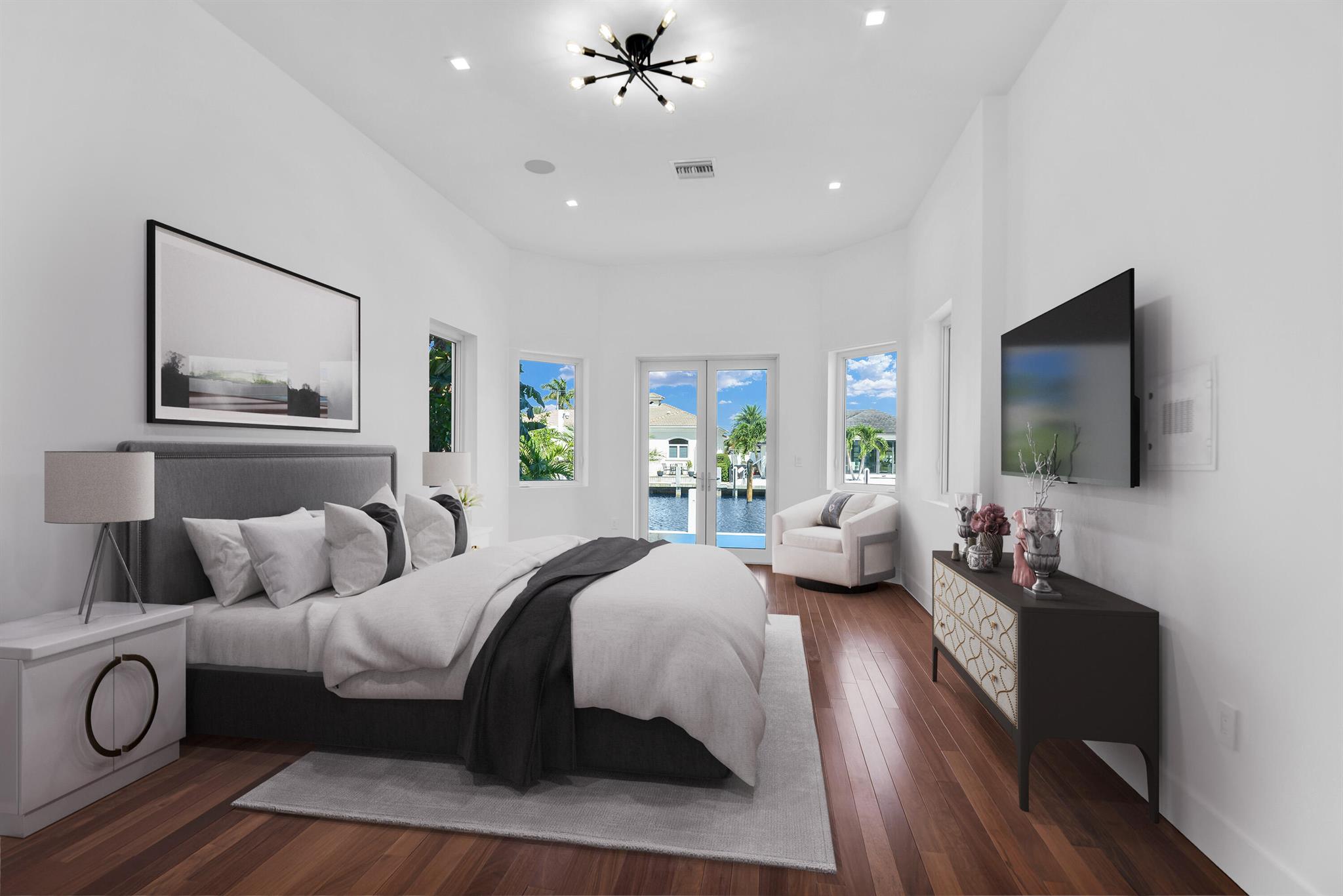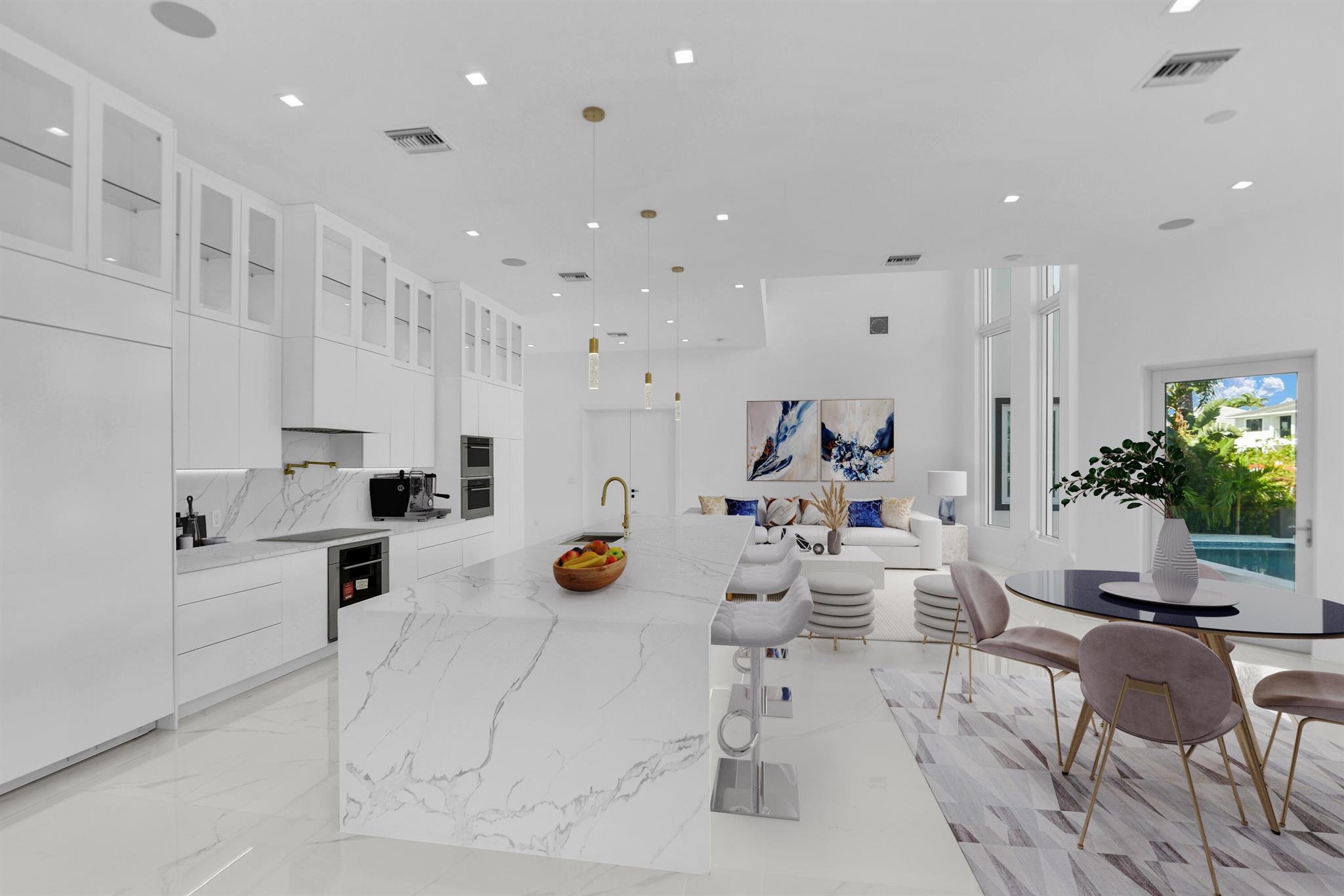 Imagine a luxurious new construction home in the sought-after coastal community of Lighthouse Point, Florida. This stunning waterfront property boasts direct access to a deep-water canal, with no fixed bridges blocking the route to the open ocean–a dream for boaters. The home showcases modern coastal architecture, characterized by clean lines, large windows, and an open-concept floor plan that maximizes natural light and water views. Upon entering, you’re greeted by high ceilings, polished marble, and a spacious living area with seamless indoor-outdoor flow. Expansive glass doors open to a covered terrace, a sparkling infinity pool, and a private dock, equipped to accommodate a large yacht.