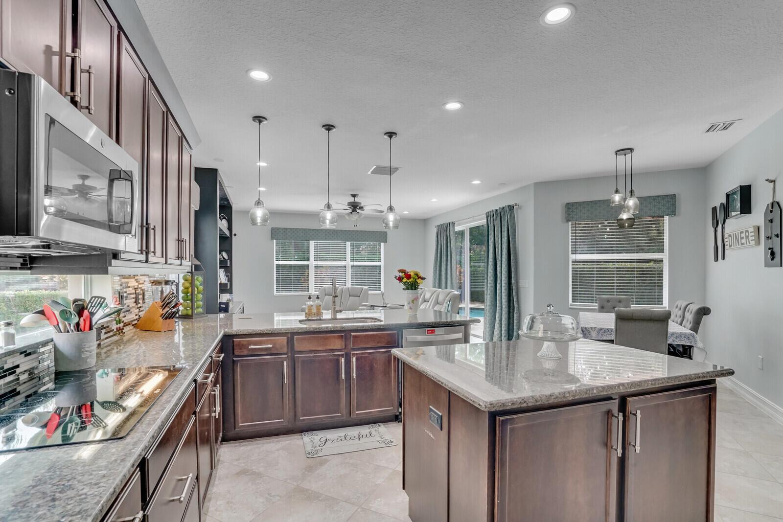 Welcome to the Caribbean, situated in a cul de sac this 6 bedroom, 5 bath, plus loft home is ready for its new owner. One full bedroom and bath on first floor. Open kitchen, breakfast and family room is perfect for entertaining. Dining room is currently a custom in-laws suite and can easily be opened up for a formal dining room. Oversized backyard completely fenced with salt water pool and travertine pool deck. A+ school district with elementary and middle within walking distance. Gated community features clubhouse, indoor and outdoor basketball, gym, game room, pool, playground and more.