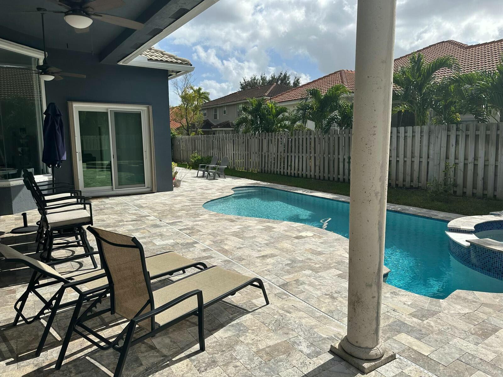 Beautiful one-story home in the exclusive gated community of Pembroke Falls. This Monterey model offers 4 bedrooms plus a den/office. Upon entry, you’ll be welcomed by a spacious living and dining area with high ceilings and abundant natural light. The home features large ensuite with his-and-hers closets and vanities. A remodeled kitchen boasts a modern design with new Hurricane impact doors. Outside, a fenced patio with a pool provides the perfect space for entertaining. HOA includes alarm, internet, basic cable tv, Beautiful Clubhouse with tennis and basktetball courts and amazing pool. Easy access to restaurants, malls, schools and exists to Sheridan and Pembroke Pines road.