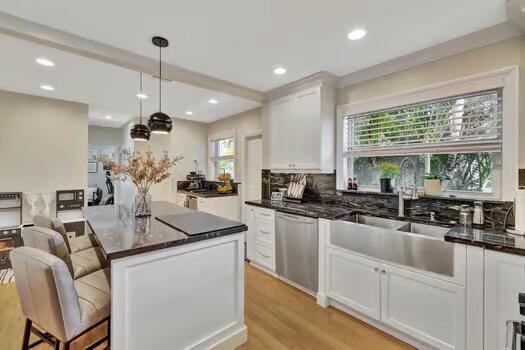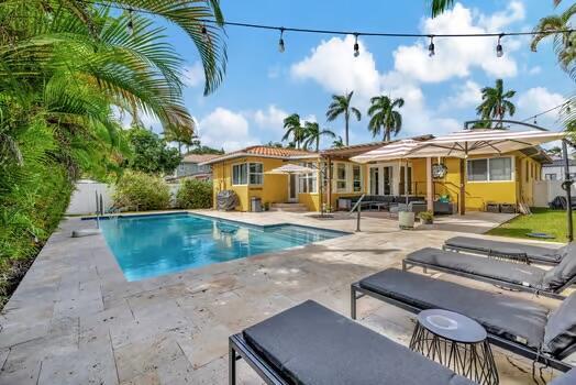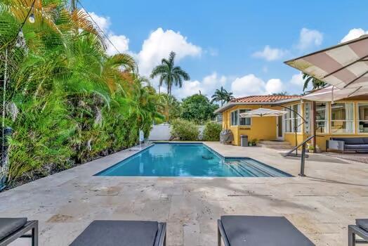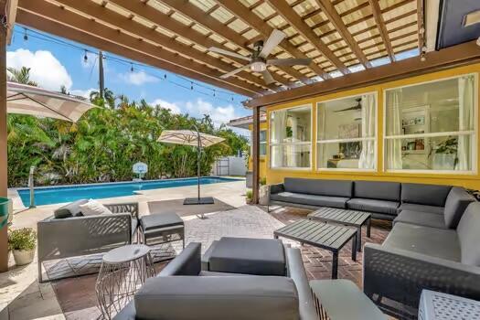 Spectacular, fully remodeled pool home in Hollywood Lakes. Sensational kitchen with large island, 6 burner gas stove, walk in pantry, abundant storage and outlets. Bathrooms are renovated. Bedrooms have custom closets with shelving and hanging areas and 3 way doors. Fully enclosed bright Florida room with mini split ac. French doors off dining room open onto the newly refinished patio with pergola and built in speakers. Inviting heated salt water pool. The ultimate ”SMART” home has a wall mount system in the garage for wires and tech boxes. Garage also has abundant storage from floor to ceiling, slat wall shelving, workbench and a/c. Newer appliances and a/c, updated electric and plumbing. Hurricane impact windows throughout. Walking distance to worship, downtown Hollywood and the beach