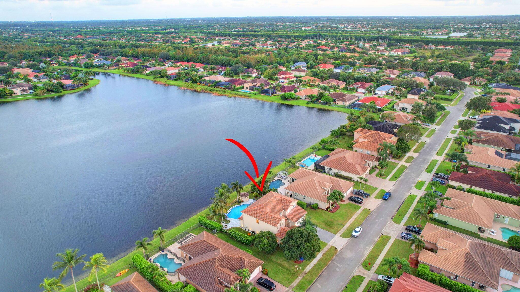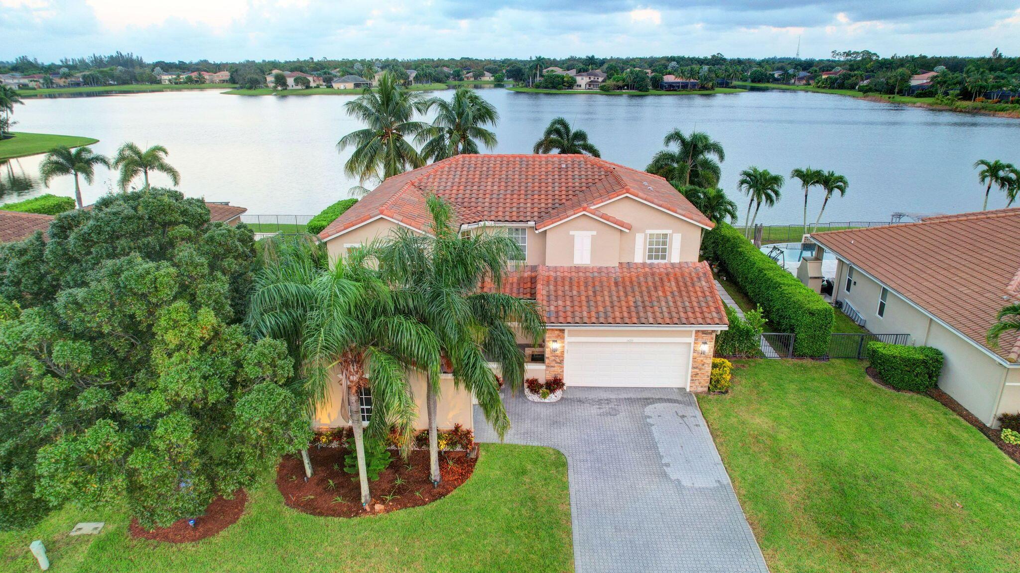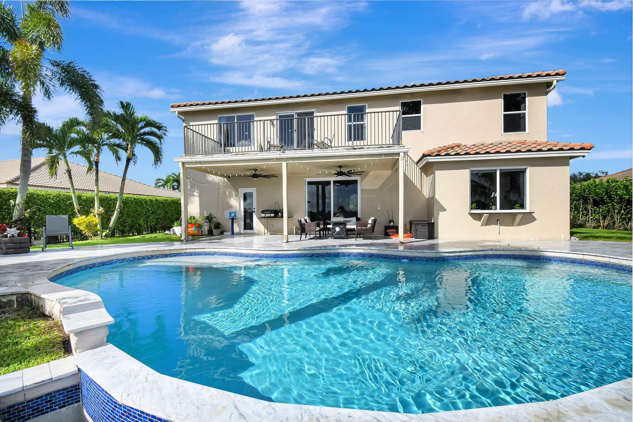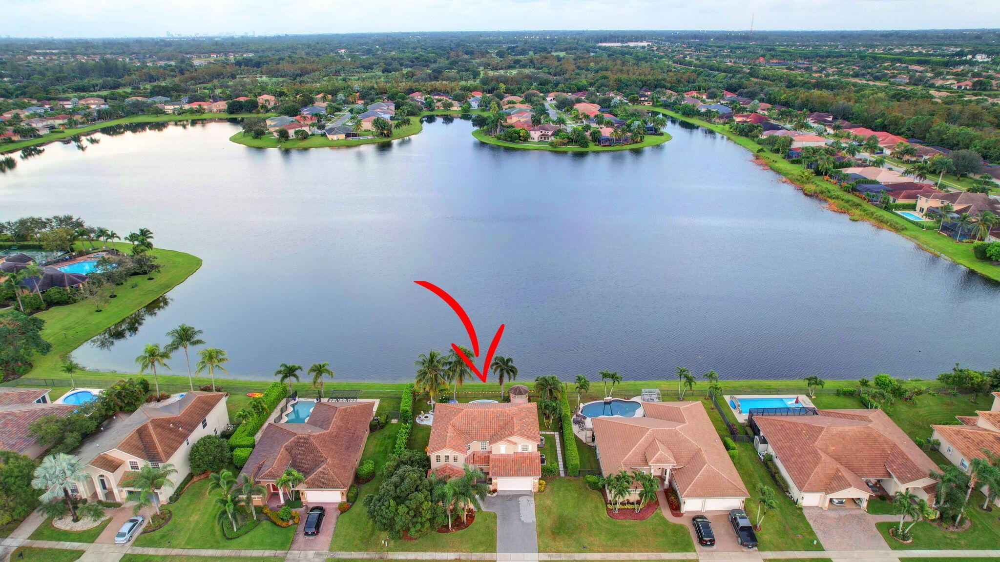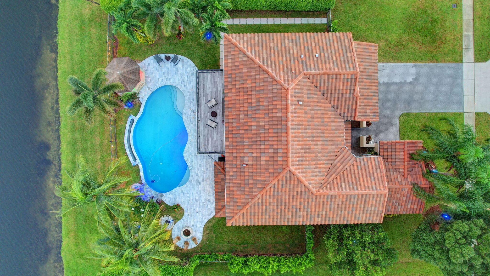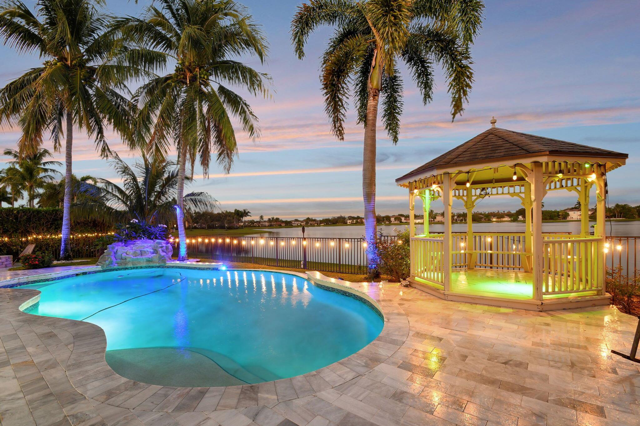 Fabulous renovated former model home (4/3/3)on an enormous lake with a heated pool and a fenced yard. Exceeding $300,000, the upgrades include marble porcelain floors throughout downstairs and wood look tile upstairs, full impact glass, 2 new a/c’s, 2 remodeled bathrooms, new pool tile, pool heater and stone waterfall. Also recently, the pool decking was transformed with marble and a firepit was added, the kitchen was totally renovated, and even the garage was resurfaced with an epoxy flake finish. The totally remodeled gourmet kitchen has new contemporary cabinets with pullouts, white quartz counter, grey marble eat-in counter, new Samsung stainless steel appliances, farmhouse sink overlooking the pool and lake, and a large walk-in pantry. A bedroom and a full cabana bath are on the