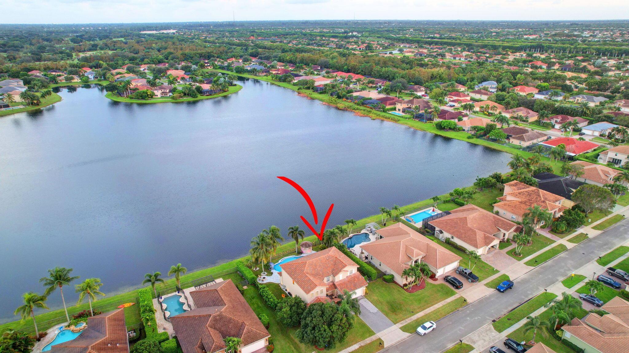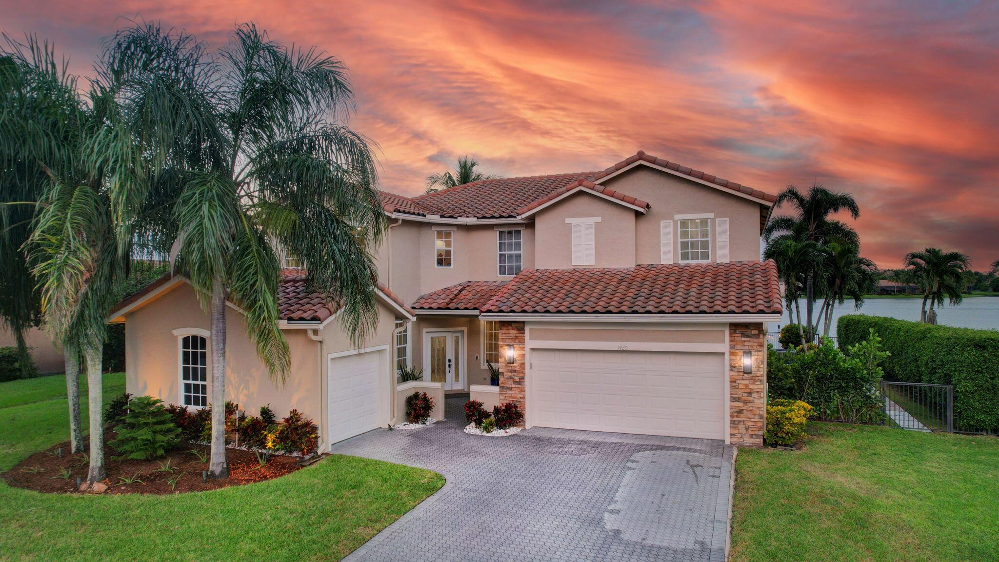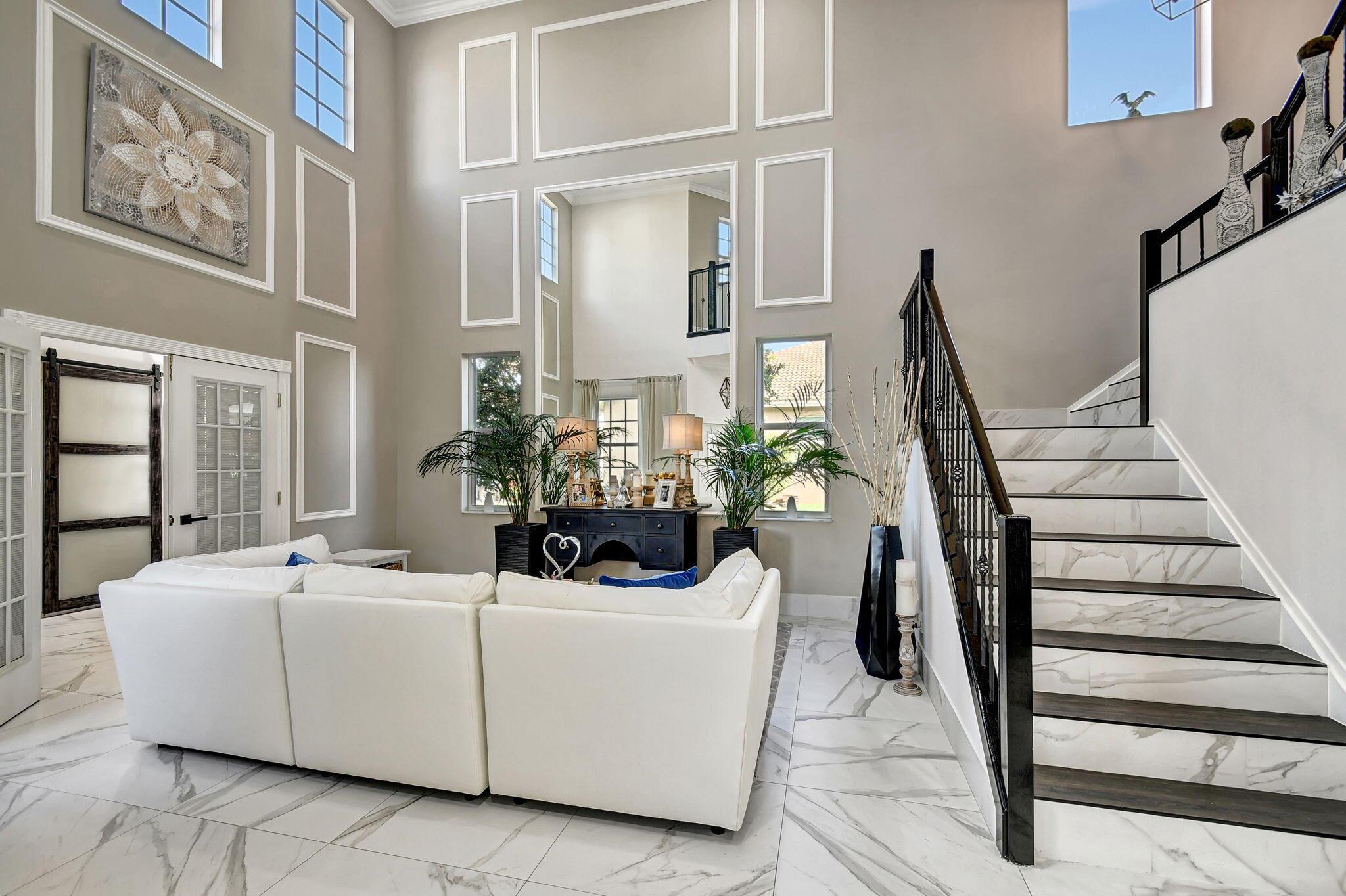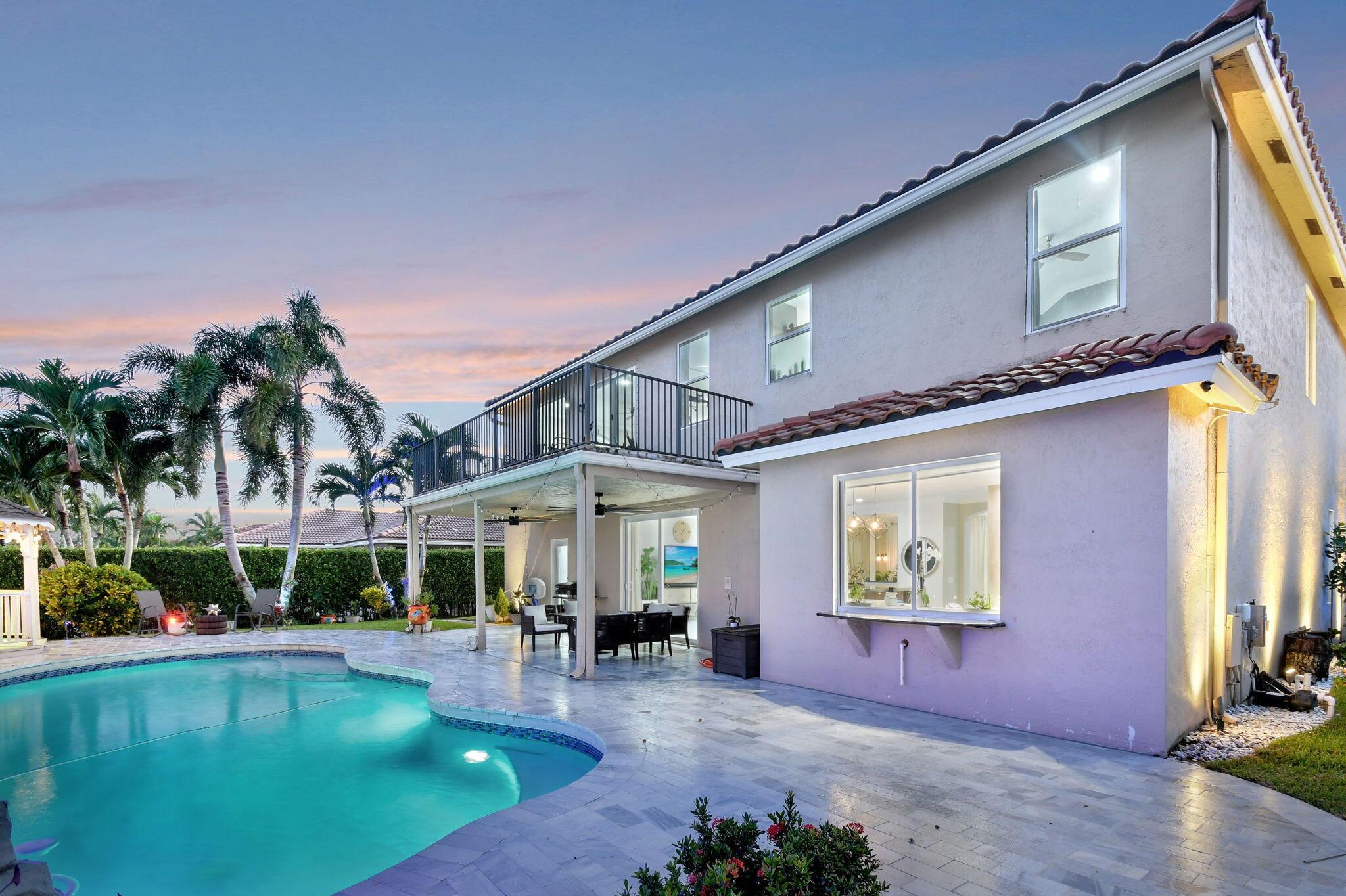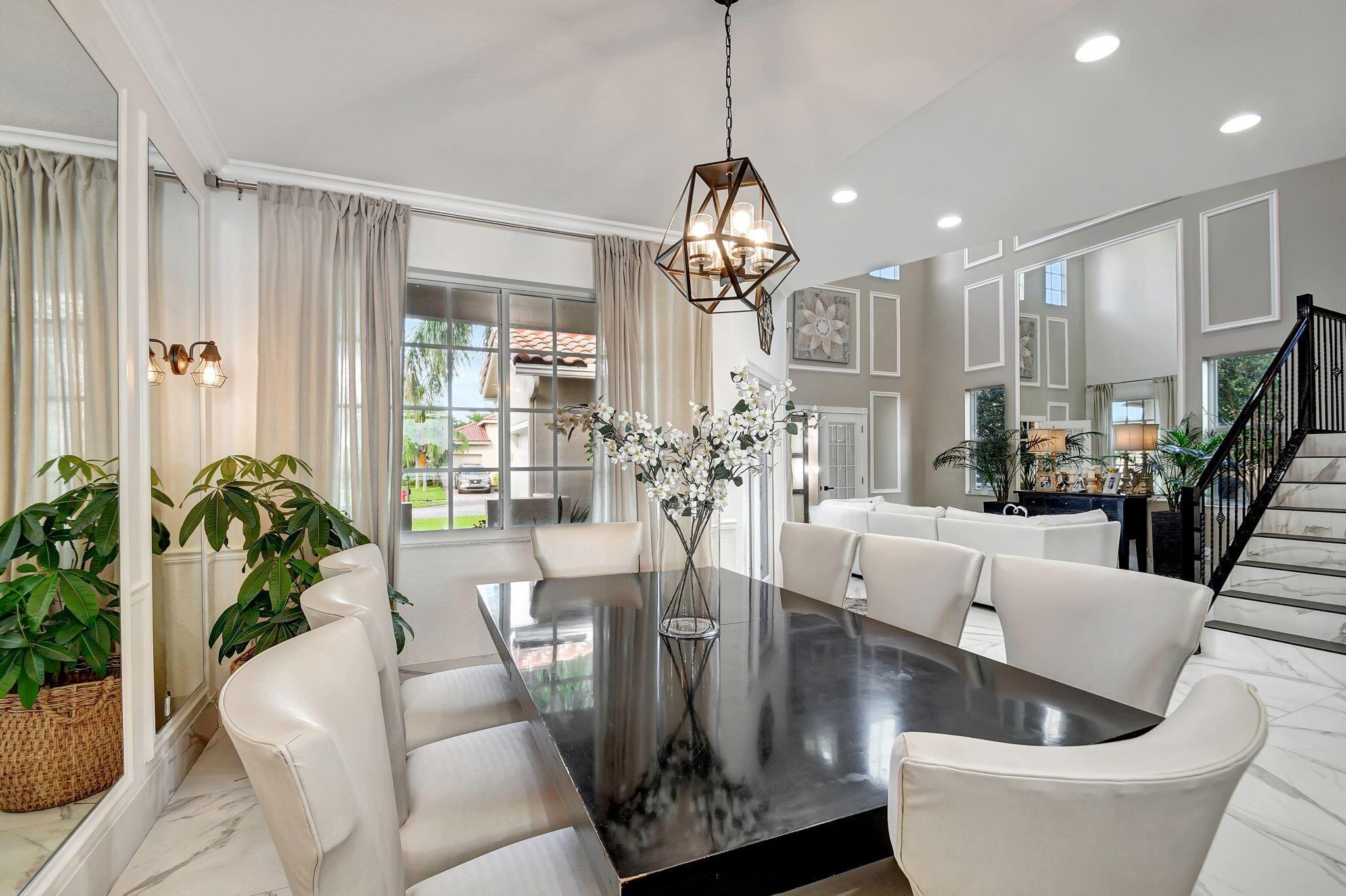 Fabulous renovated former model home (4/3/3)on an enormous lake with a heated pool and a fenced yard. Exceeding $300,000, the upgrades include marble porcelain floors throughout downstairs and wood look tile upstairs, full impact glass, 2 new a/c’s, 2 remodeled bathrooms, new pool tile, pool heater and stone waterfall. Also recently, the pool decking was transformed with marble and a firepit was added, the kitchen was totally renovated, and even the garage was resurfaced with an epoxy flake finish. The totally remodeled gourmet kitchen has new contemporary cabinets with pullouts, white quartz counter, grey marble eat-in counter, new Samsung stainless steel appliances, farmhouse sink overlooking the pool and lake, and a large walk-in pantry. A bedroom and a full cabana bath are on the
