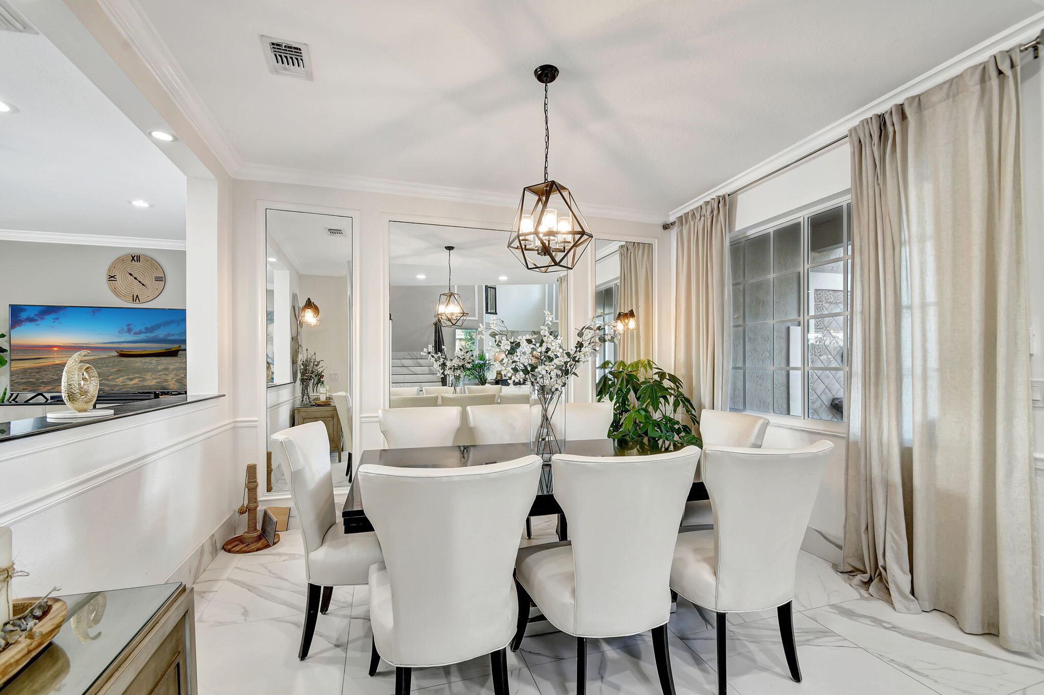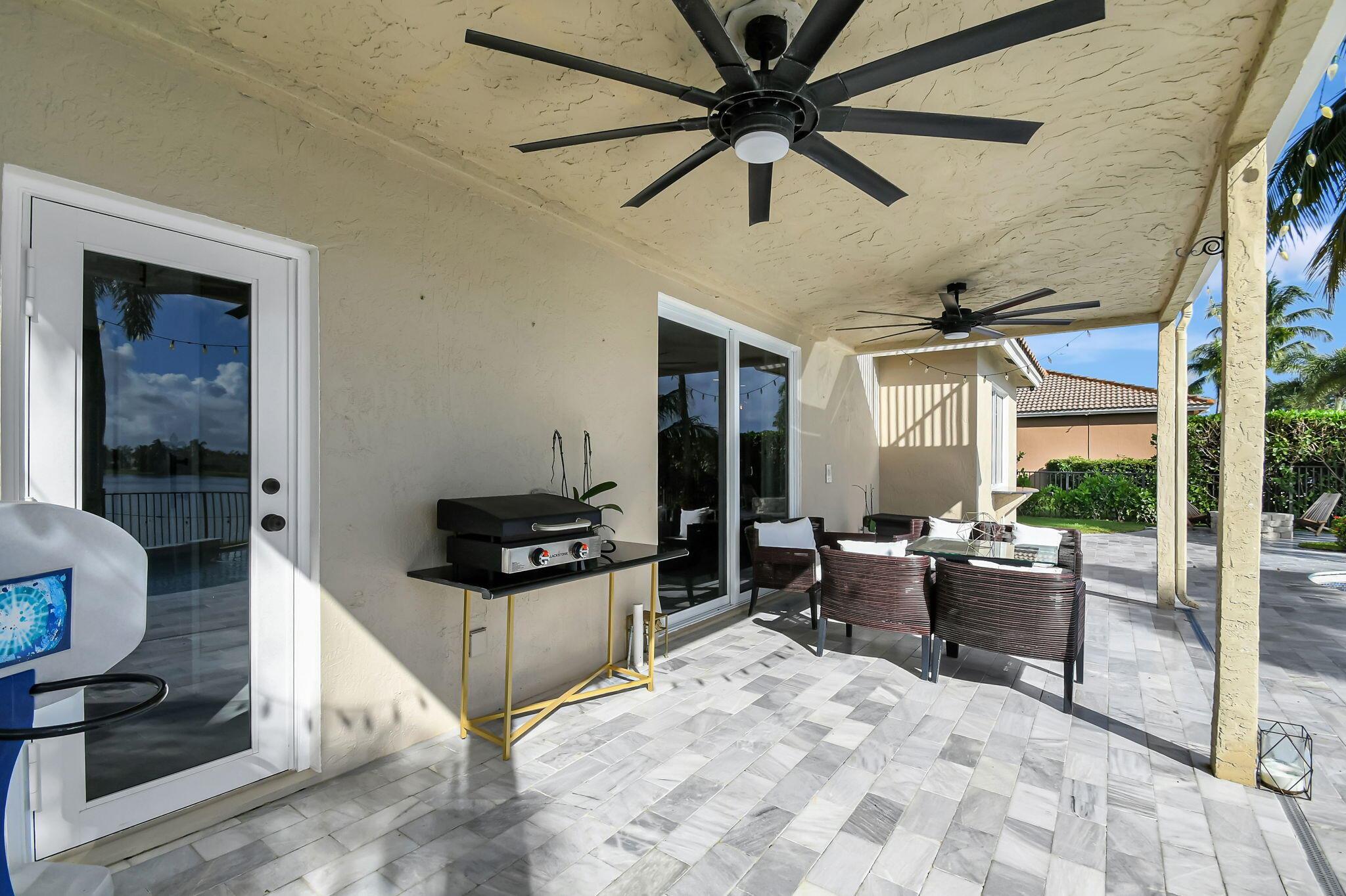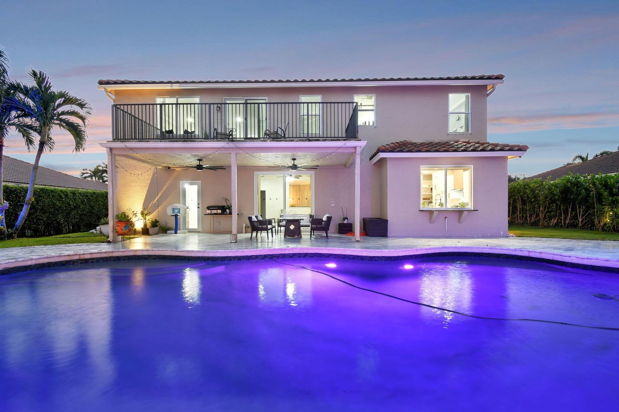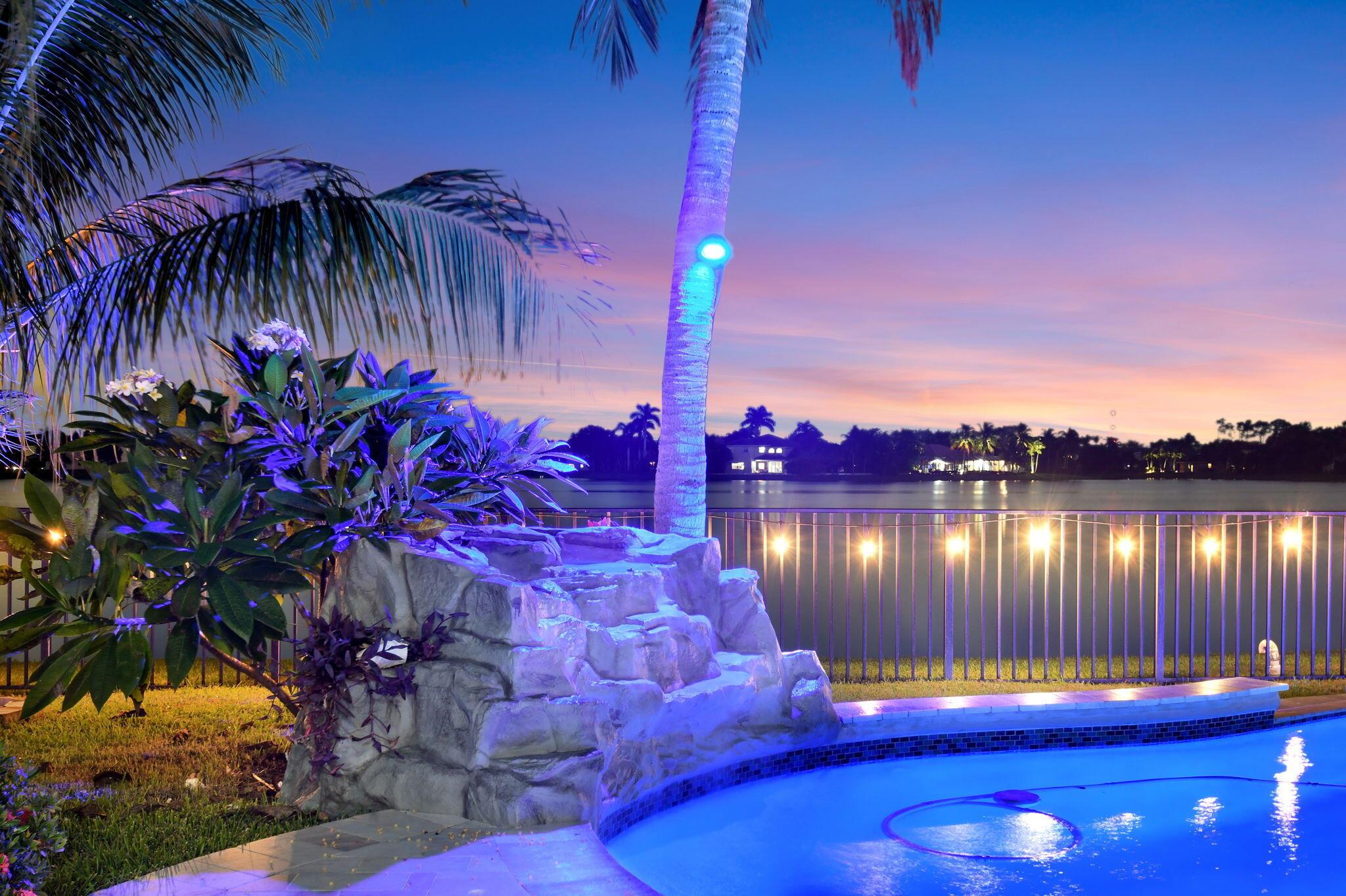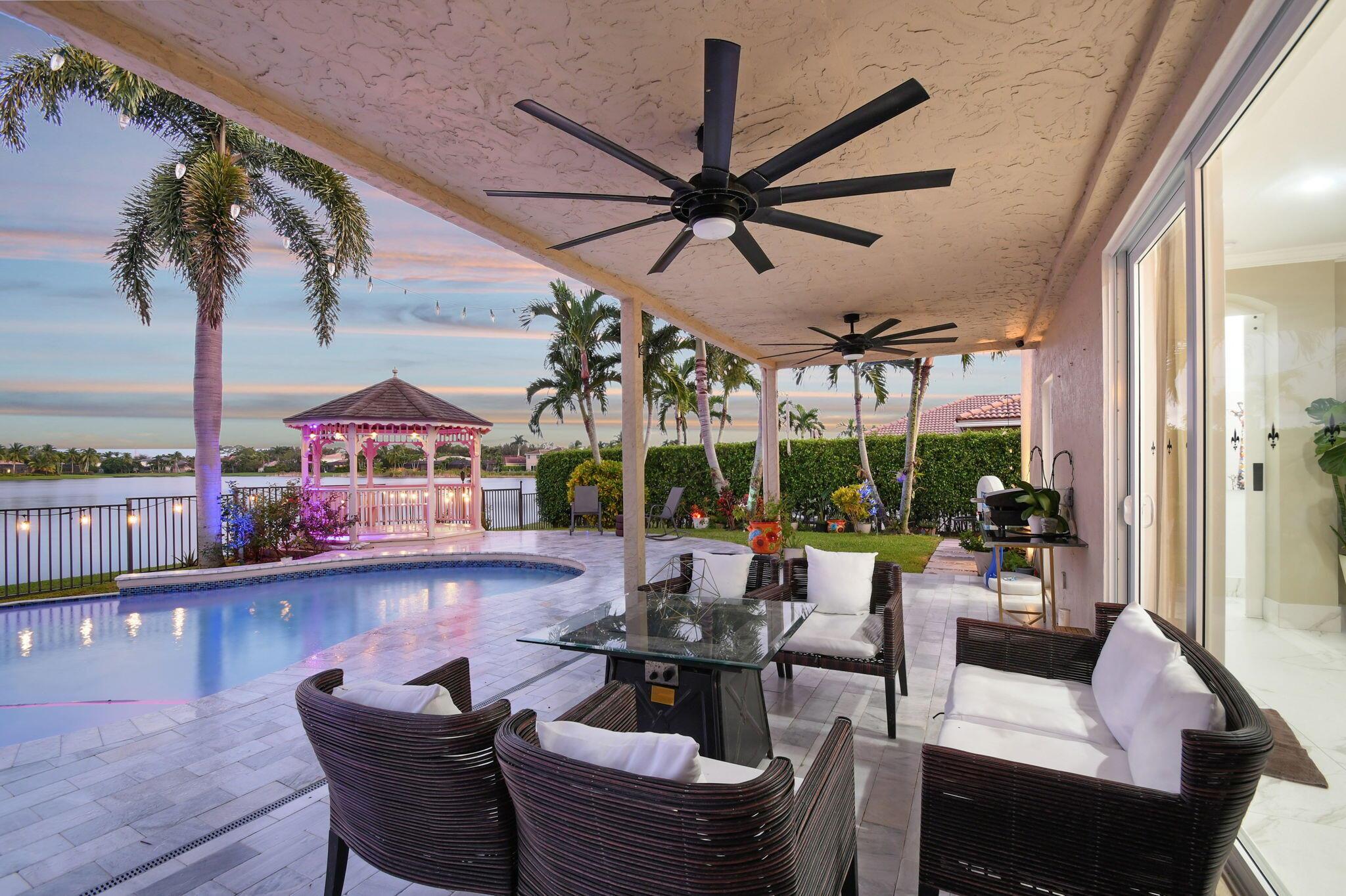 Fabulous renovated former model home (4/3/3)on an enormous lake with a heated pool and a fenced yard. Exceeding $300,000, the upgrades include marble porcelain floors throughout downstairs and wood look tile upstairs, full impact glass, 2 new a/c’s, 2 remodeled bathrooms, new pool tile, pool heater and stone waterfall. Also recently, the pool decking was transformed with marble and a firepit was added, the kitchen was totally renovated, and even the garage was resurfaced with an epoxy flake finish. The totally remodeled gourmet kitchen has new contemporary cabinets with pullouts, white quartz counter, grey marble eat-in counter, new Samsung stainless steel appliances, farmhouse sink overlooking the pool and lake, and a large walk-in pantry. A bedroom and a full cabana bath are on the