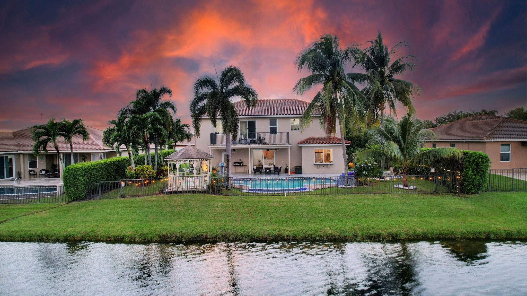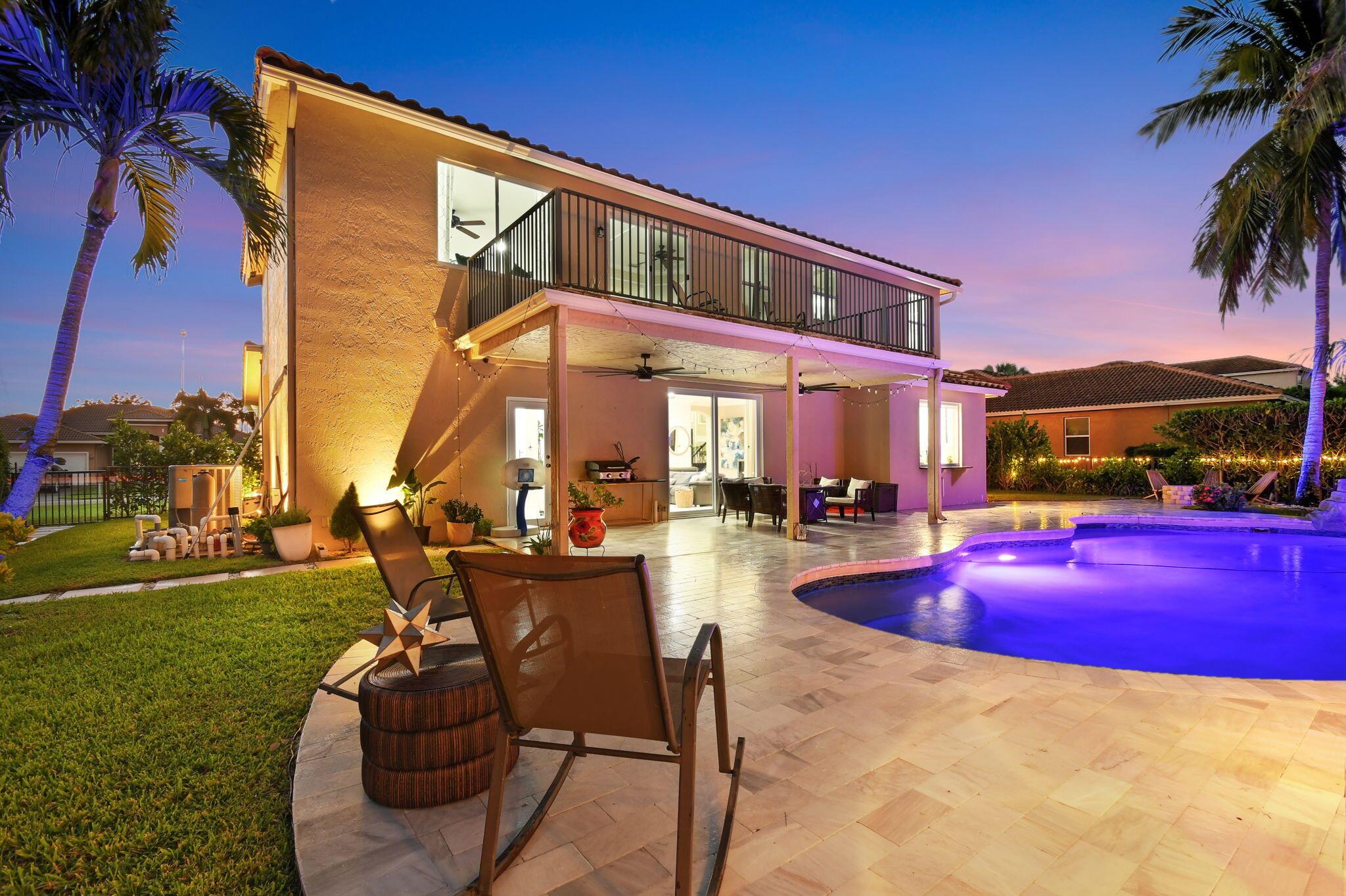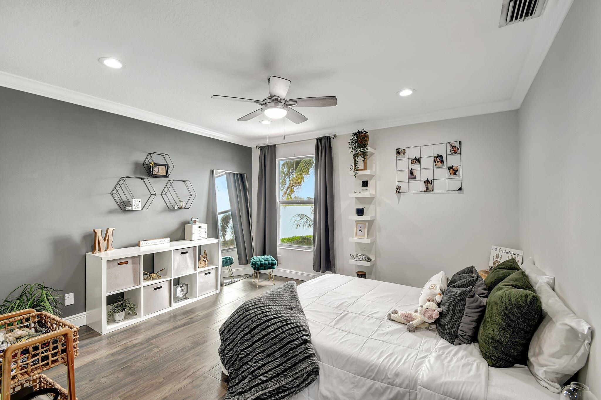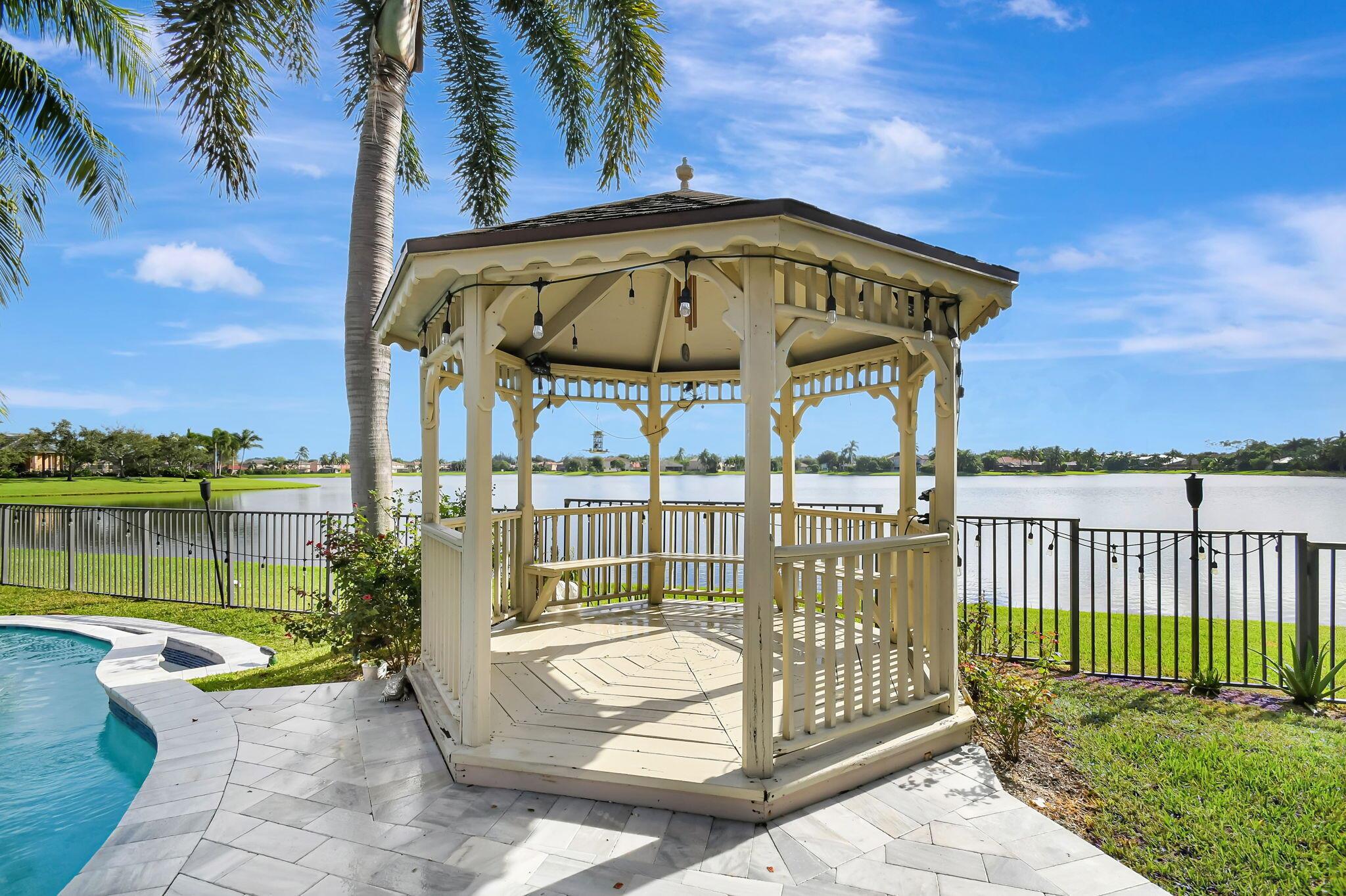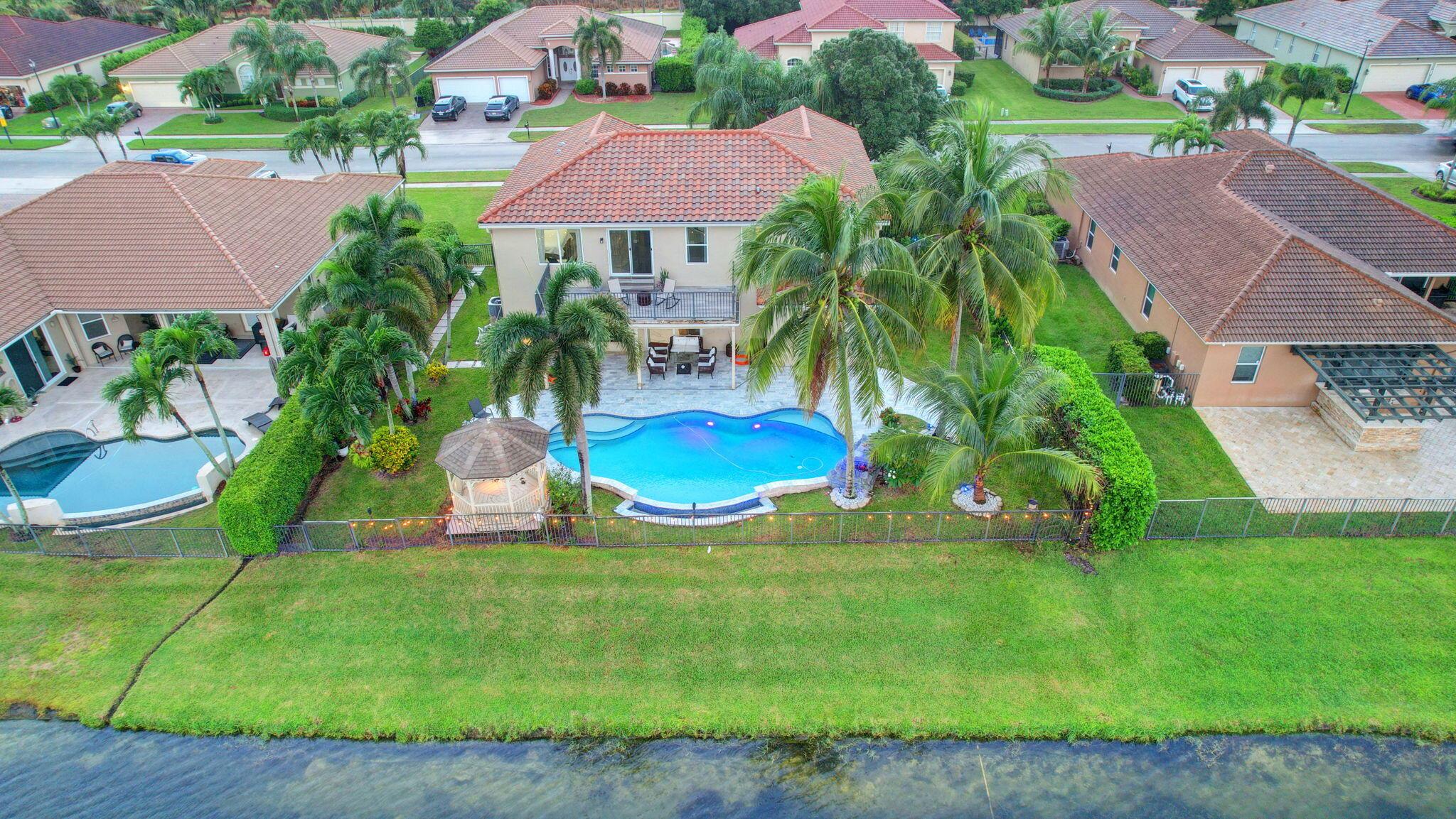 Fabulous renovated former model home (4/3/3)on an enormous lake with a heated pool and a fenced yard. Exceeding $300,000, the upgrades include marble porcelain floors throughout downstairs and wood look tile upstairs, full impact glass, 2 new a/c’s, 2 remodeled bathrooms, new pool tile, pool heater and stone waterfall. Also recently, the pool decking was transformed with marble and a firepit was added, the kitchen was totally renovated, and even the garage was resurfaced with an epoxy flake finish. The totally remodeled gourmet kitchen has new contemporary cabinets with pullouts, white quartz counter, grey marble eat-in counter, new Samsung stainless steel appliances, farmhouse sink overlooking the pool and lake, and a large walk-in pantry. A bedroom and a full cabana bath are on the