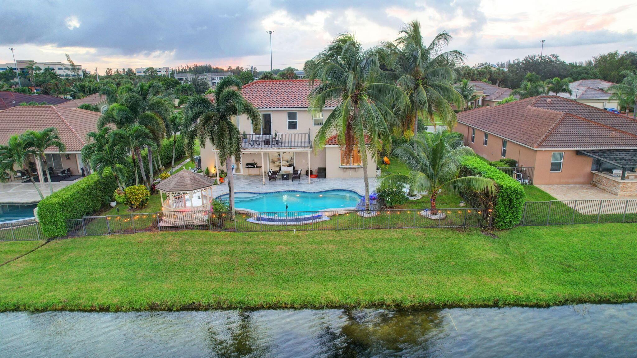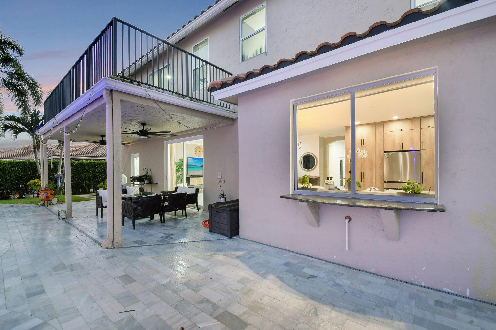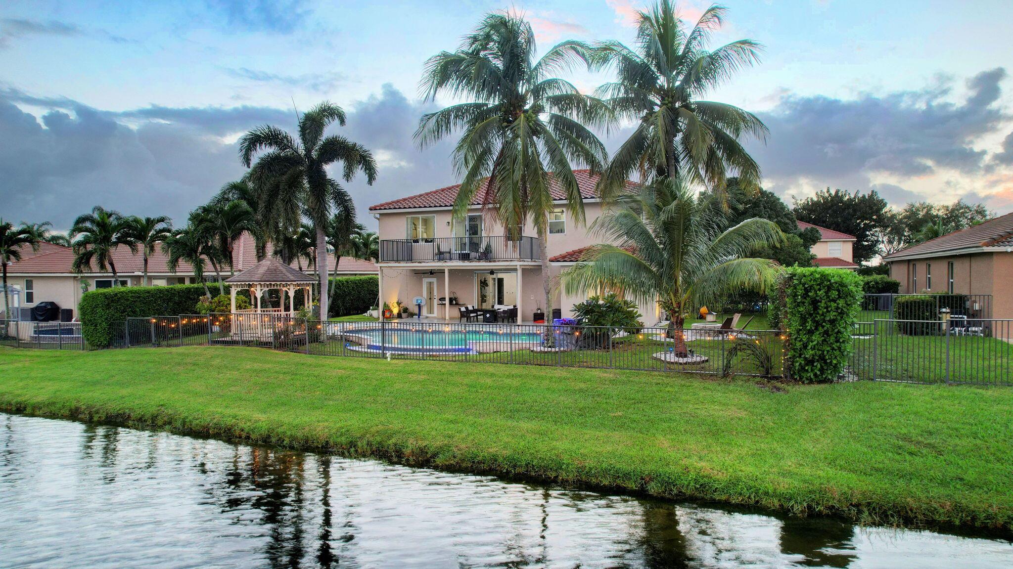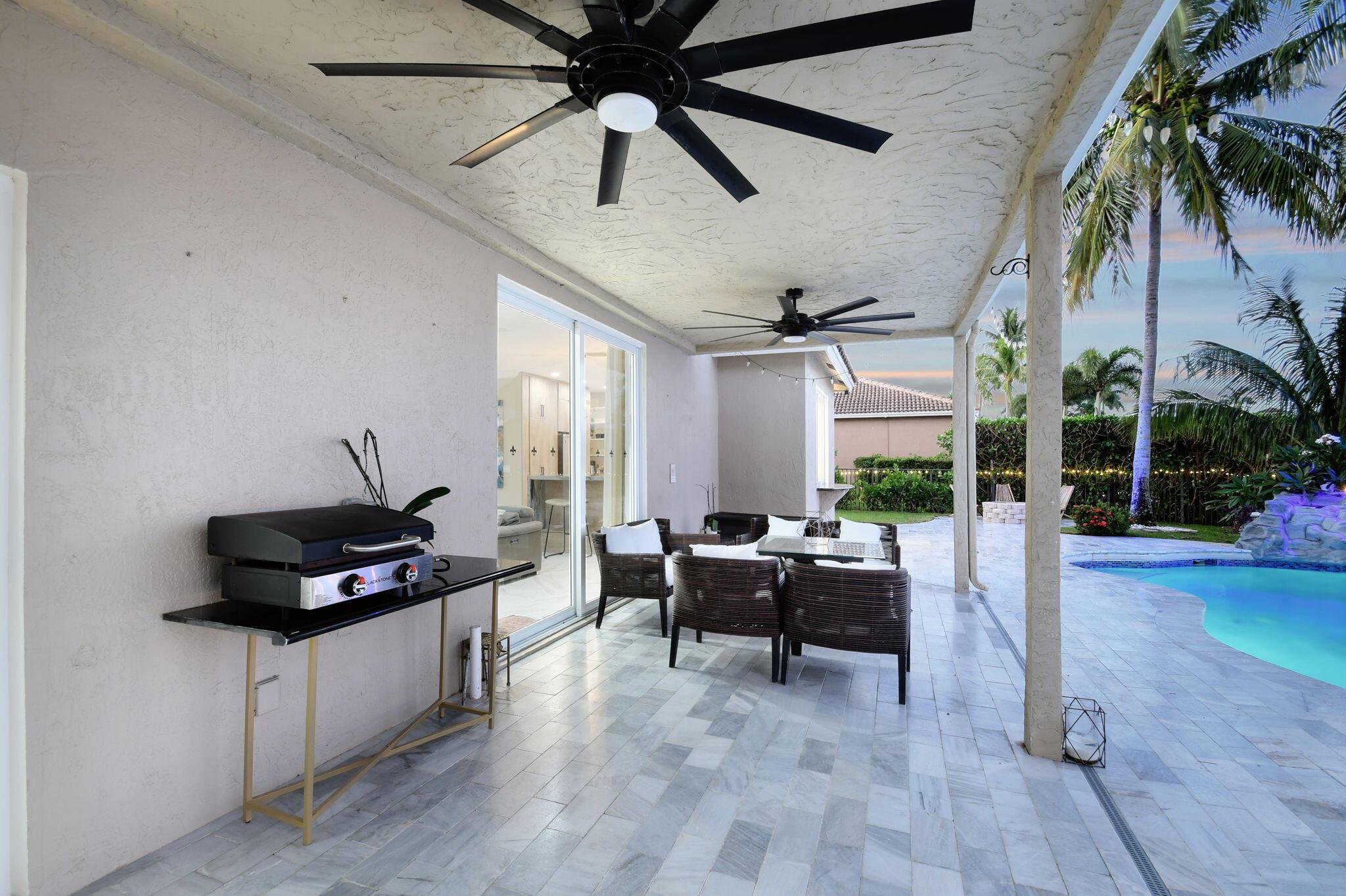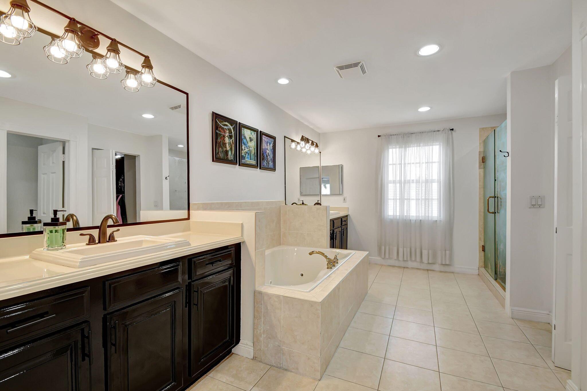 Fabulous renovated former model home (4/3/3)on an enormous lake with a heated pool and a fenced yard. Exceeding $300,000, the upgrades include marble porcelain floors throughout downstairs and wood look tile upstairs, full impact glass, 2 new a/c’s, 2 remodeled bathrooms, new pool tile, pool heater and stone waterfall. Also recently, the pool decking was transformed with marble and a firepit was added, the kitchen was totally renovated, and even the garage was resurfaced with an epoxy flake finish. The totally remodeled gourmet kitchen has new contemporary cabinets with pullouts, white quartz counter, grey marble eat-in counter, new Samsung stainless steel appliances, farmhouse sink overlooking the pool and lake, and a large walk-in pantry. A bedroom and a full cabana bath are on the