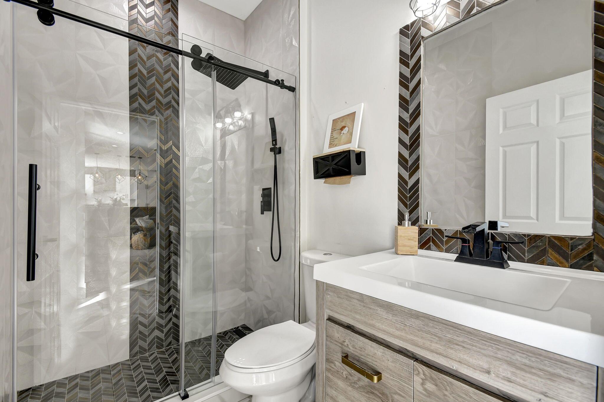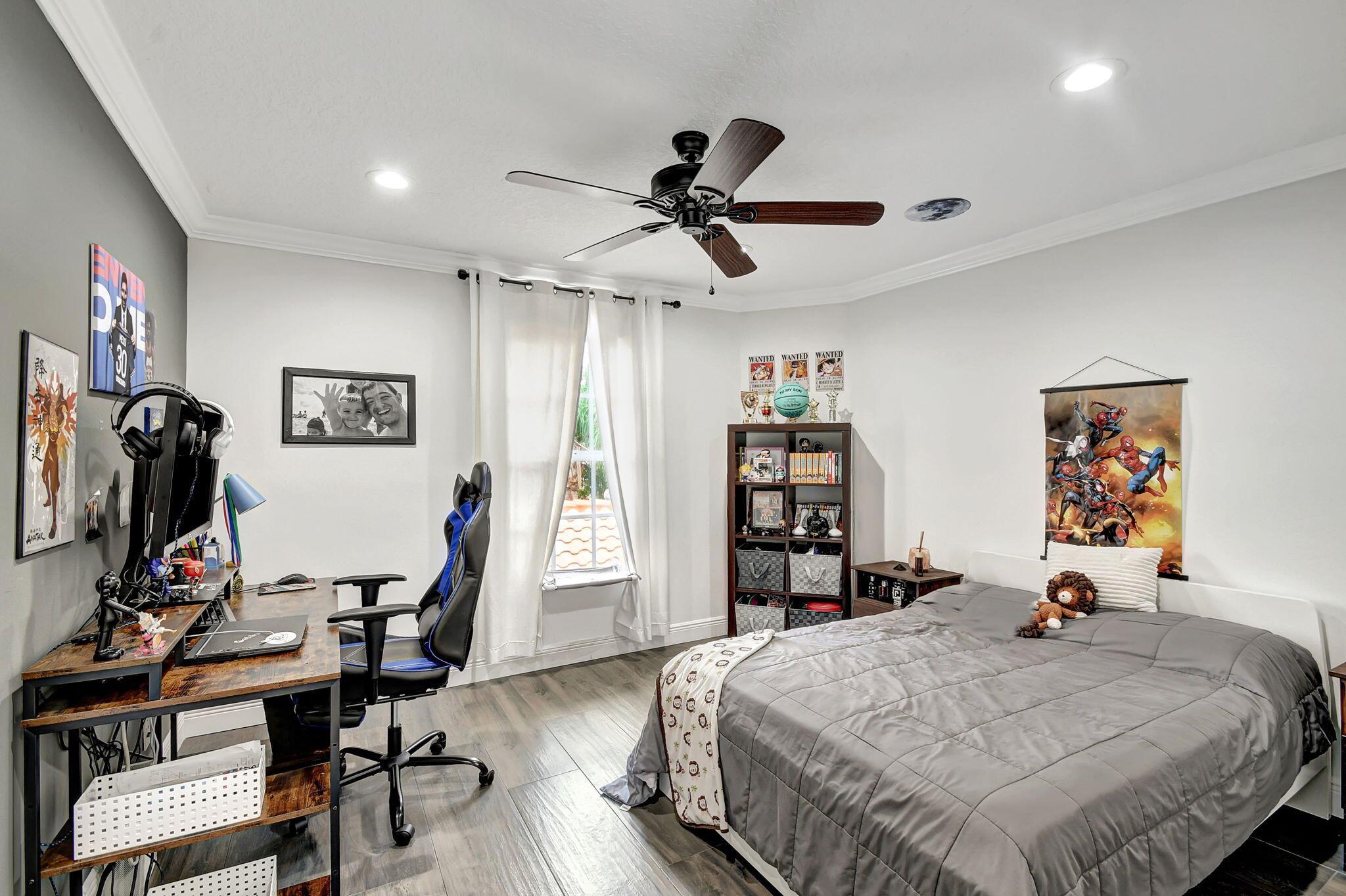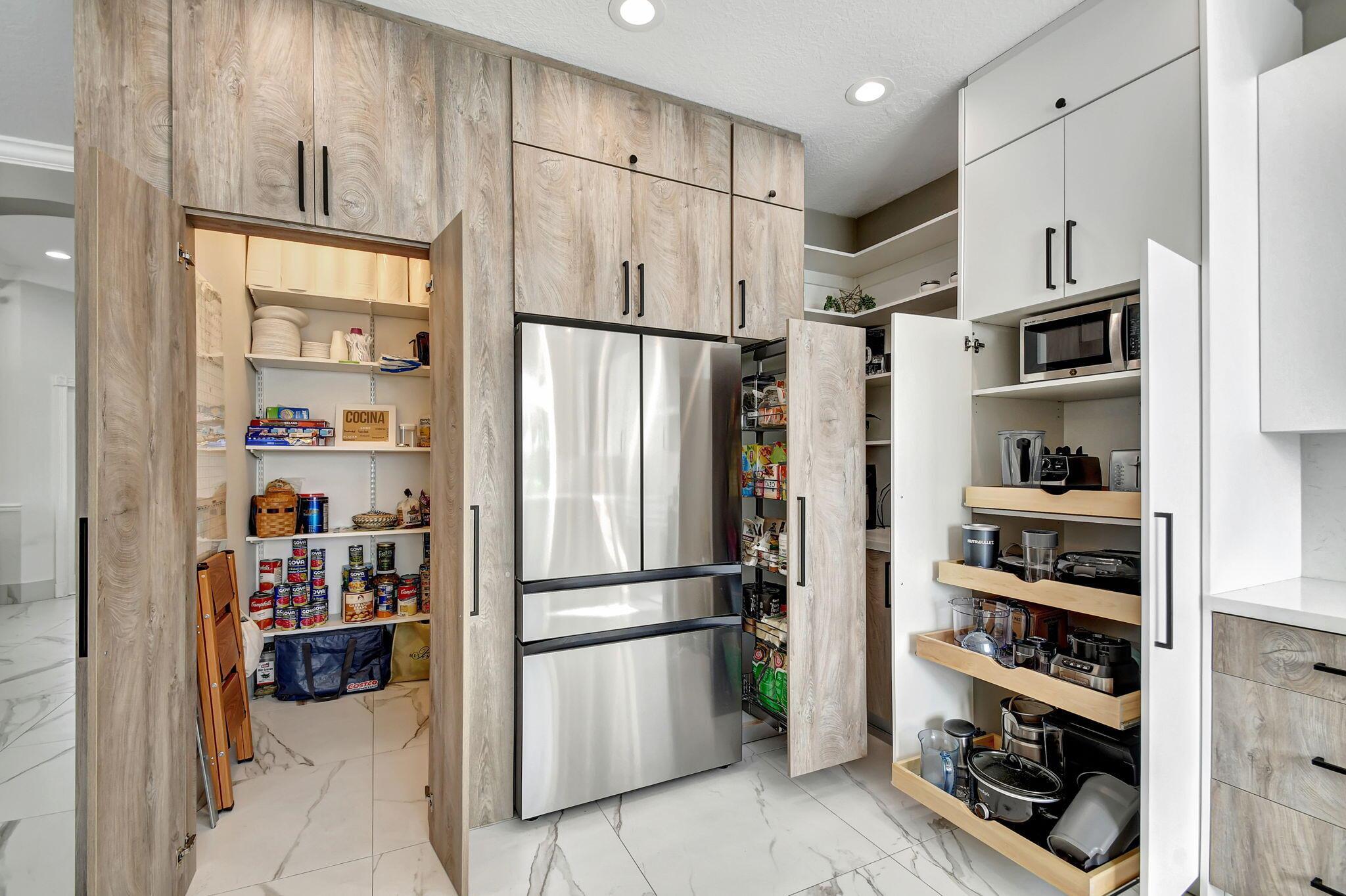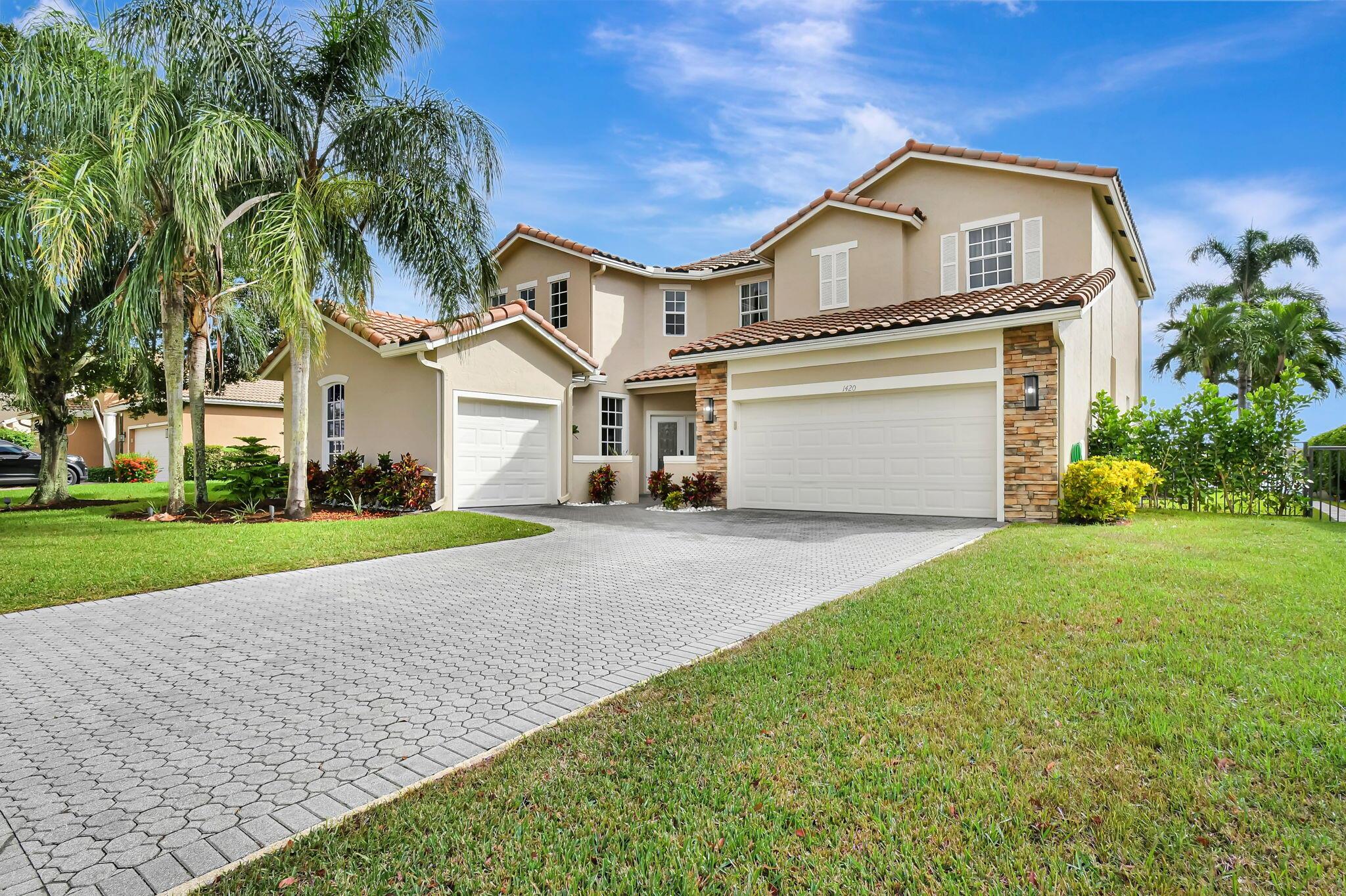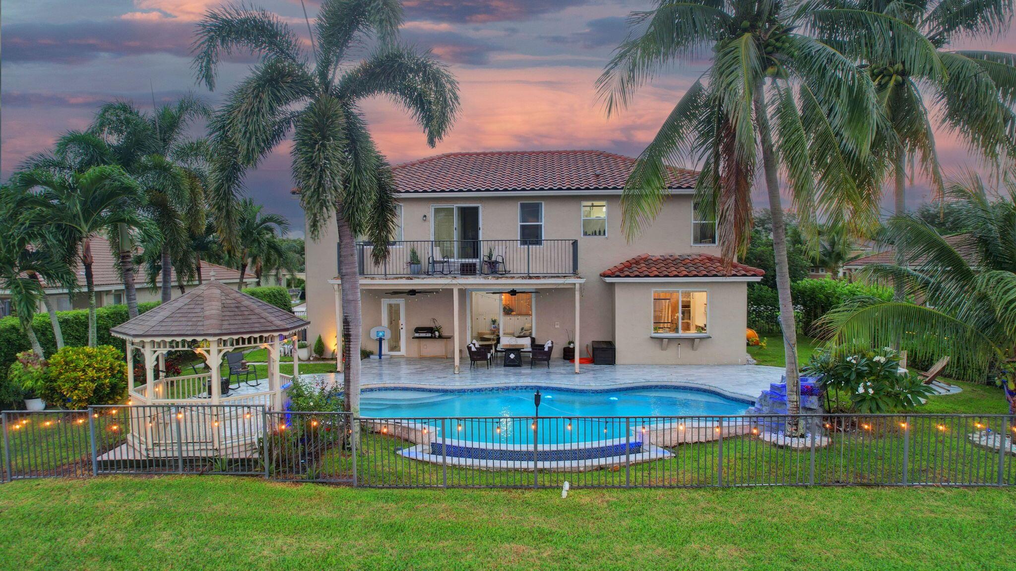 Fabulous renovated former model home (4/3/3)on an enormous lake with a heated pool and a fenced yard. Exceeding $300,000, the upgrades include marble porcelain floors throughout downstairs and wood look tile upstairs, full impact glass, 2 new a/c’s, 2 remodeled bathrooms, new pool tile, pool heater and stone waterfall. Also recently, the pool decking was transformed with marble and a firepit was added, the kitchen was totally renovated, and even the garage was resurfaced with an epoxy flake finish. The totally remodeled gourmet kitchen has new contemporary cabinets with pullouts, white quartz counter, grey marble eat-in counter, new Samsung stainless steel appliances, farmhouse sink overlooking the pool and lake, and a large walk-in pantry. A bedroom and a full cabana bath are on the