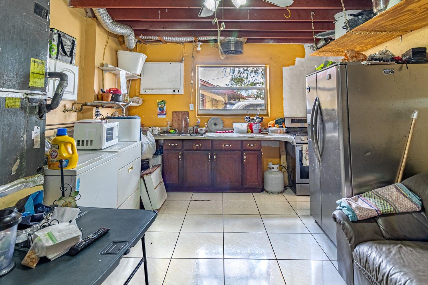 This single family home rests on the corner of quiet a residential neighborhood, overlooking a canal directly in the backyard. It features tile flooring through and consists of 3 bedrooms, 2 bathrooms, a large sun room and backyard that offers much possibility to use at your discretion. The backyard also features a shed which offers much space for storage of all types. The garage has been transformed in to a 2nd kitchen which also features a washer and dryer but has the potential to be used in a different manner upon purchase. The home is in close proximity to retail, restaurants, highway access, multiple parks, schools etc.