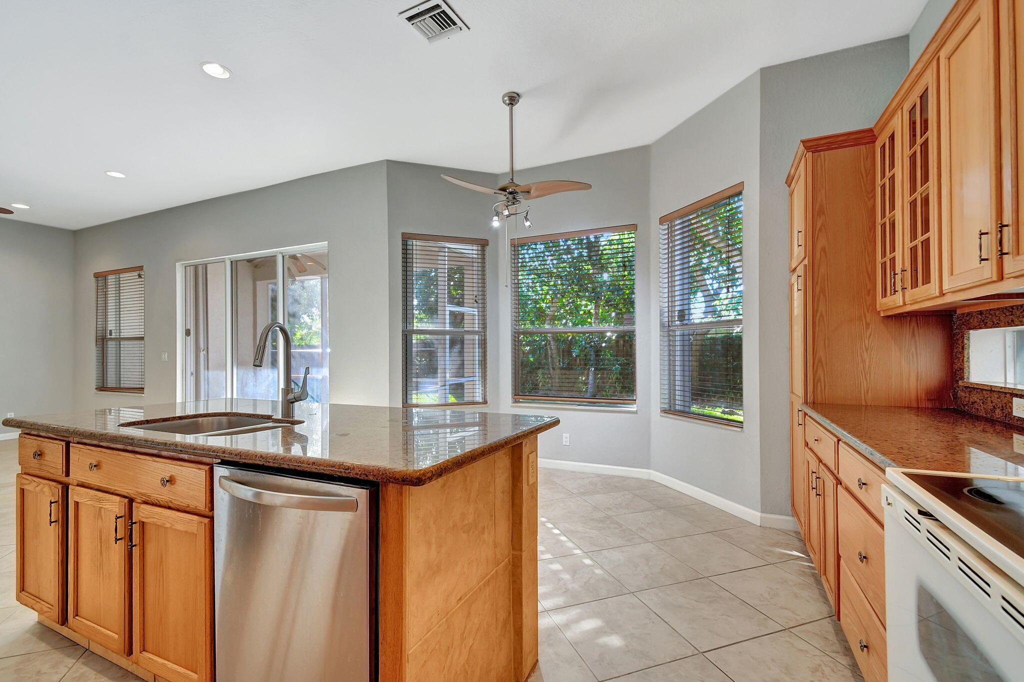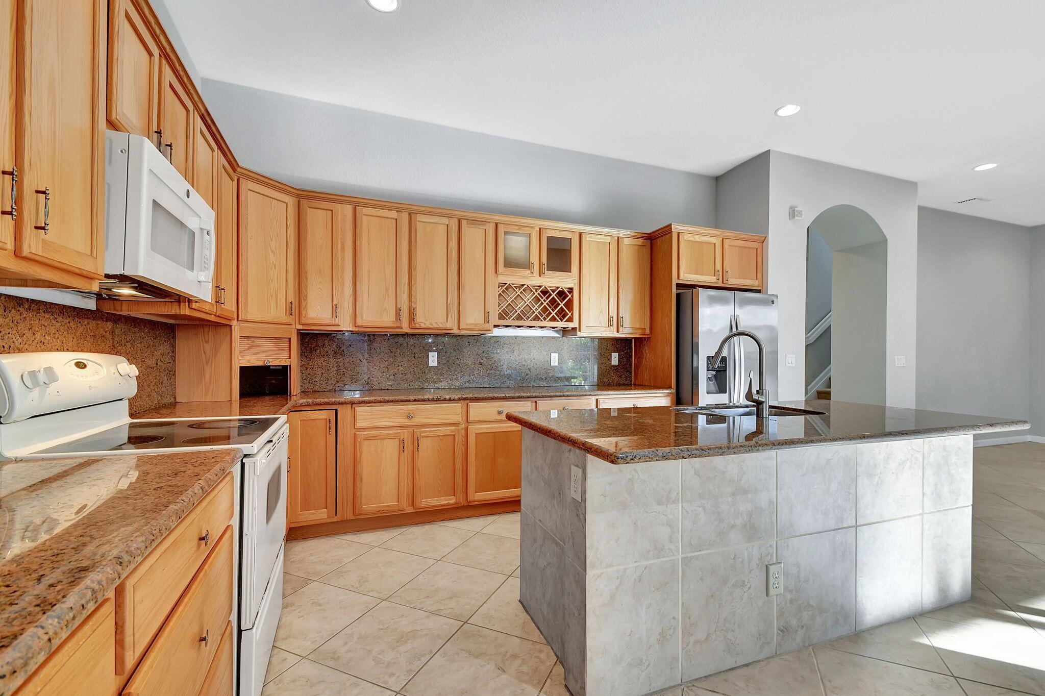 This spacious 4-bedroom, 2.5-bathroom residence is located in a desirable gated community. The first floor features stunning Big Diagnostic tiles and a custom kitchen equipped with glass-front cabinets, wine and glasses racks, and a beautiful marble backsplash that extends throughout the entire kitchen. The home is designed for convenience with a central vacuum system that serves the whole house. Enjoy outdoor living on the covered patio, which comes with hurricane shutters for added protection. The master bedroom boasts a luxurious jacuzzi bathtub, and the custom laundry room includes a cabinet and sink for added functionality.