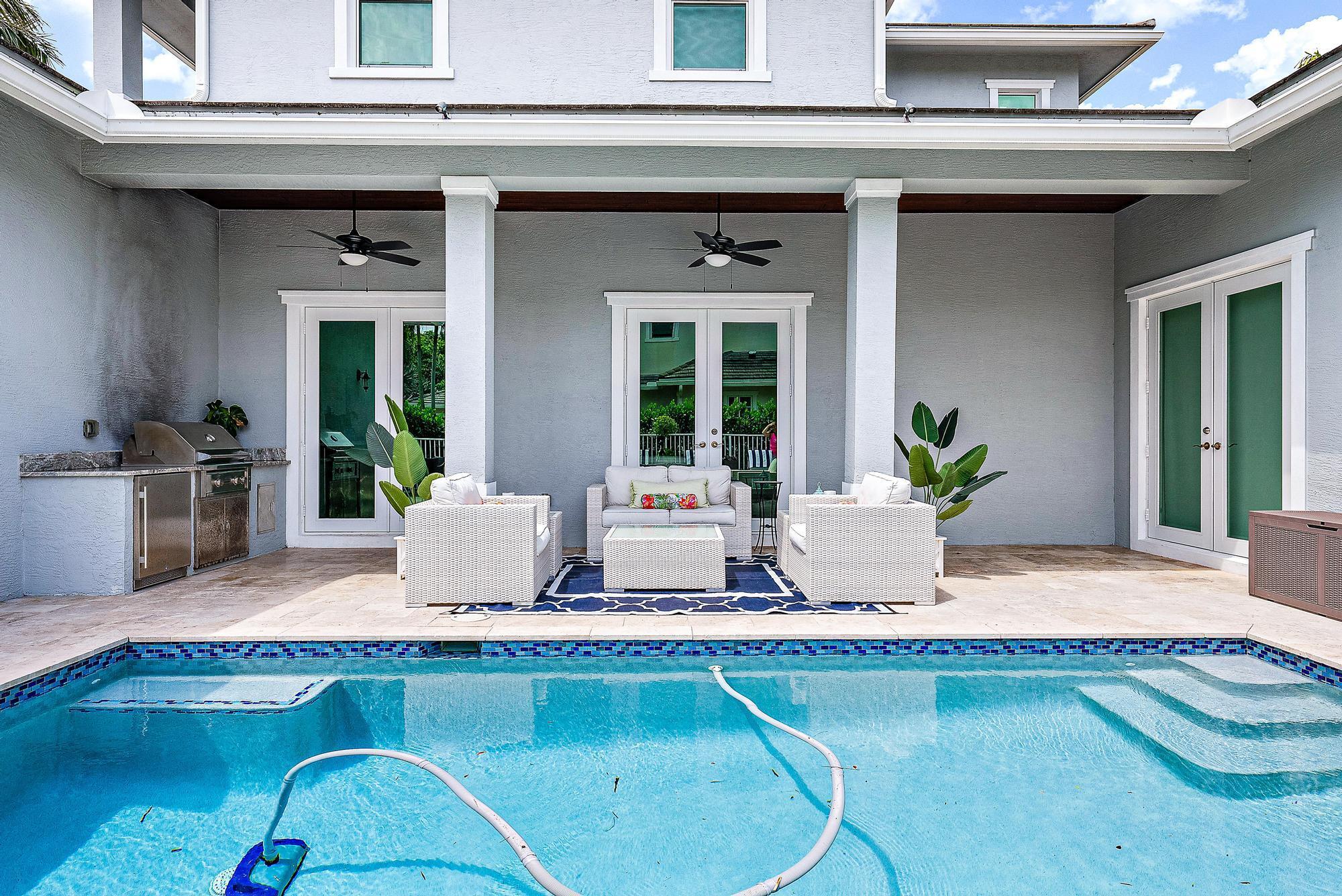 Move right into this custom-built 5-bedroom pool home in the gated Estates of North Palm, a private community of just 12 homes. Designed for effortless living, the spacious Primary Suite & three additional bedrooms (all ensuite) are located on the main level. Oversized Office + Bonus room on 2nd level are perfect for working from home. This newer home features 12′ ceilings, a light-filled open floor plan, gourmet kitchen w/ Thermador appliances & smart upgrades like Tesla charger + built-in speakers. Unwind in your private oasis w/ pool, summer kitchen & putting green – enjoy cocktails on your balcony at sunset. Embrace the golf-cart-friendly lifestyle w/ access to North Palm Beach CC for golf, tennis, pool, & events. Close to marinas, beaches, Benjamin School – luxury living – READY NOW!