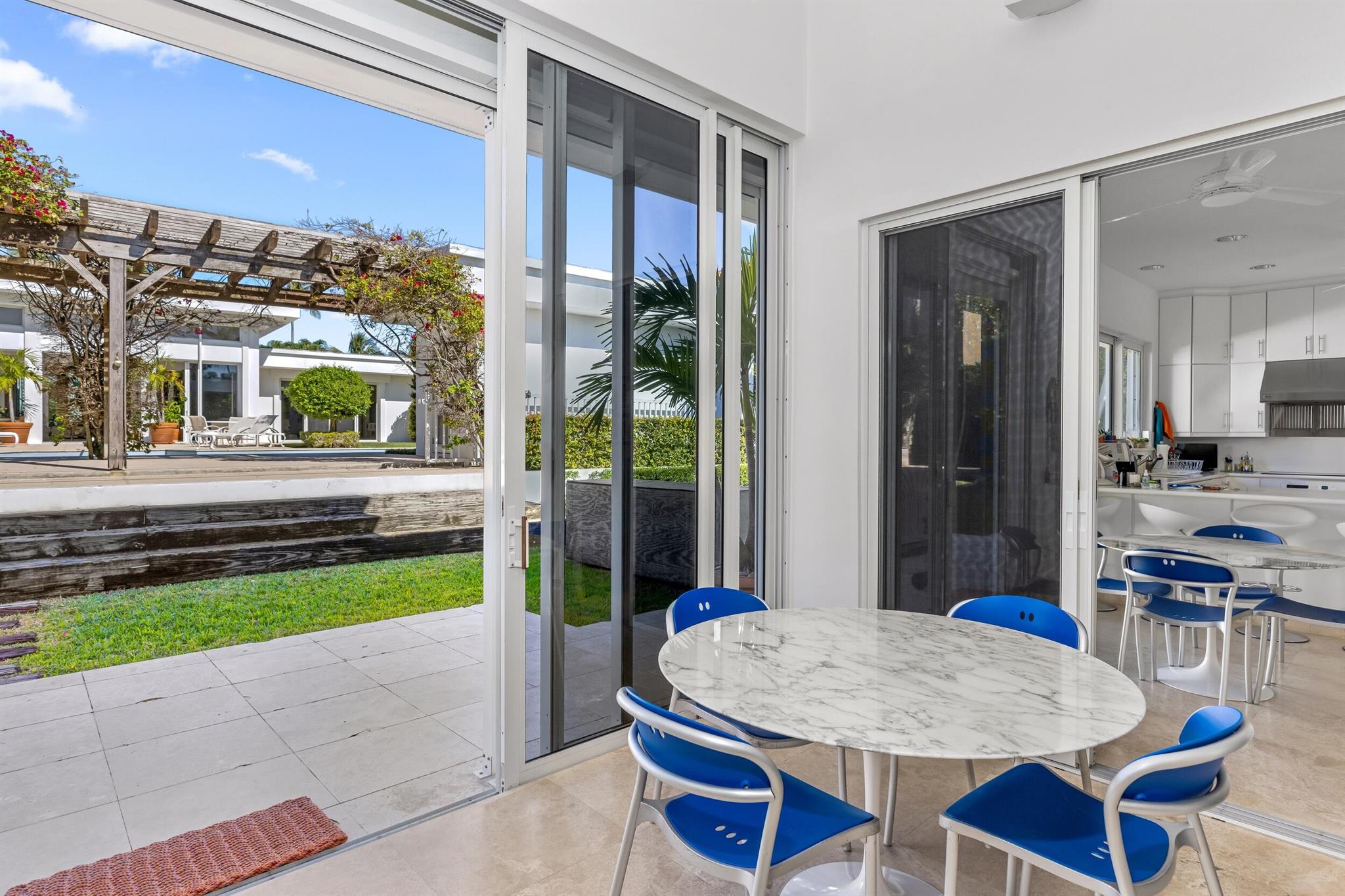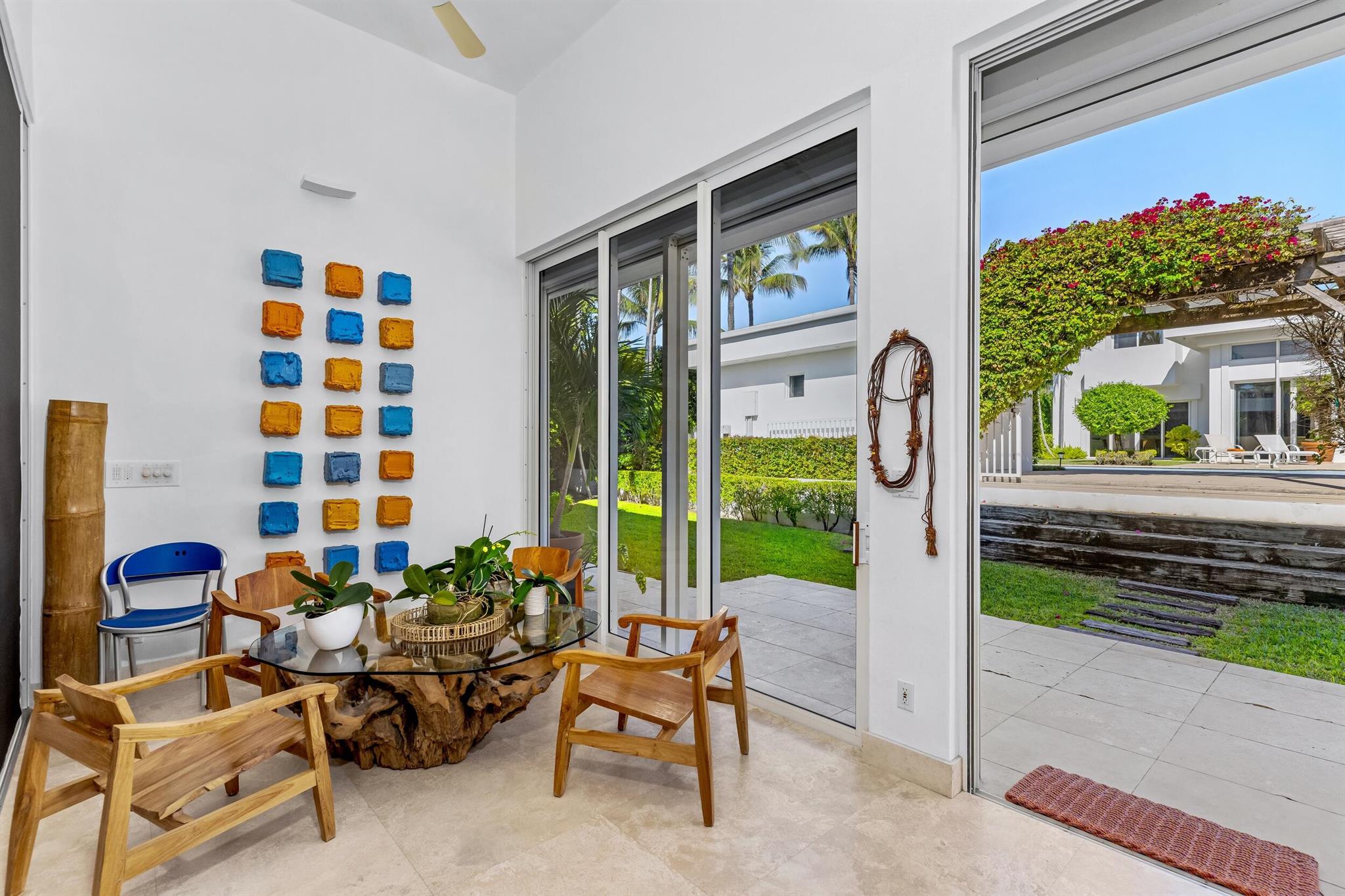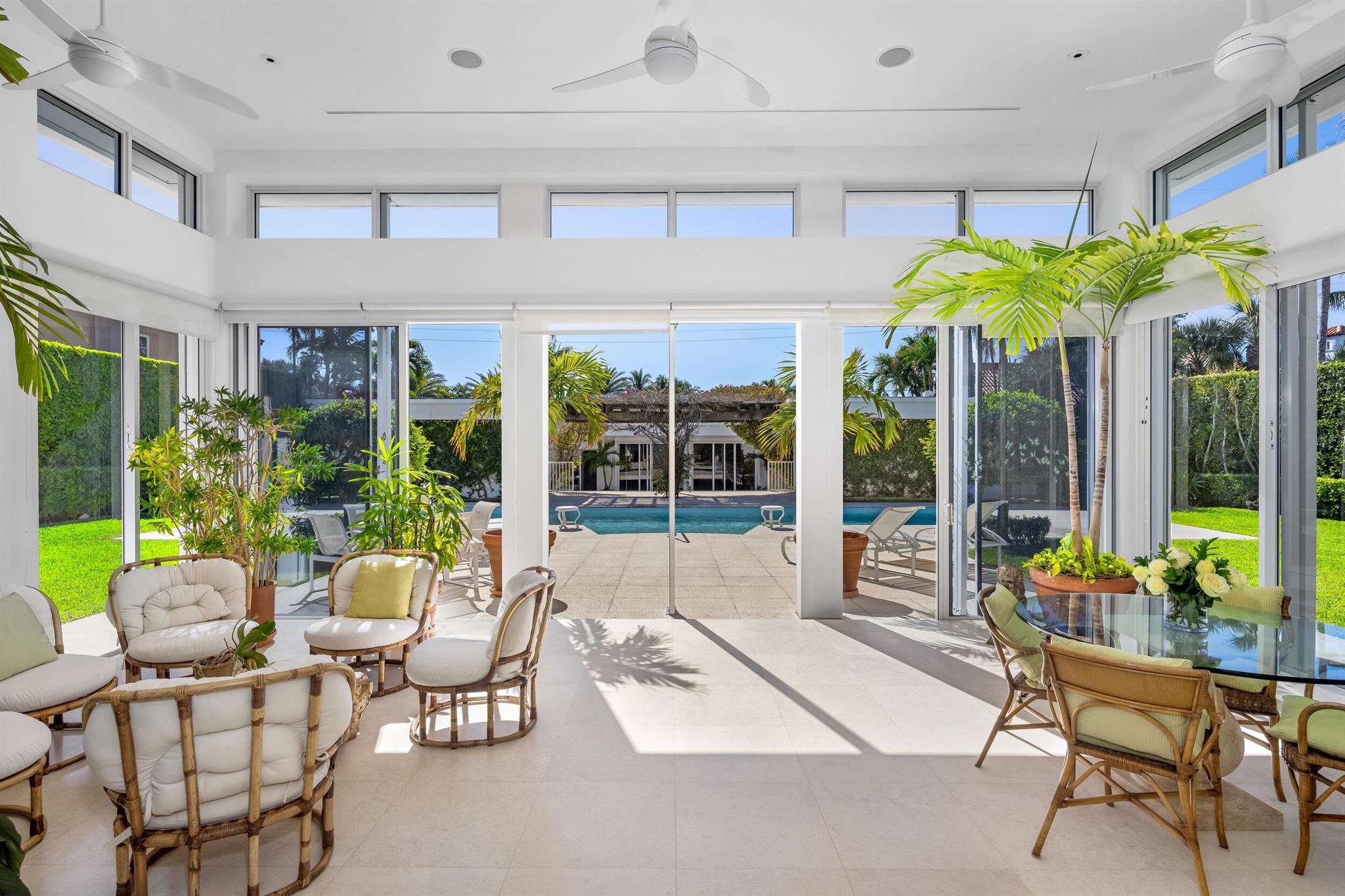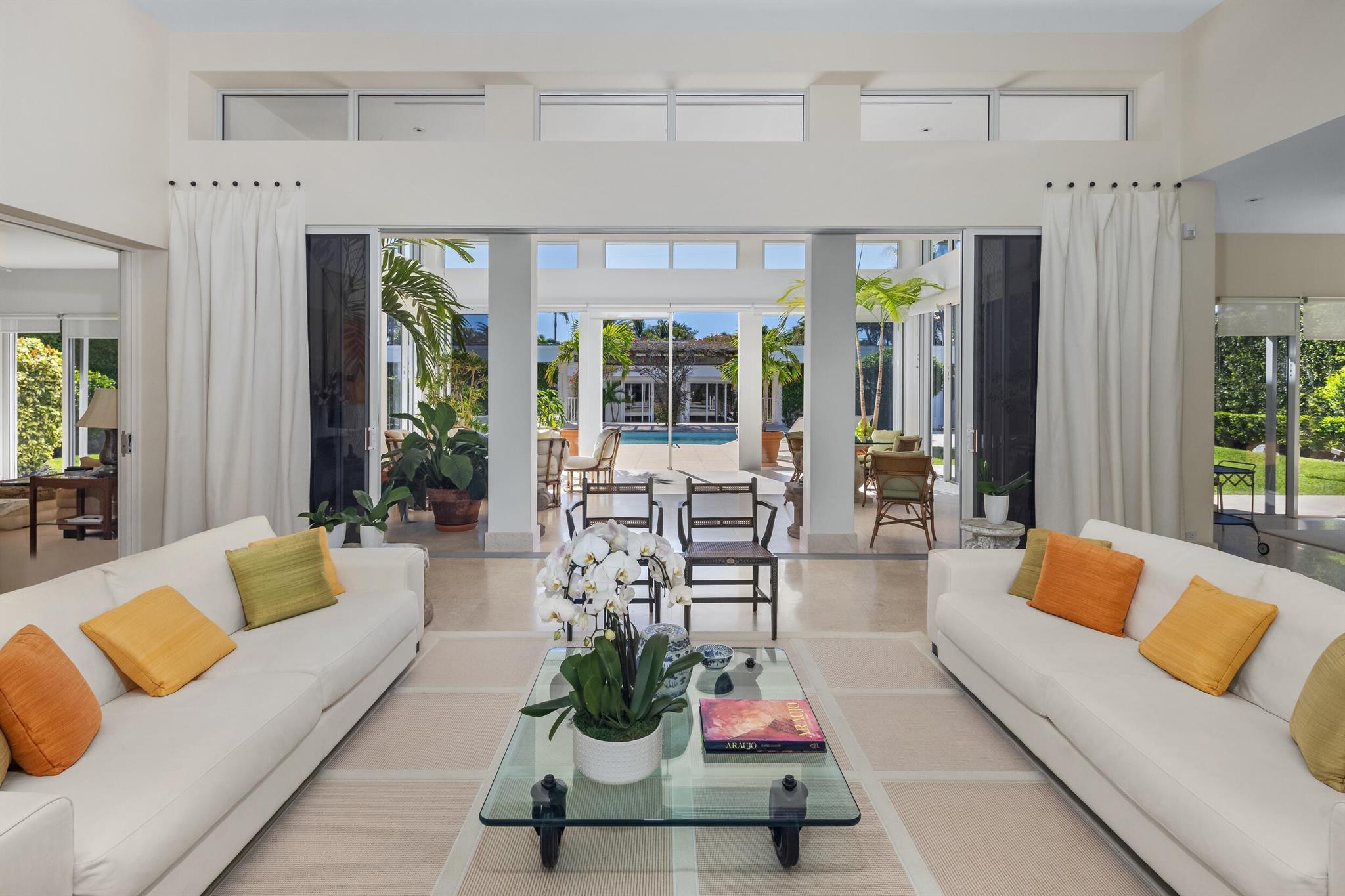 This rare midtown compound at 150 Dunbar Rd. and 151 Atlantic Ave. offers an exceptional opportunity in Palm Beach. Designed by the renowned architect Gene Lawrence, this expansive property spans a 29,600+ SF lot stretching from Dunbar Rd. to Atlantic Ave. With over 11,200 SF of combined living space, the compound includes two fully independent residences, offering 9 total bedrooms, multiple living areas and work spaces, and unmatched privacy and versatility.The primary two-story residence, encompassing 5,732 SF under air, features 5 bedrooms with en suite bathrooms, including a ground-floor primary suite with an office and an upstairs apartment with a lounge and kitchenette. Additional highlights include multiple living spaces, a formal dining room, a well-appointed kitchen
