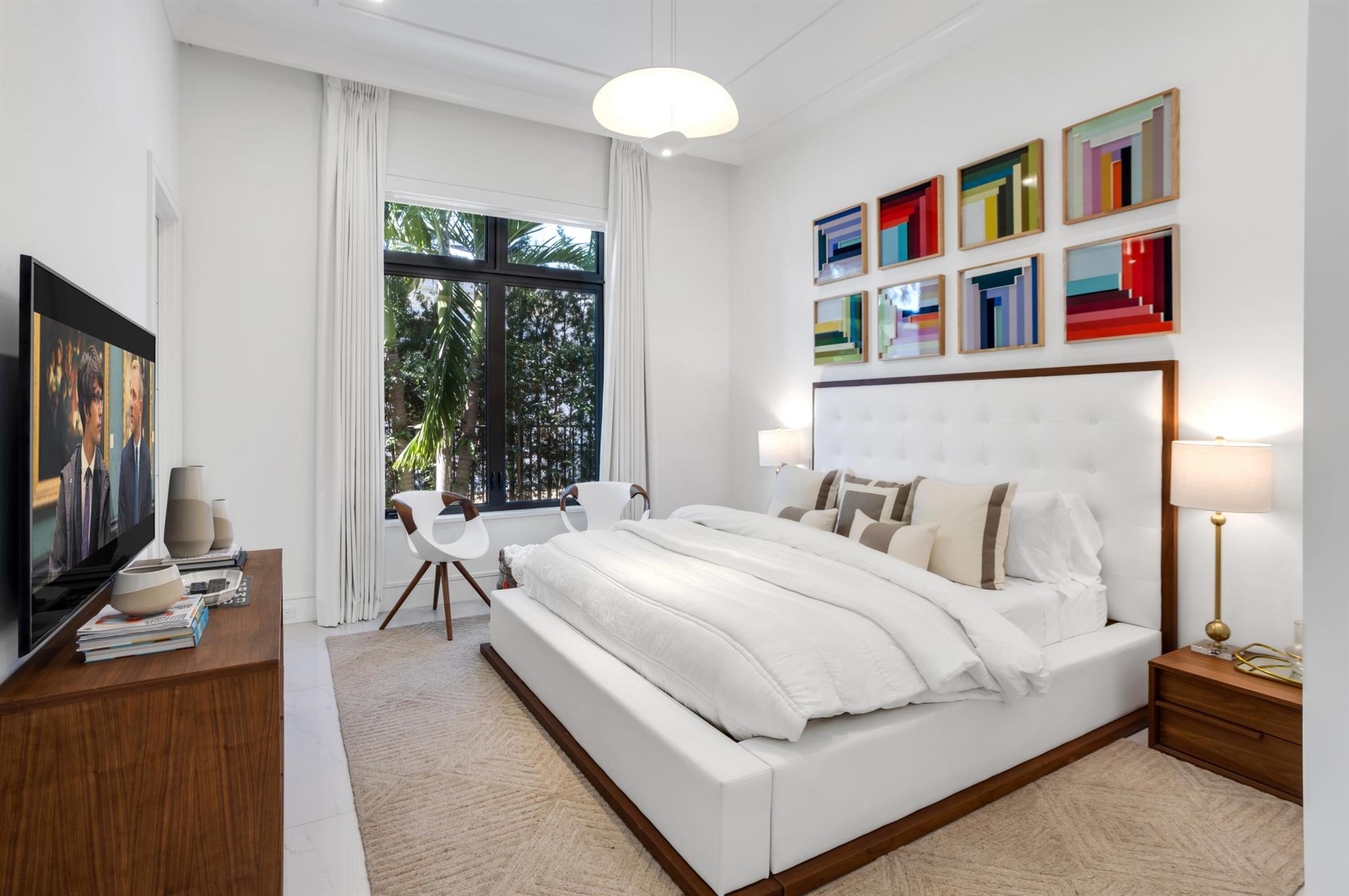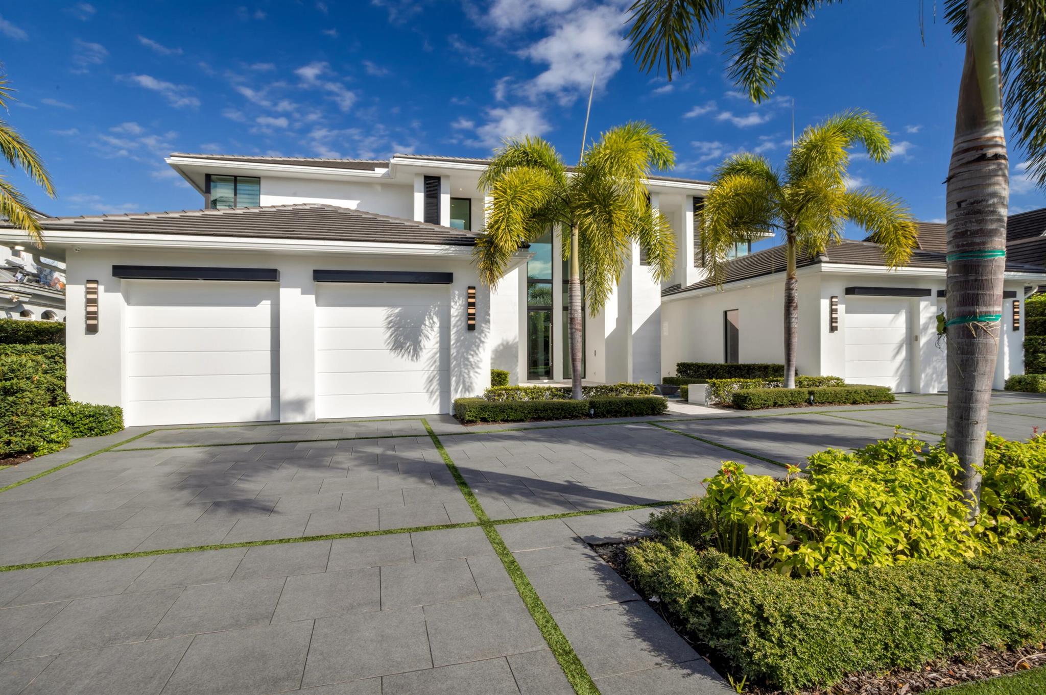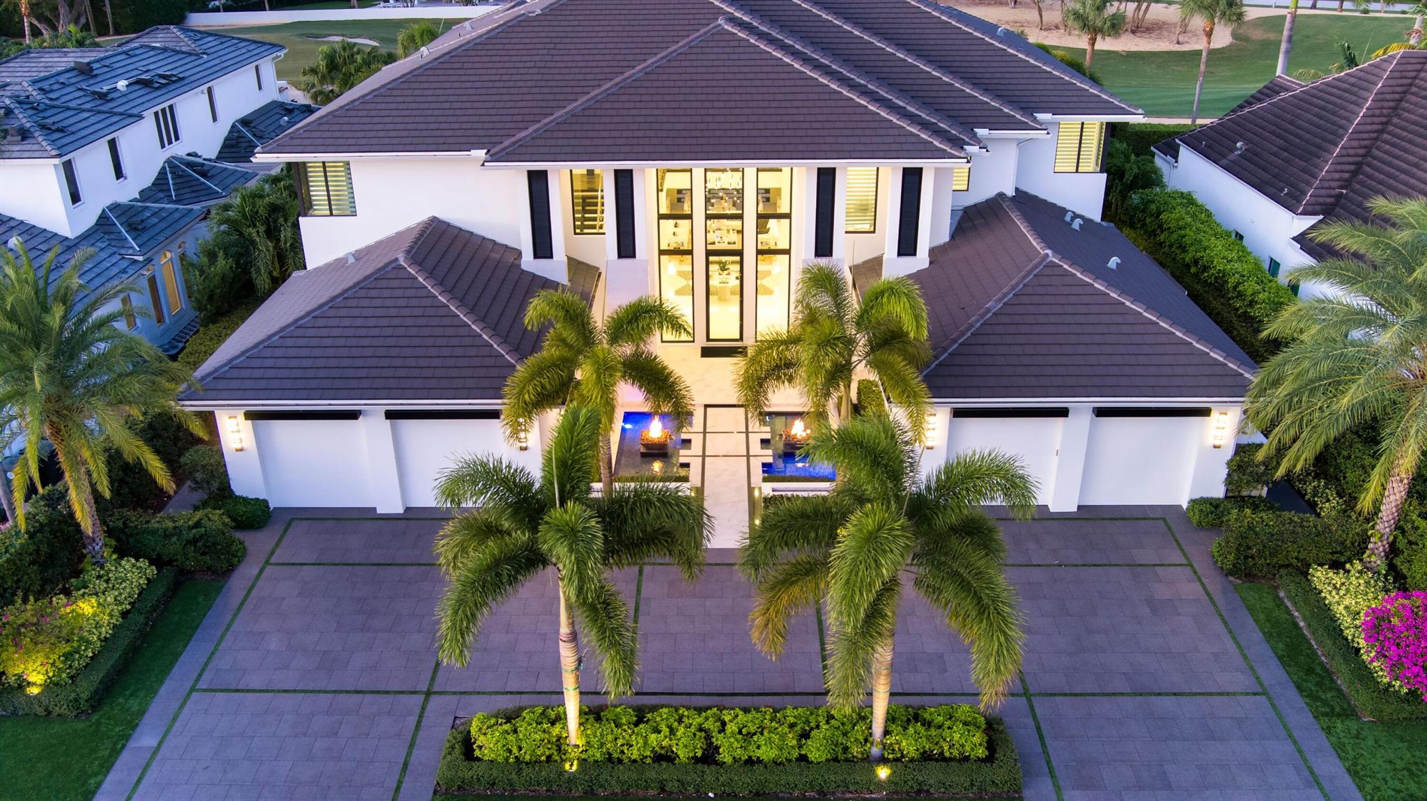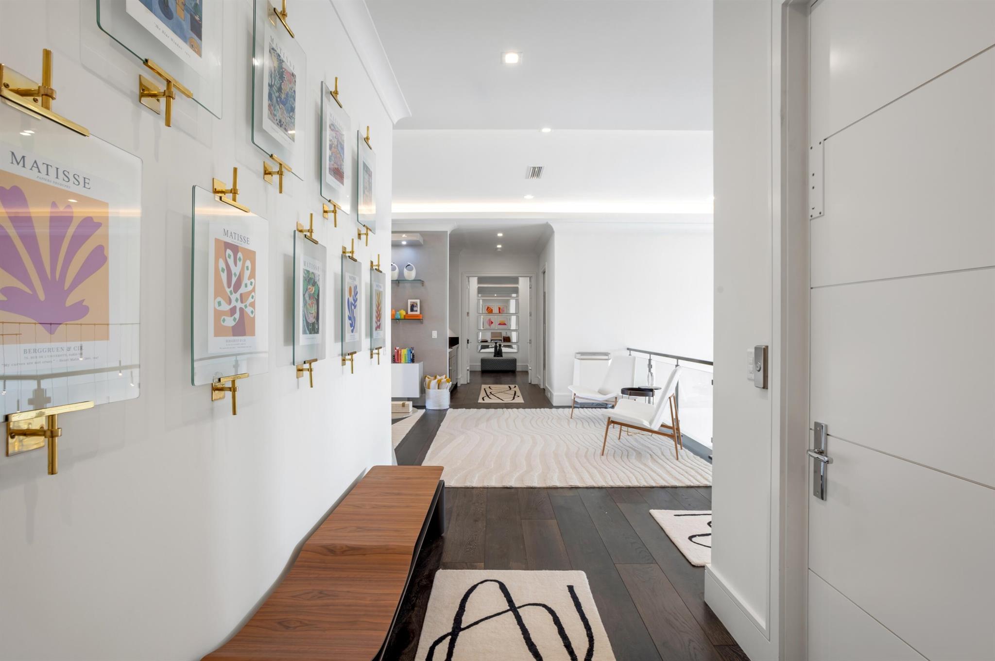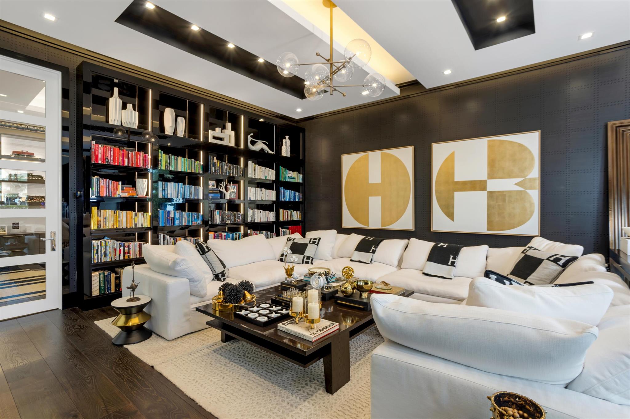 A masterwork of bespoke design, this incredible six-bedroom, 12,228 +/-total-square-foot estate, astutely conceived by Mitch Kunik of Affiniti Architects built in 2021, encapsulates the pinnacle for luxurious living. The spectacular two-story reception hall, with a glass-fronted facade and dramatic floating stairway, welcomes guests into a world of refined elegance. Just beyond the formal dining room, the elegant living room features a 14-foot-high wall of automated sliding glass doors that entirely pocket away, creating a seamless transition to the pool loggia, for an unparalleled indoor-outdoor tropical experience.