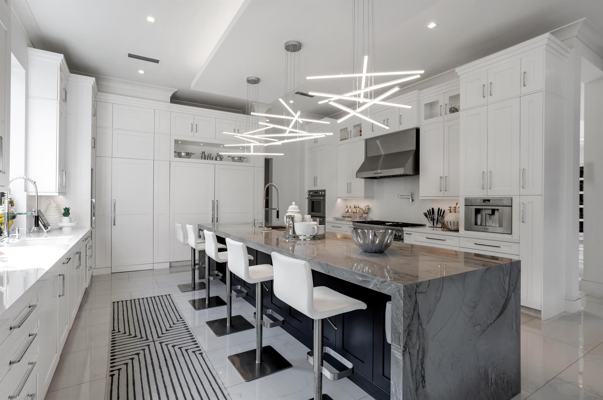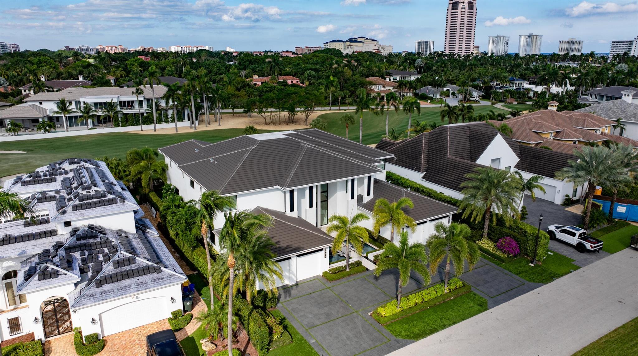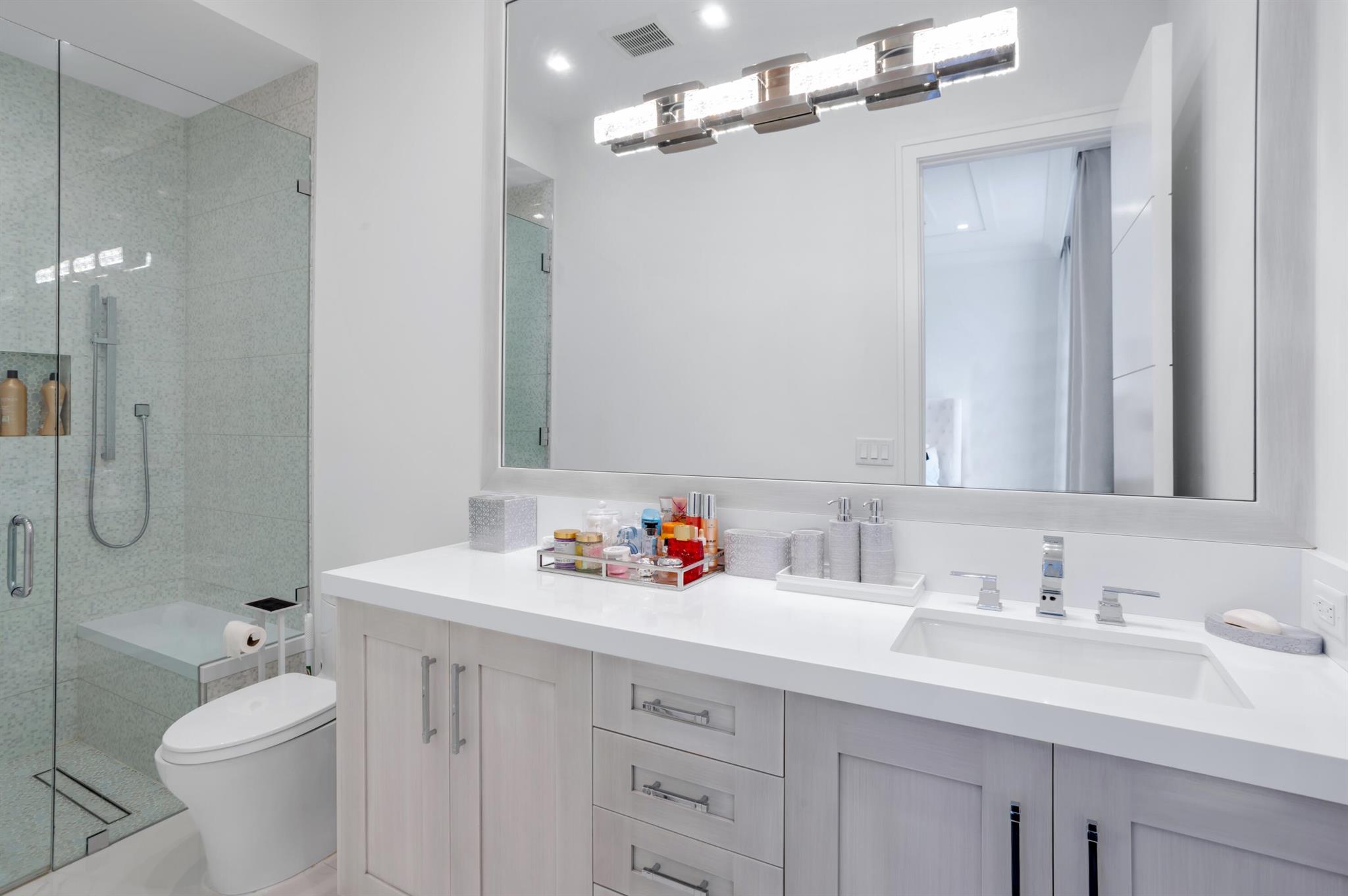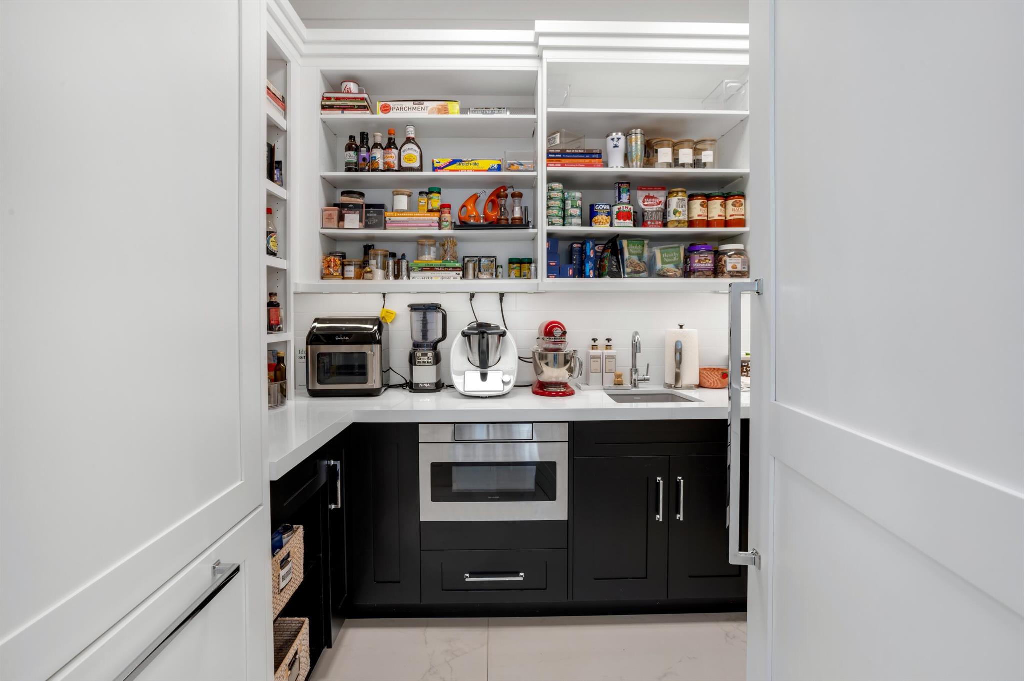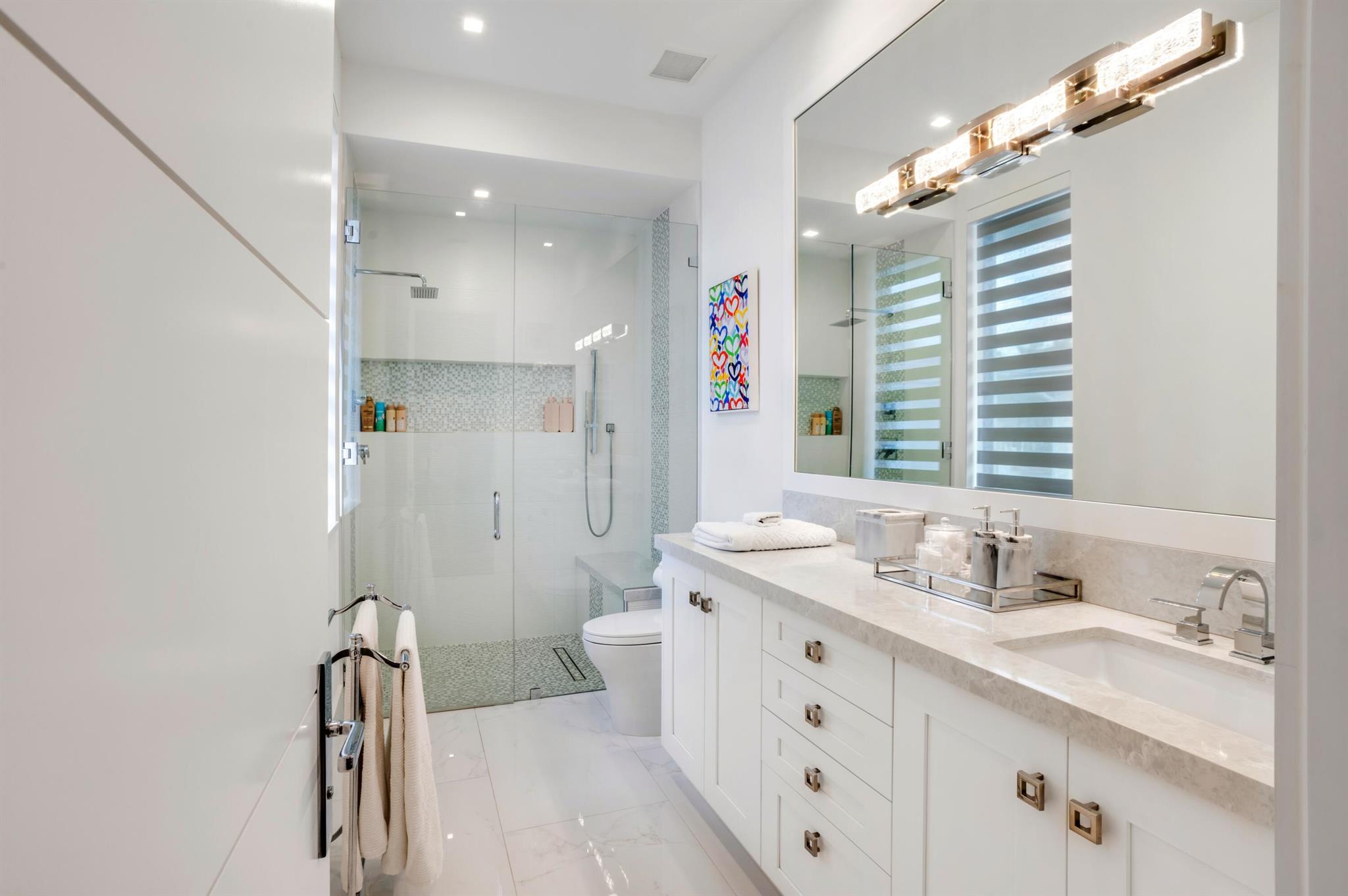 A masterwork of bespoke design, this incredible six-bedroom, 12,228 +/-total-square-foot estate, astutely conceived by Mitch Kunik of Affiniti Architects built in 2021, encapsulates the pinnacle for luxurious living. The spectacular two-story reception hall, with a glass-fronted facade and dramatic floating stairway, welcomes guests into a world of refined elegance. Just beyond the formal dining room, the elegant living room features a 14-foot-high wall of automated sliding glass doors that entirely pocket away, creating a seamless transition to the pool loggia, for an unparalleled indoor-outdoor tropical experience.
