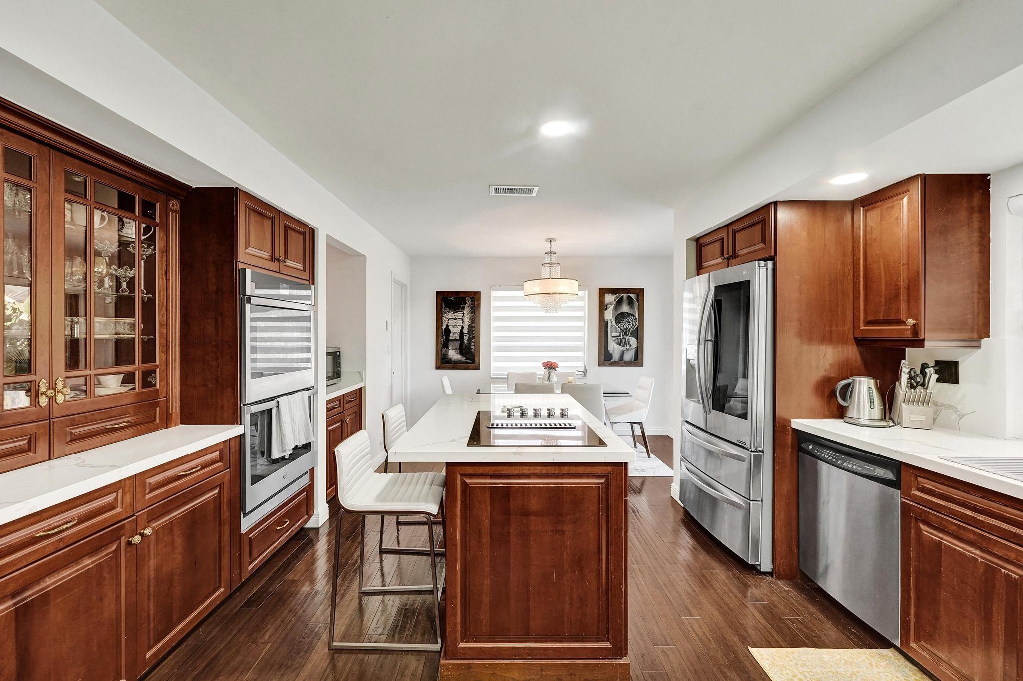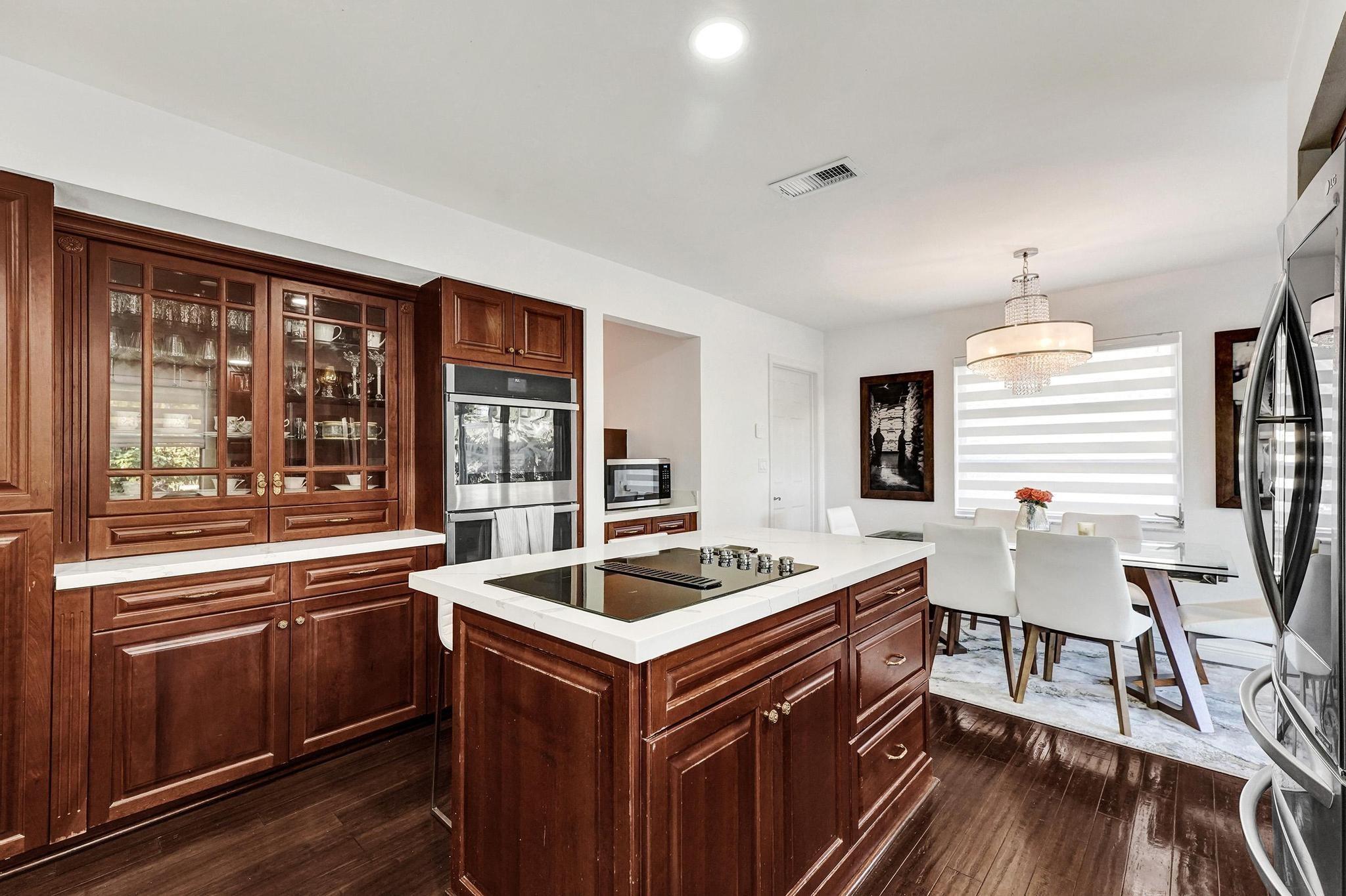Ideally located within the desirable community of Oak Wood just steps from Whispering Oaks Park & w/ no neighbor across the street! Featuring vaulted ceilings w/ NO POPCORN for an open floor plan. Separate formal living, family, & dining room. Kitchen updated with beautiful cherry wood cabinets, stainless steel appliances, double oven, & quartz countertops. Tons of storage in kitchen w/ cooking island & peninsula. Both bathrooms beautifully updated. HUGE covered & screened in patio featuring tile floors & new flat roof (2023). Main roof replaced 2002. Updated water heater & AC. Oversized .26 acre lot w/ beautiful garden & tropical landscaping. Don’t miss this opportunity to get the best deal in the Oak Wood neighborhood before the new year!