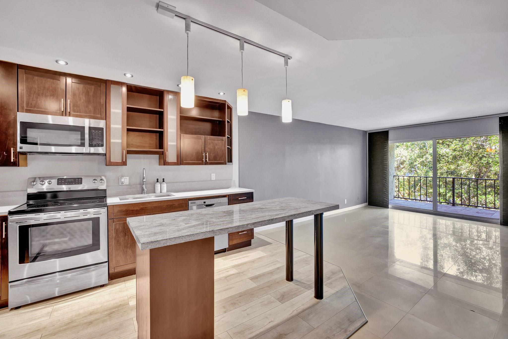 This lovely condo has been opened up on the interior giving a wonderful connection from the kitchen to the dining & living areas and out onto your gorgeous treetop courtyard view. Both bathrooms, along with the kitchen have been updated and the AC and water heater are newer as well. Full IMPACT windows & doors not only provide security from the elements, but pure peace and quiet for those cozy nights at home. Your monthly dues cover a TON of benefits including a lovely heated pool with clubhouse, pest control, internet, building insurance and FULL RESERVES, so you can be eligible for a low down-payment conventional loan! Bring your toothbrush and make this conveniently located, highly desired Wilton Manors community your HOME.