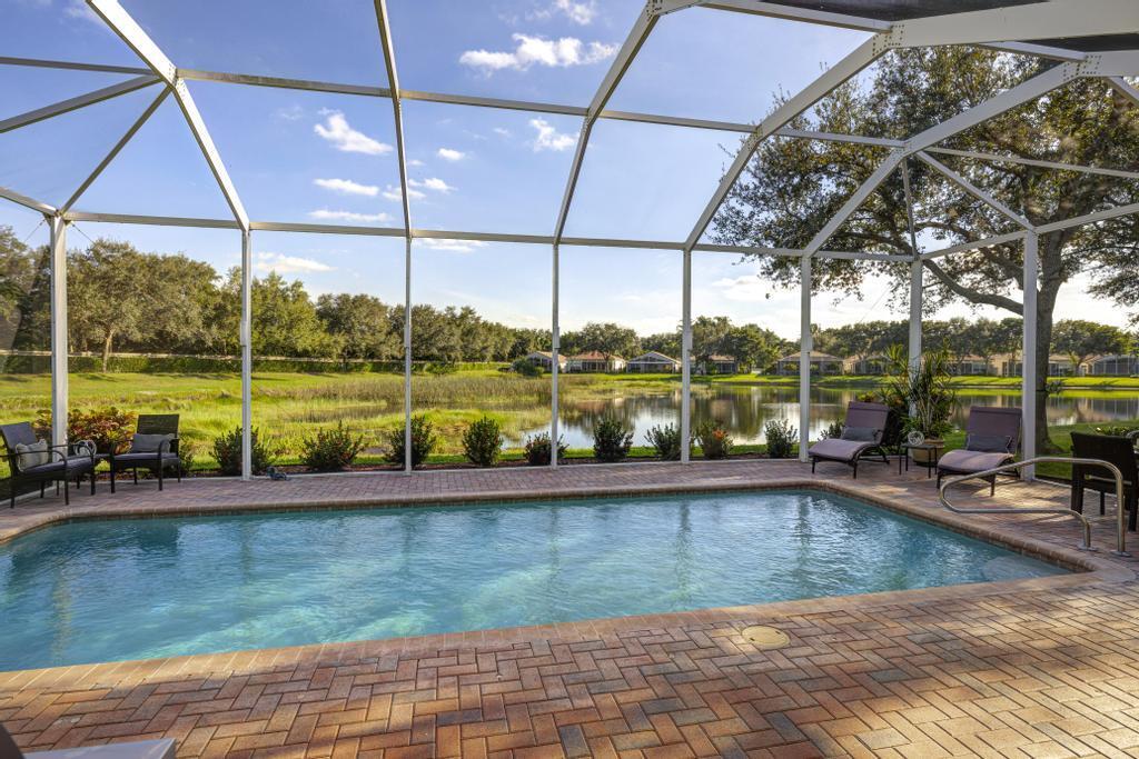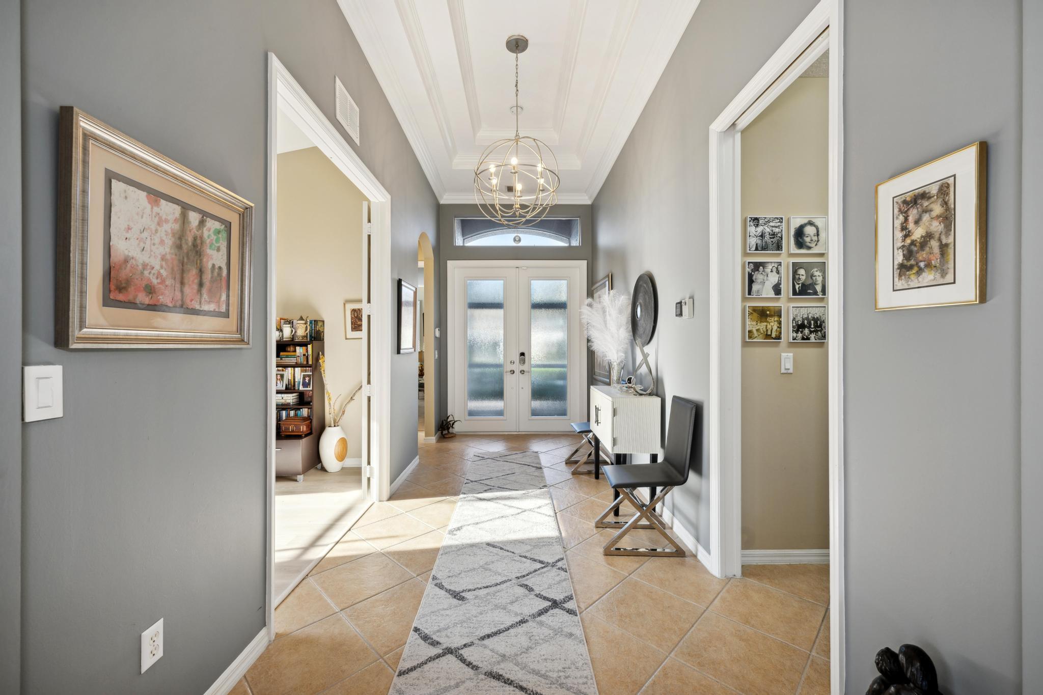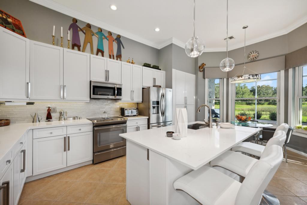 Every component of this house shouts class and quality. Lovely Cambridge model in pristine condition. Welcome to this beautifully maintained 3-bedroom, 2.5-bathroom residence in the sought-after 55+ community of Avalon Estates. Boasting expansive lake views from nearly every room, this home features 12-foot ceilings and an elegant design that exudes both space and comfort. When you enter this home, you are greeted with a Grand entrance way with tray ceiling and Crown Molding. Large eat-in kitchen, island, Quartz counter tops, stainless steel appliances & spacious pantry and family room. Primary Bedroom Suite features tray ceiling, 2 large closets, dual sinks, Roman tub, walk in shower & private commode. The other 2 bedrooms are spacious, one has double doors for an office/den.