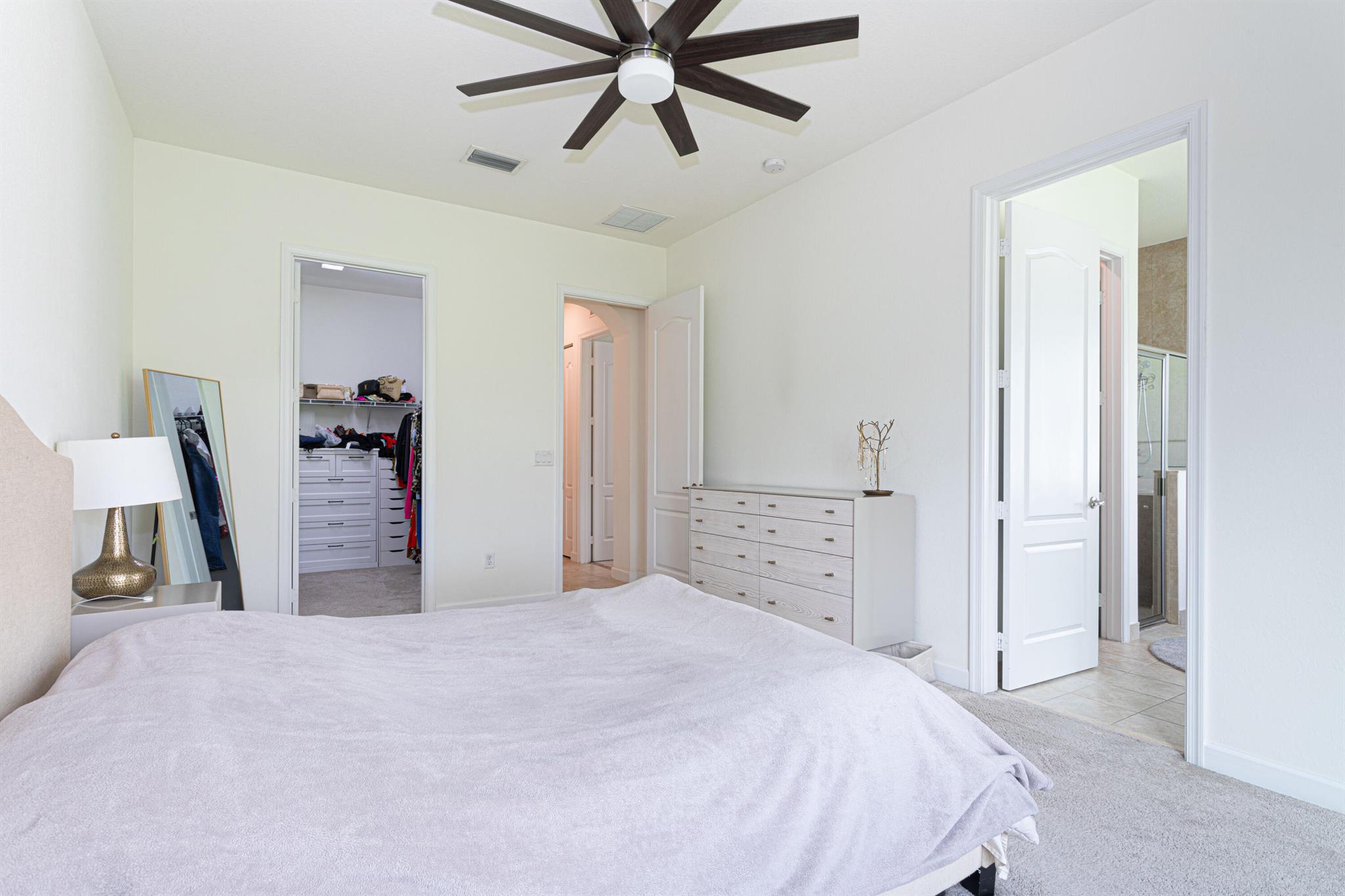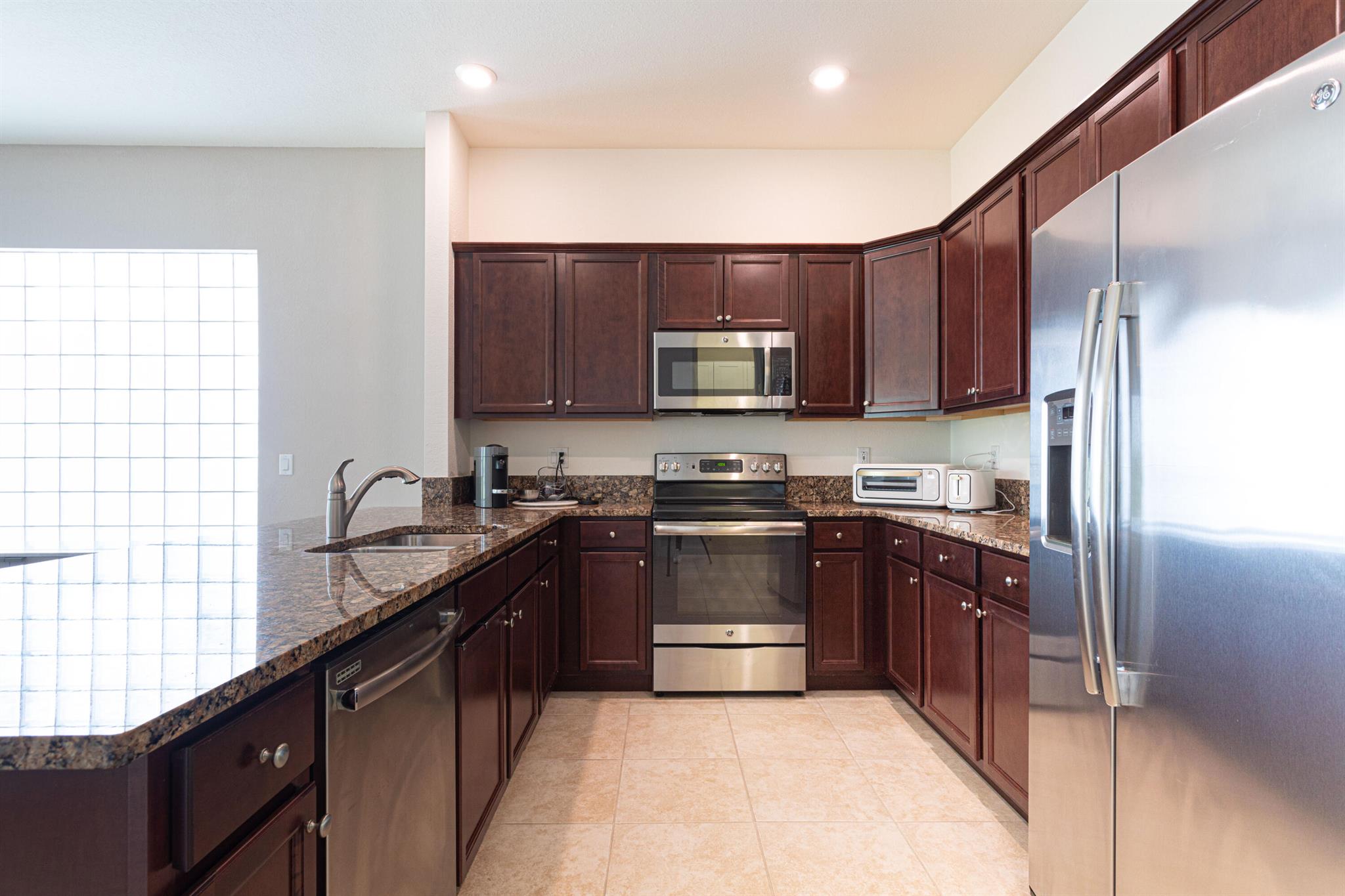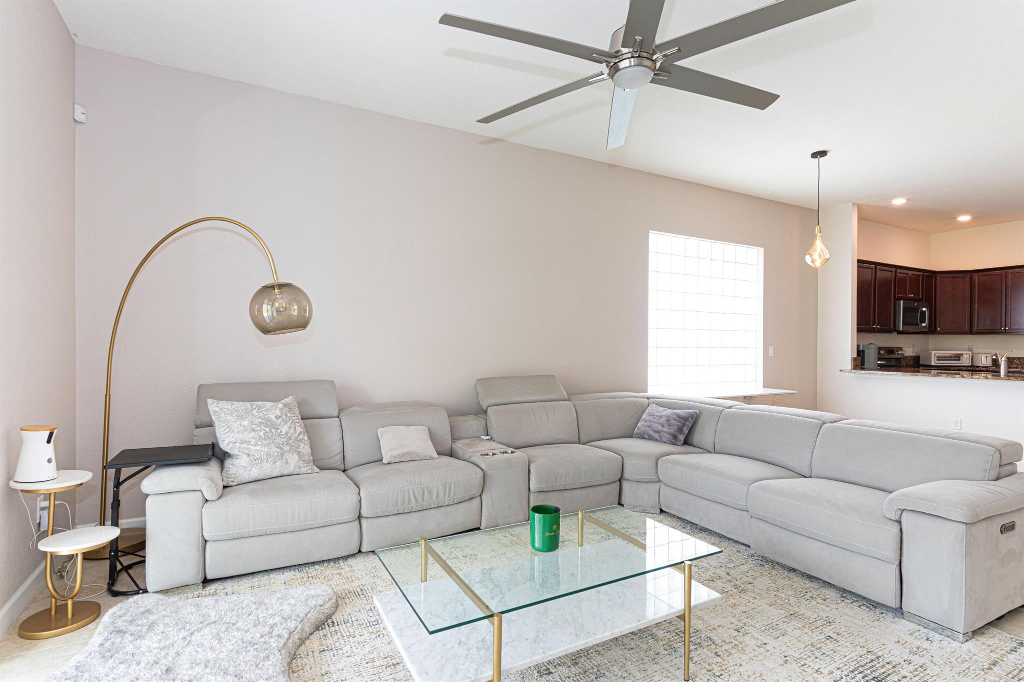 Comfirable Single story 3 berooms, 2.1 bathroom, 2 car garage home on newer gated community. Ceramic tile throughout living areas. Kitchen feature granite countertops and opens to living room with nice views of garden and lake. Outdoor patio area has been extended with large format exterior grade tile throughout. Good size bedrooms with large closet space. Primary bedroom offers large walk in closet, long lake view and comfortable bathroom, separate shower, separate tub. Very little TLC needed. Family friendly community with dog park areas, heated pool, kids playground and more.